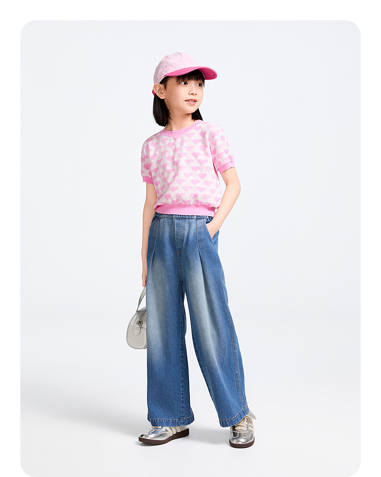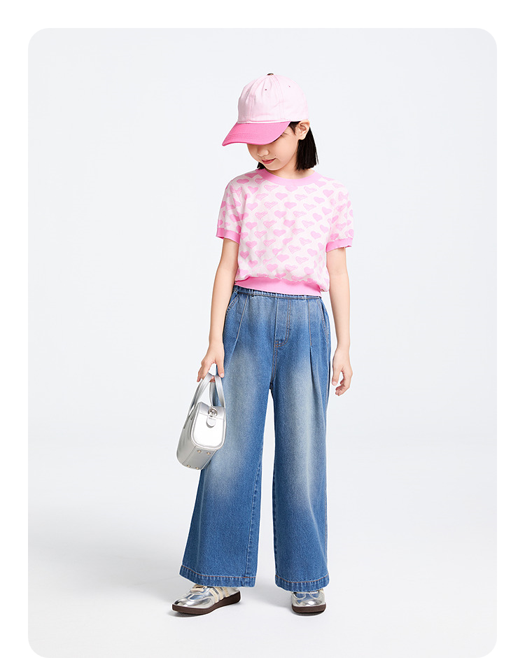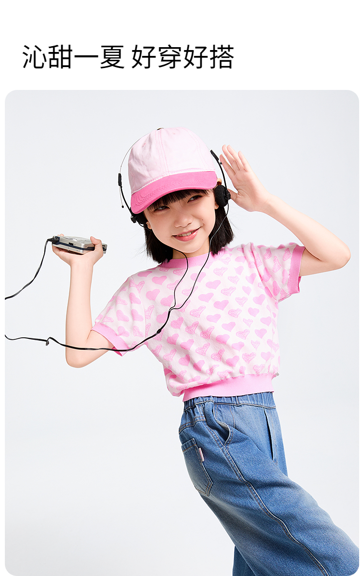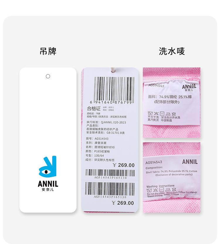 女童圆领短袖针织毛衫夏季新款安奈儿童装实体店同款AG514543