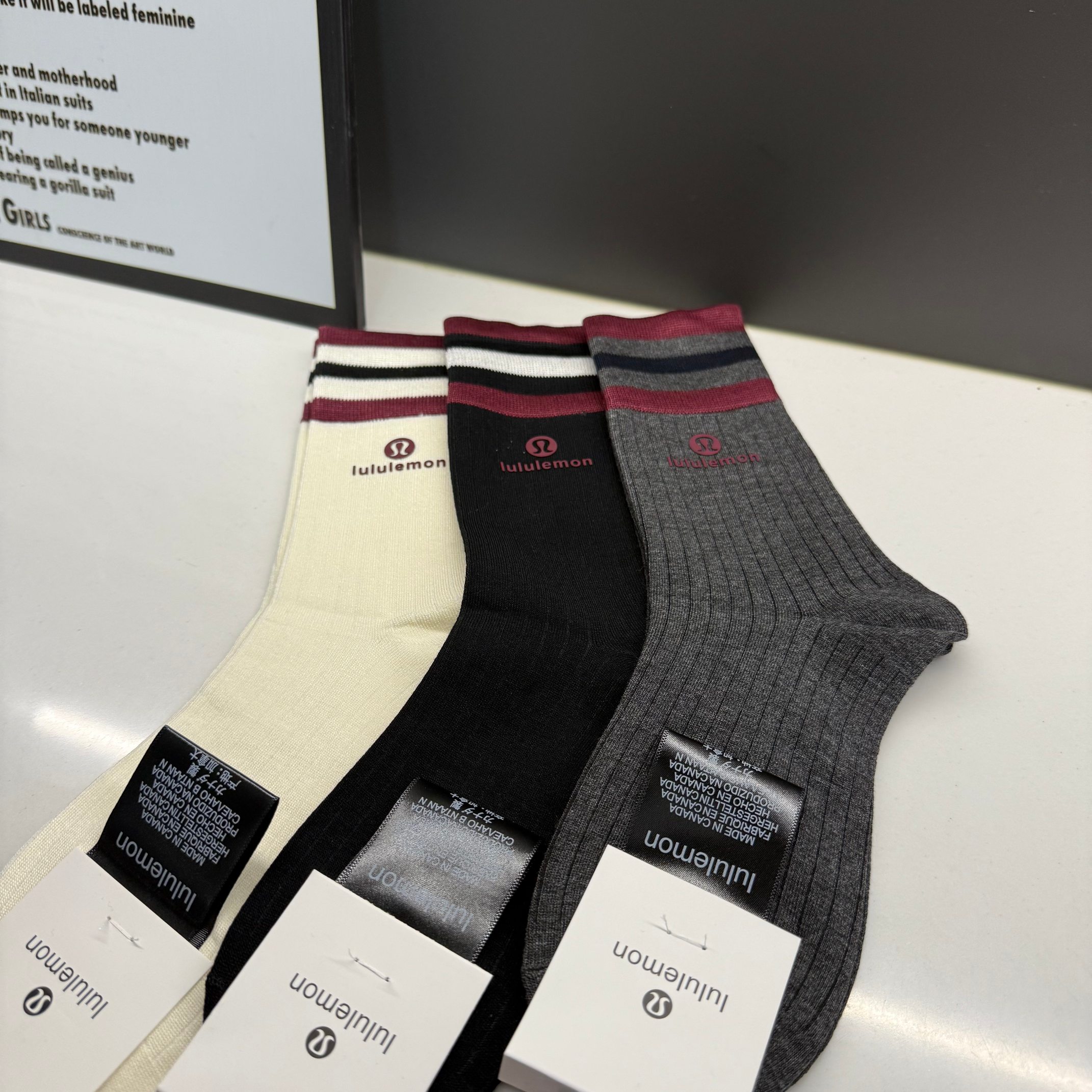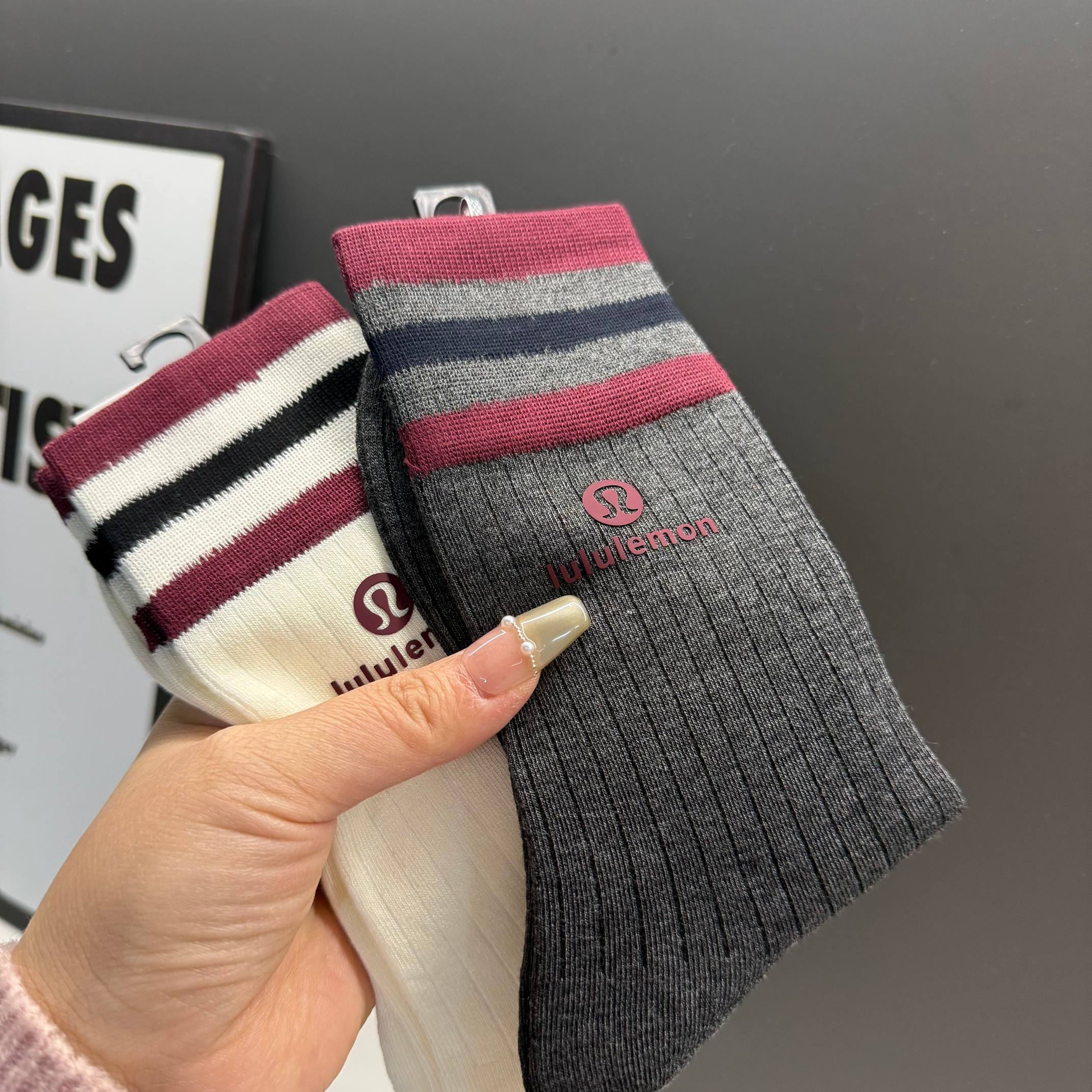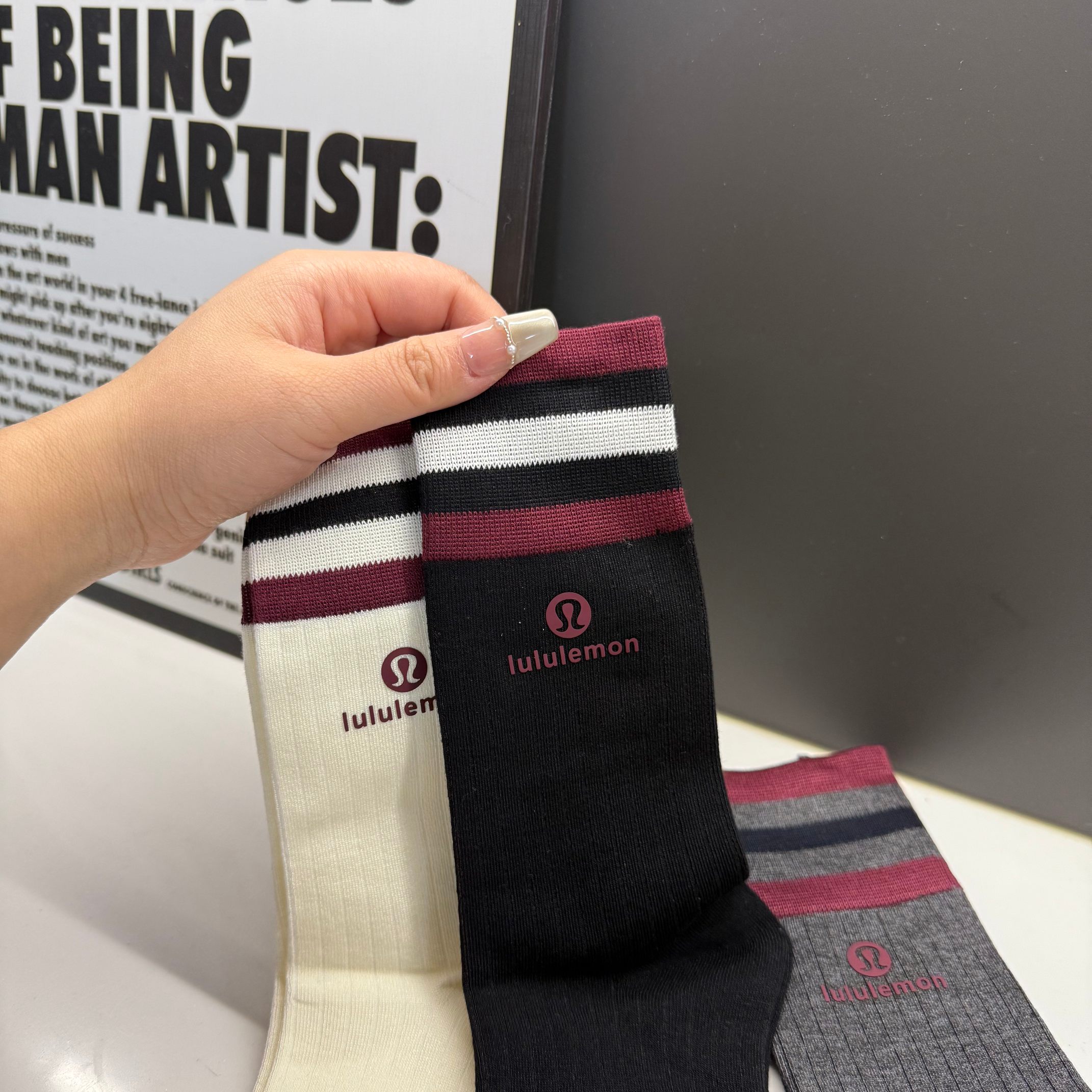 lulu长袜潮袜时尚百搭🔥新款四季新款长筒纯棉袜子!3双装!男女同款四季必备喔、设计师合作款!今年他家真是美翻了,简直太漂亮了,设计师合作款,奢华上档次,细节很完美!百搭款,绝对是今年独领风骚的尤物 ,纯棉材质,lulu可以说是火爆了整个时尚圈!纯棉材质,摸起来的感觉十分的细腻!强烈推荐入手!不管是自穿还是送人都很棒!
