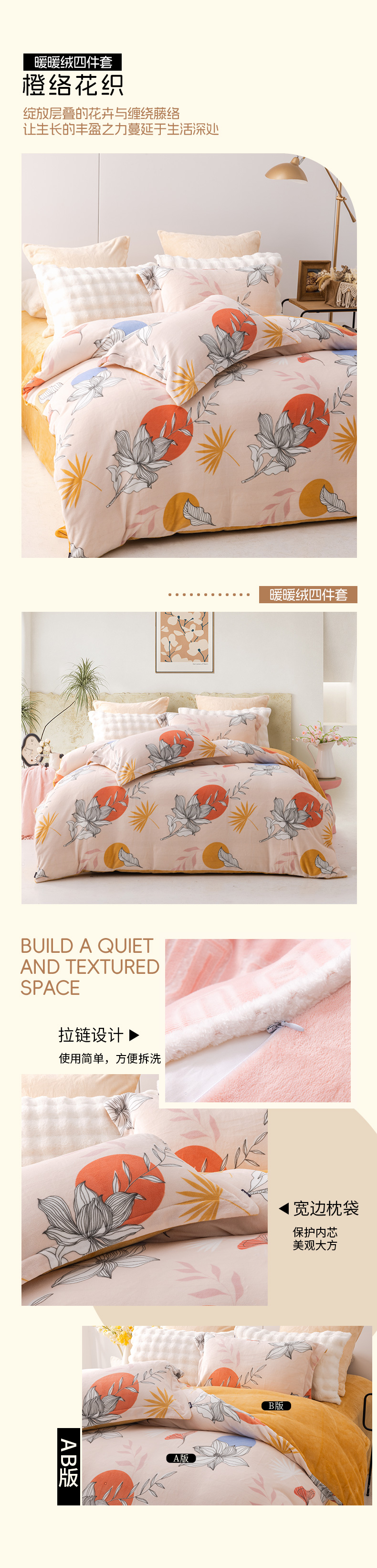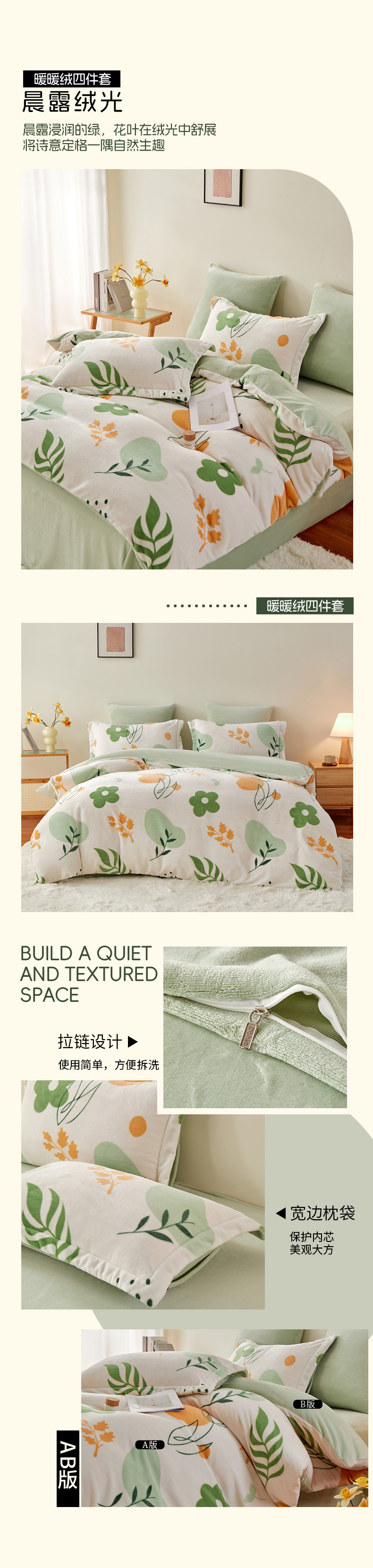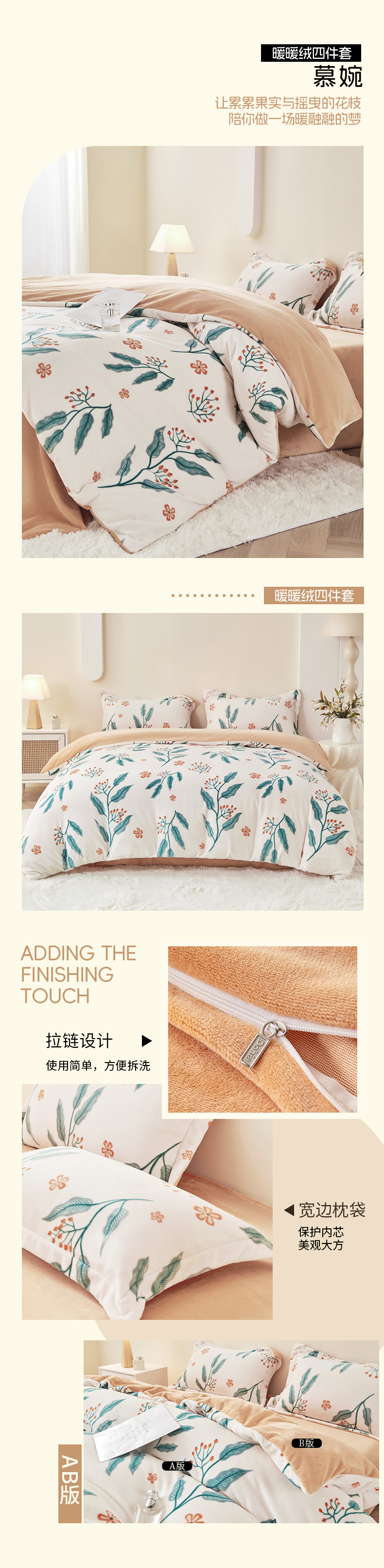 多喜爱 暖暖绒四件套晨晓新叶/时光小憩/叠趣/橙络花织/格苒/琼浪/晨露绒光/慕婉/hl【高克重暖暖绒】【一触即暖】【抗静电】【不易掉毛】细腻绒毛 暖而不闷 透湿排汗 可水洗