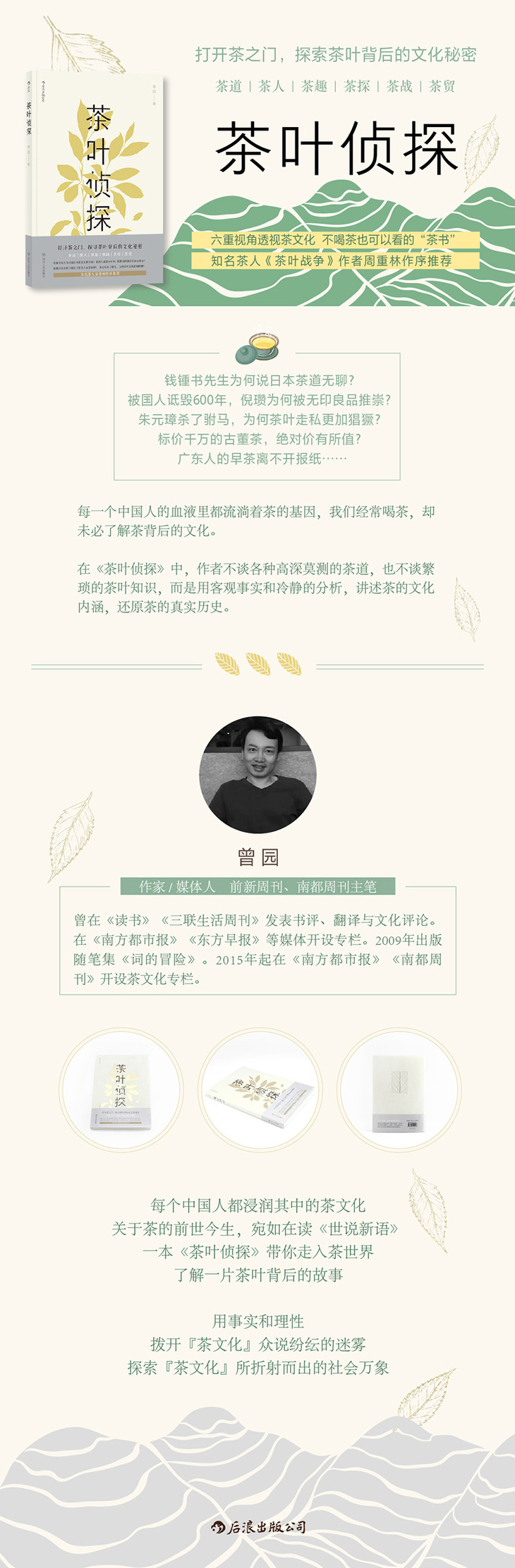 不细究茶叶成分,不讲茶艺流程,本书讲的是每个中国人都浸润其中的茶文化。即使你不经常喝茶,也可以借此了解一片茶叶背后的故事。如果你喜欢茶,那就可以通过本书,进一步了解茶叶背后的文化内涵和历史细节。