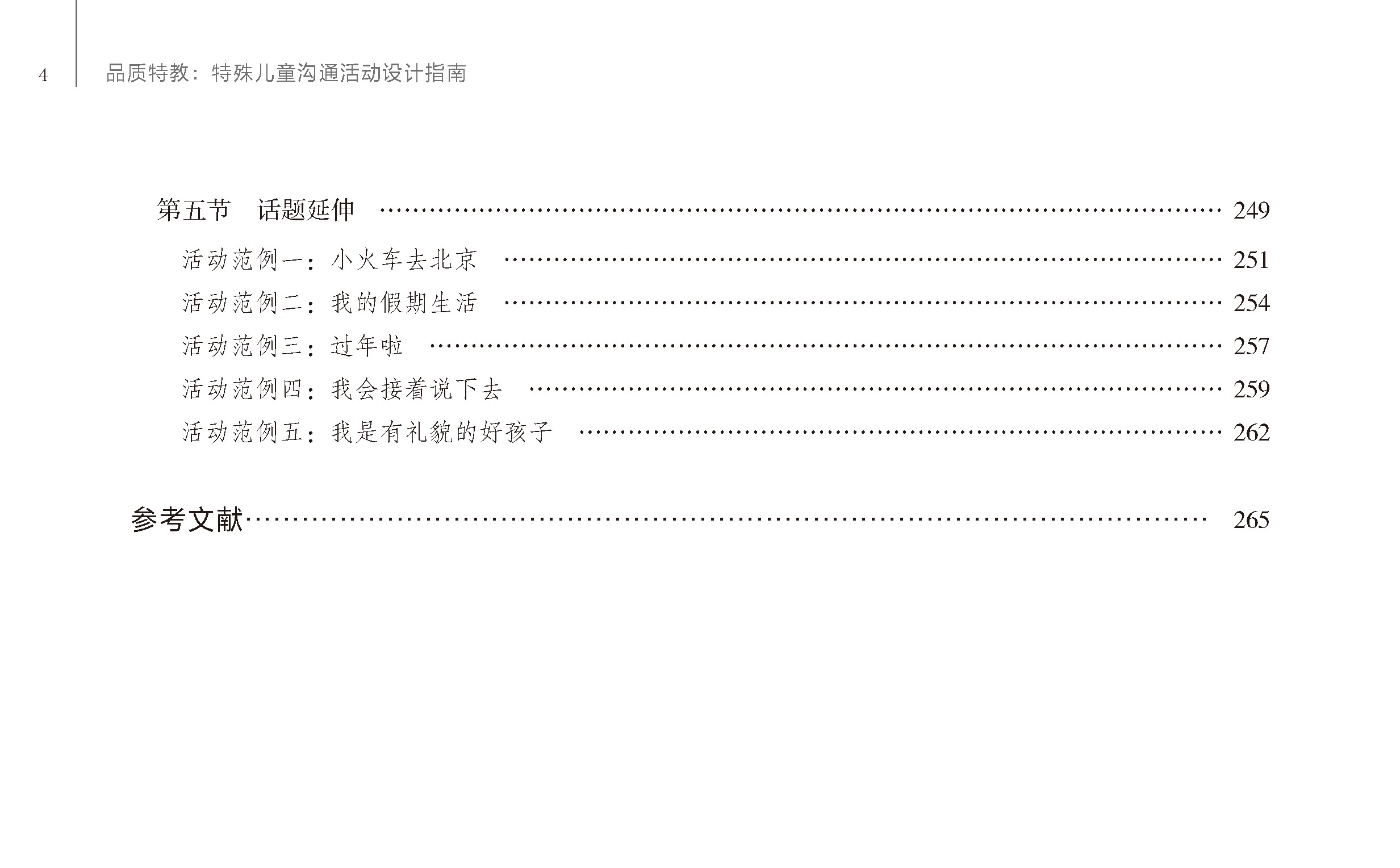 沟通是人类最基本的能力之一。通过沟通,能够传递信息、表达需求、参与社会生活、积累人际关系等。社会活动中充满了形形色色的沟通。随着人类社会的快速发展,沟通也发生了诸多变化,例如内容越来越丰富、形式越来越多样、频率越来越高等。特殊儿童由于各种身心障碍的影响,在沟通中存在或多或少的困难。虽然社会的发展增加了特殊儿童的发展可能,但是也对他们的沟通能力不断提出新的要求与挑战。为使特殊儿童能更好地适应社会,广州市教育研究院近年来在特殊儿童沟通领域做了很多研究。本书是其科研成果的集中体现,供学校教师、康复训练人员、家长和从事特殊儿童沟通活动教学及相关工作的特教人员参考。