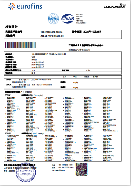 生态迁西板栗的农残检测报告,未检出。