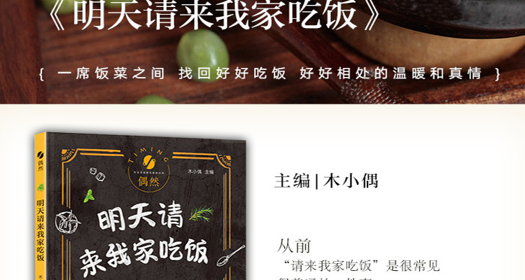 《明天请来我家吃饭》是想唤醒这种濒临消失的沟通方式,有空常来家坐坐,明天请来我家吃饭,这种邀约意味着向朋友打开一扇心门,一席饭菜之间,找回好好吃饭、好好相处的温暖和真情。