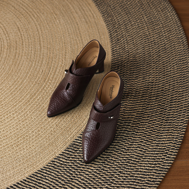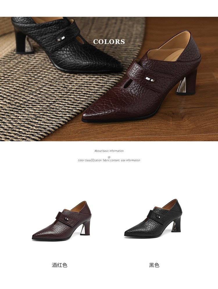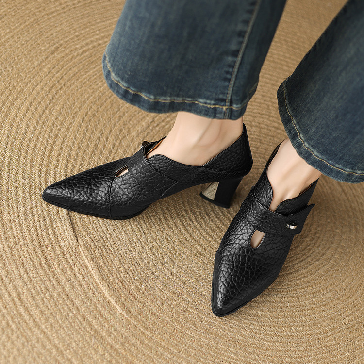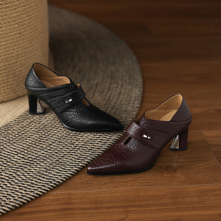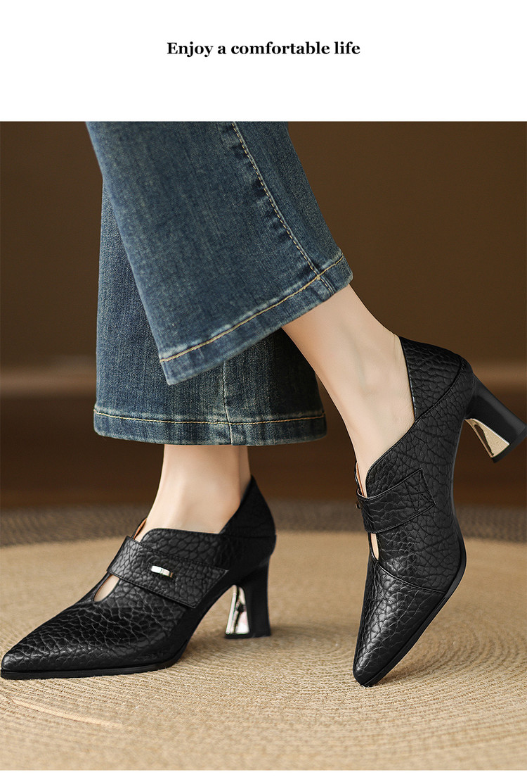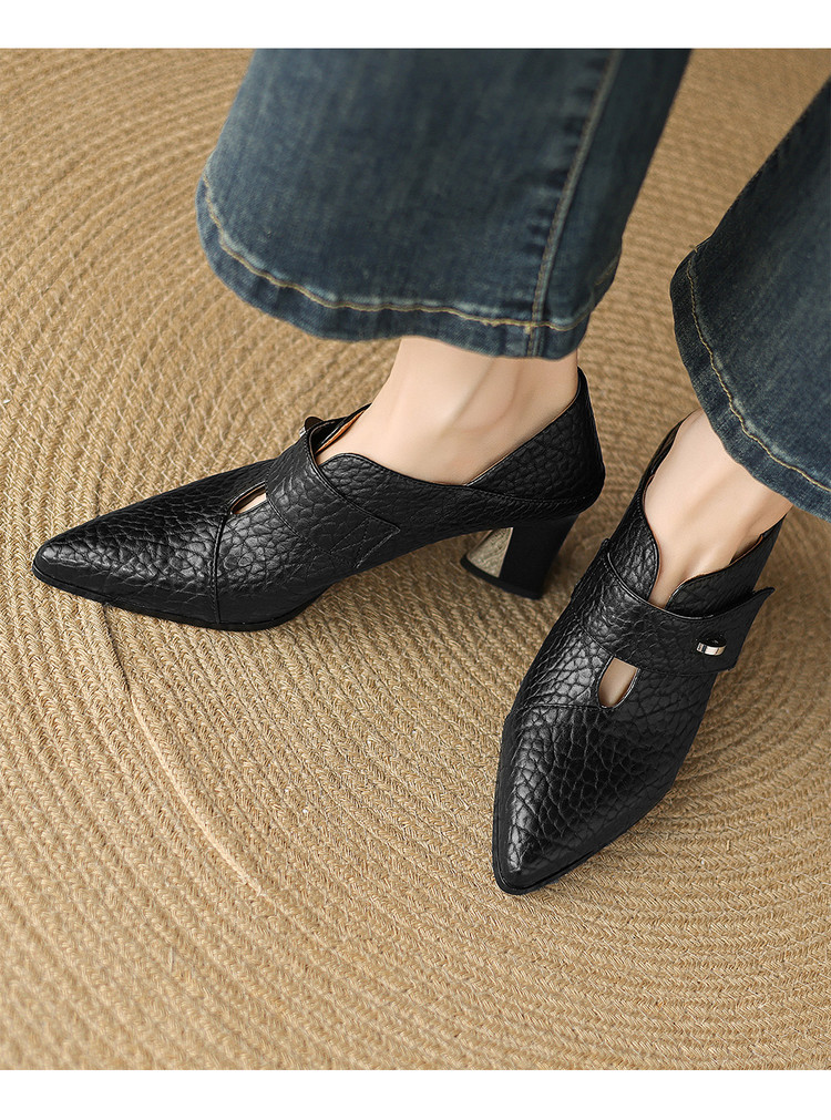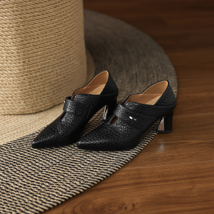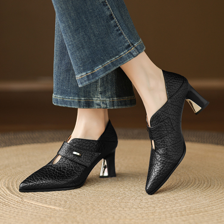 【预售5天】秋季镂空魔术贴透气时尚新款尖头粗跟高跟柔软深口单鞋LD&7492
