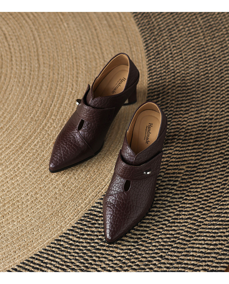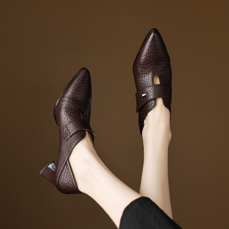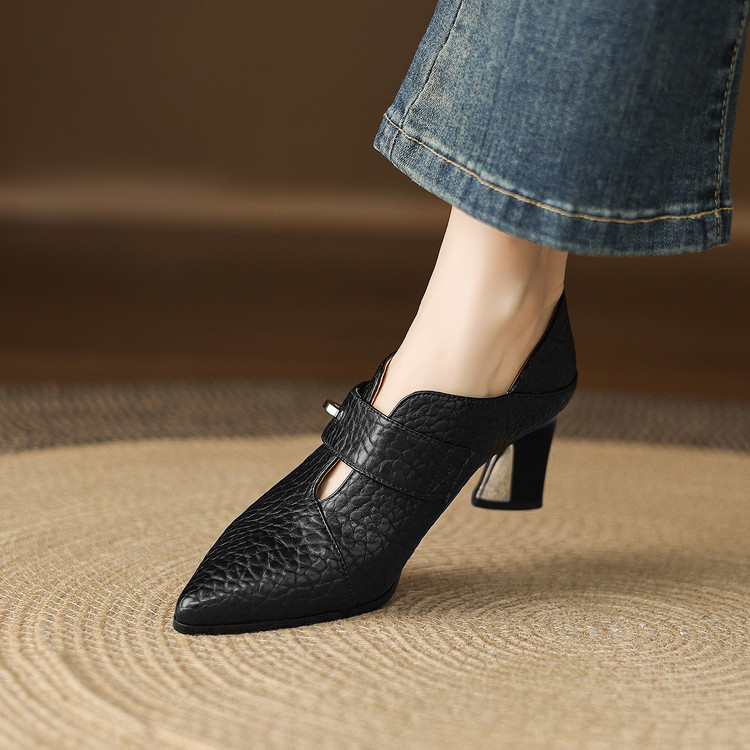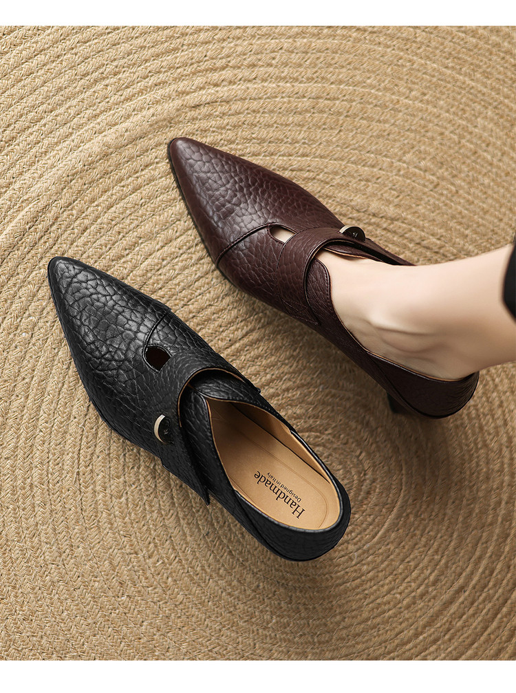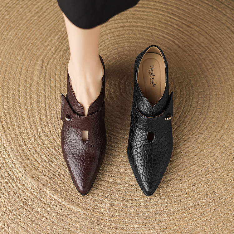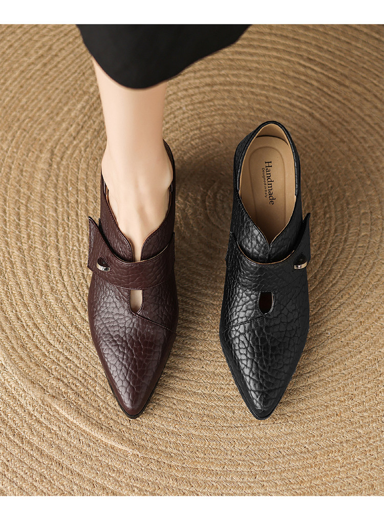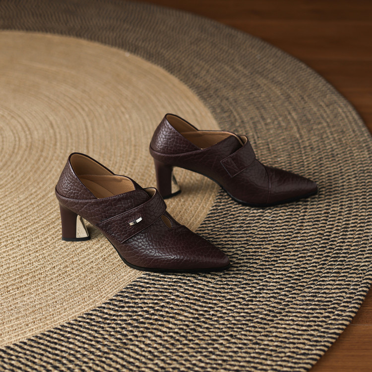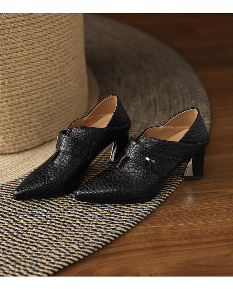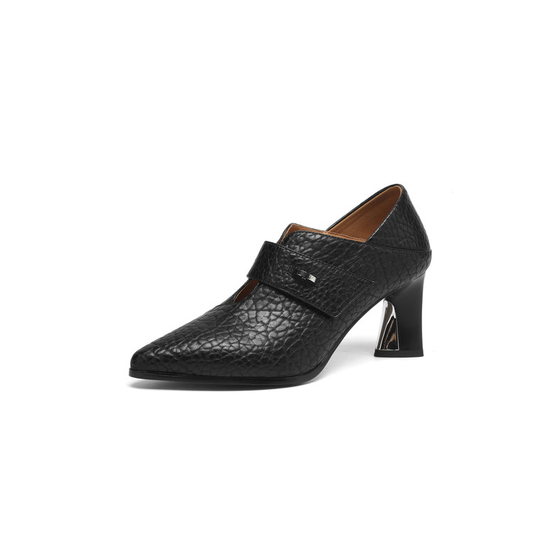 【预售5天】秋季镂空魔术贴透气时尚新款尖头粗跟高跟柔软深口单鞋LD&7492