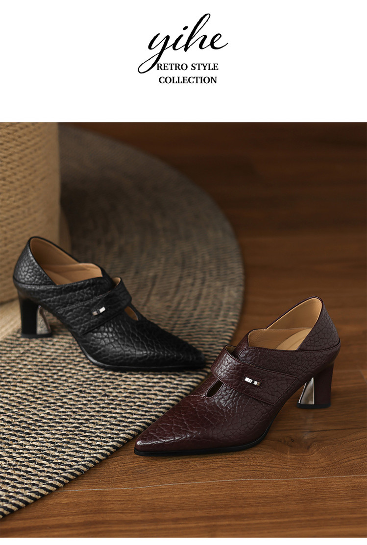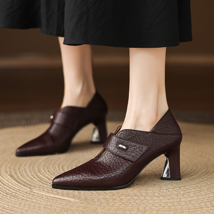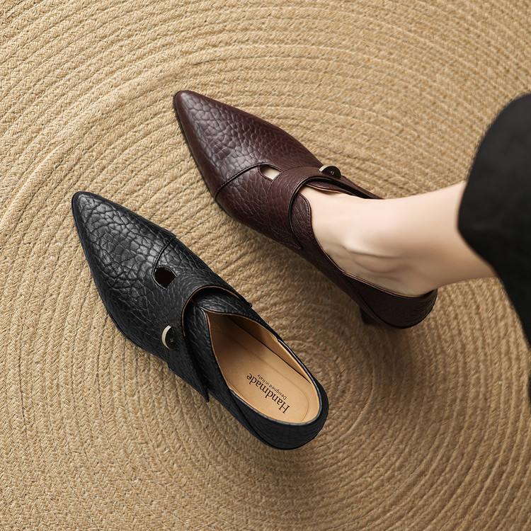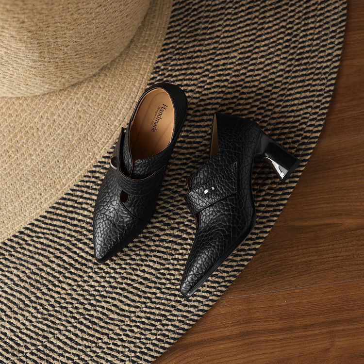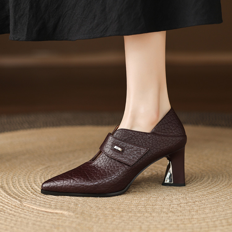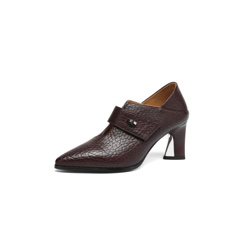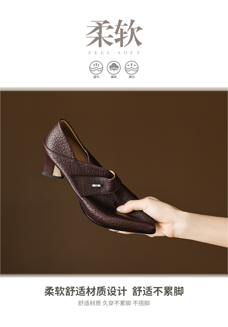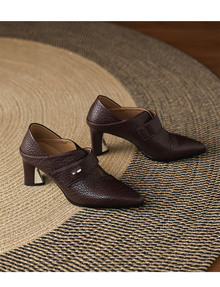 【预售5天】秋季镂空魔术贴透气时尚新款尖头粗跟高跟柔软深口单鞋LD&7492