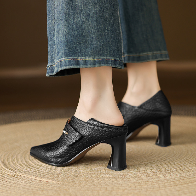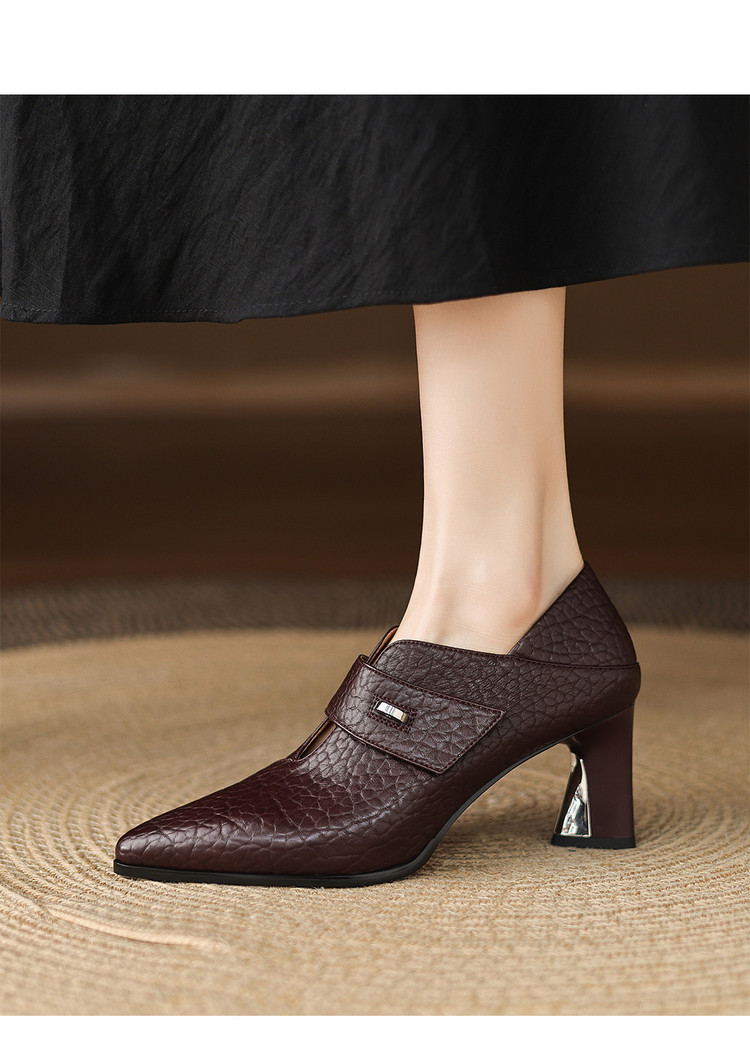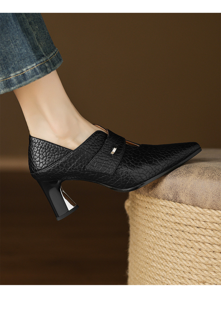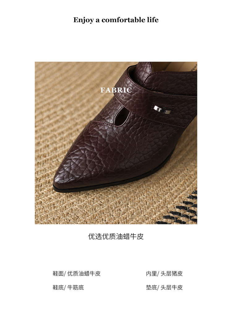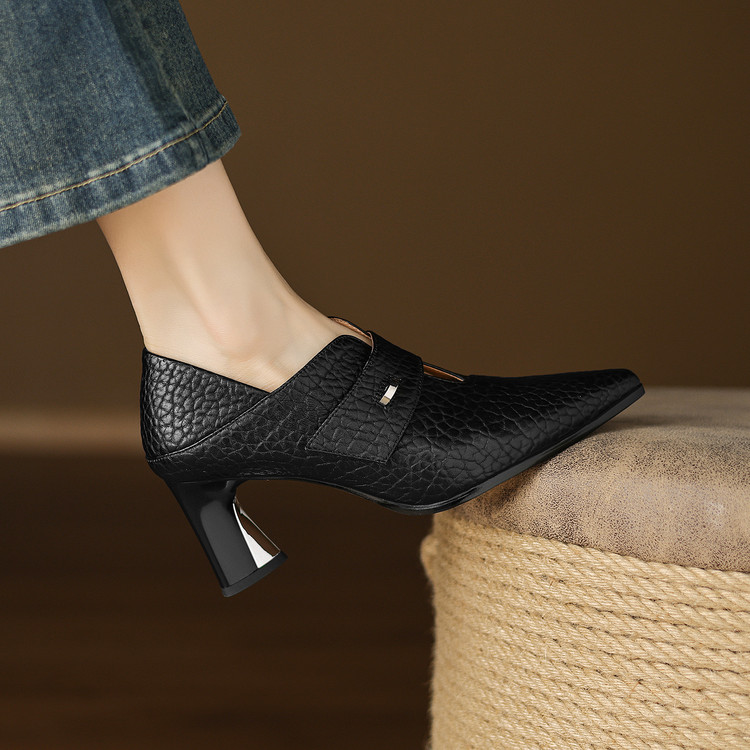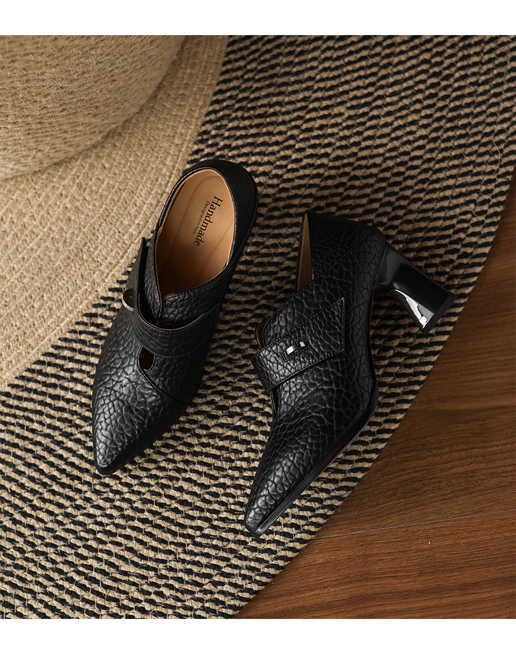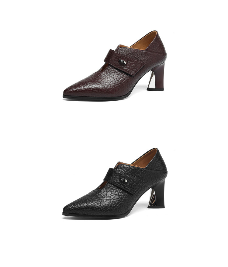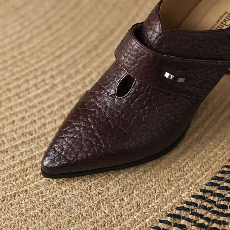 【预售5天】秋季镂空魔术贴透气时尚新款尖头粗跟高跟柔软深口单鞋LD&7492