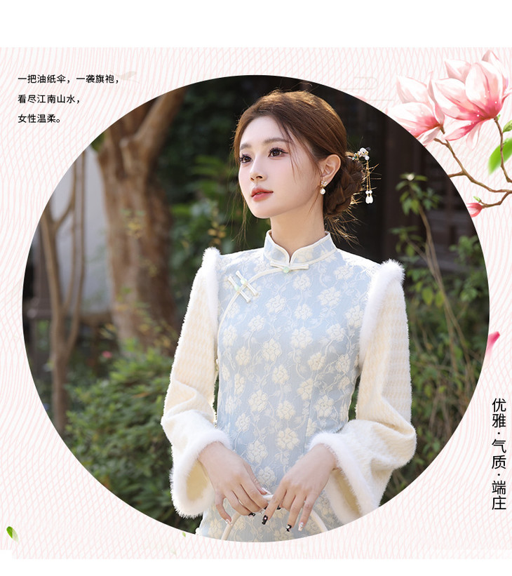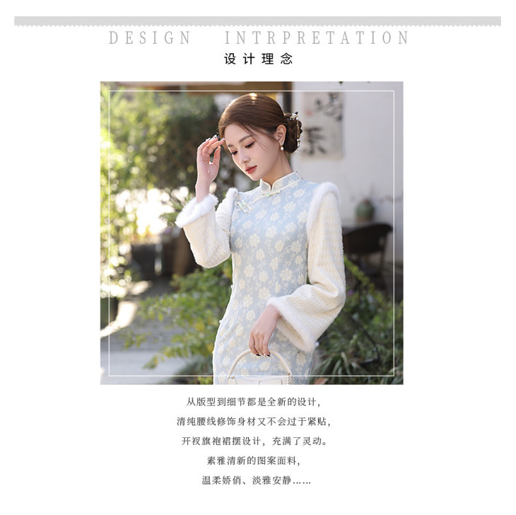 冬款绣花年轻款修身温婉旗袍雪尼尔蕾丝复合加绒超柔MLS6836