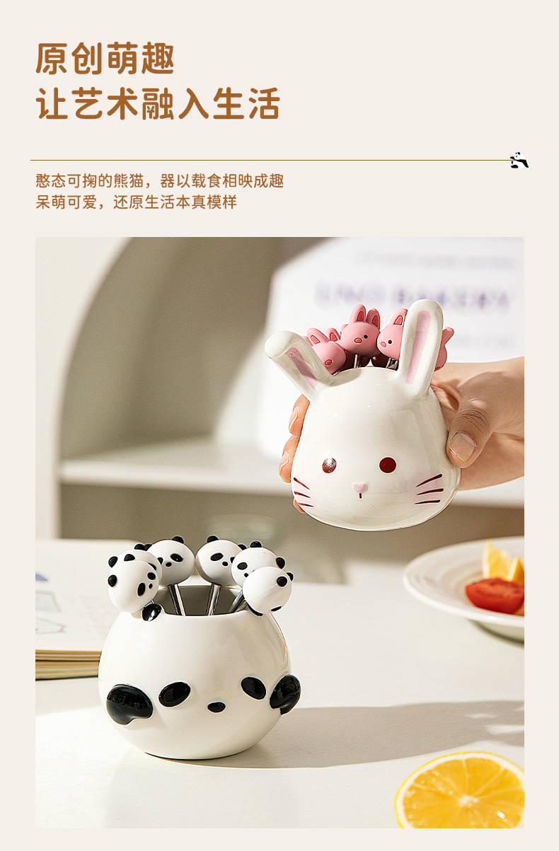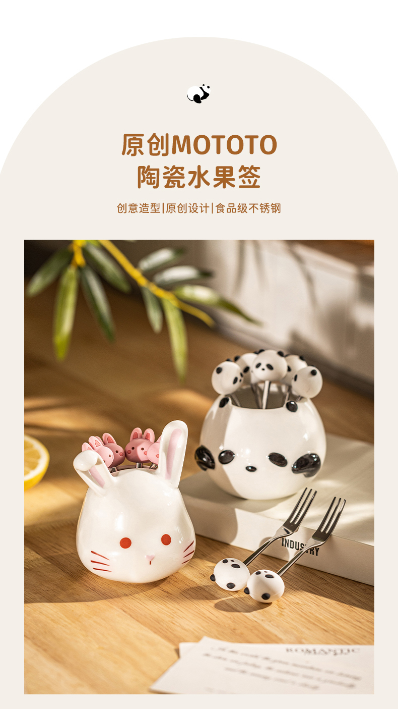 摩登主妇动物派对不锈钢吃水果叉子高级感甜品蛋糕叉水果签收纳罐