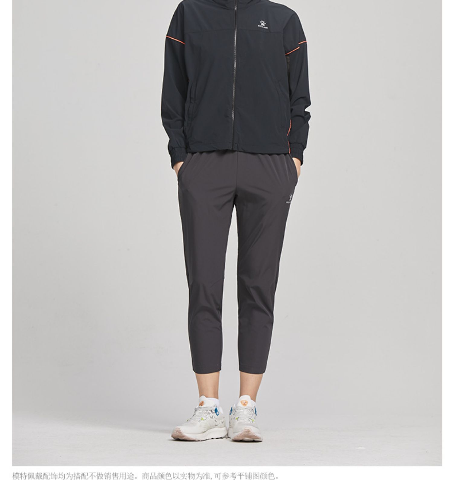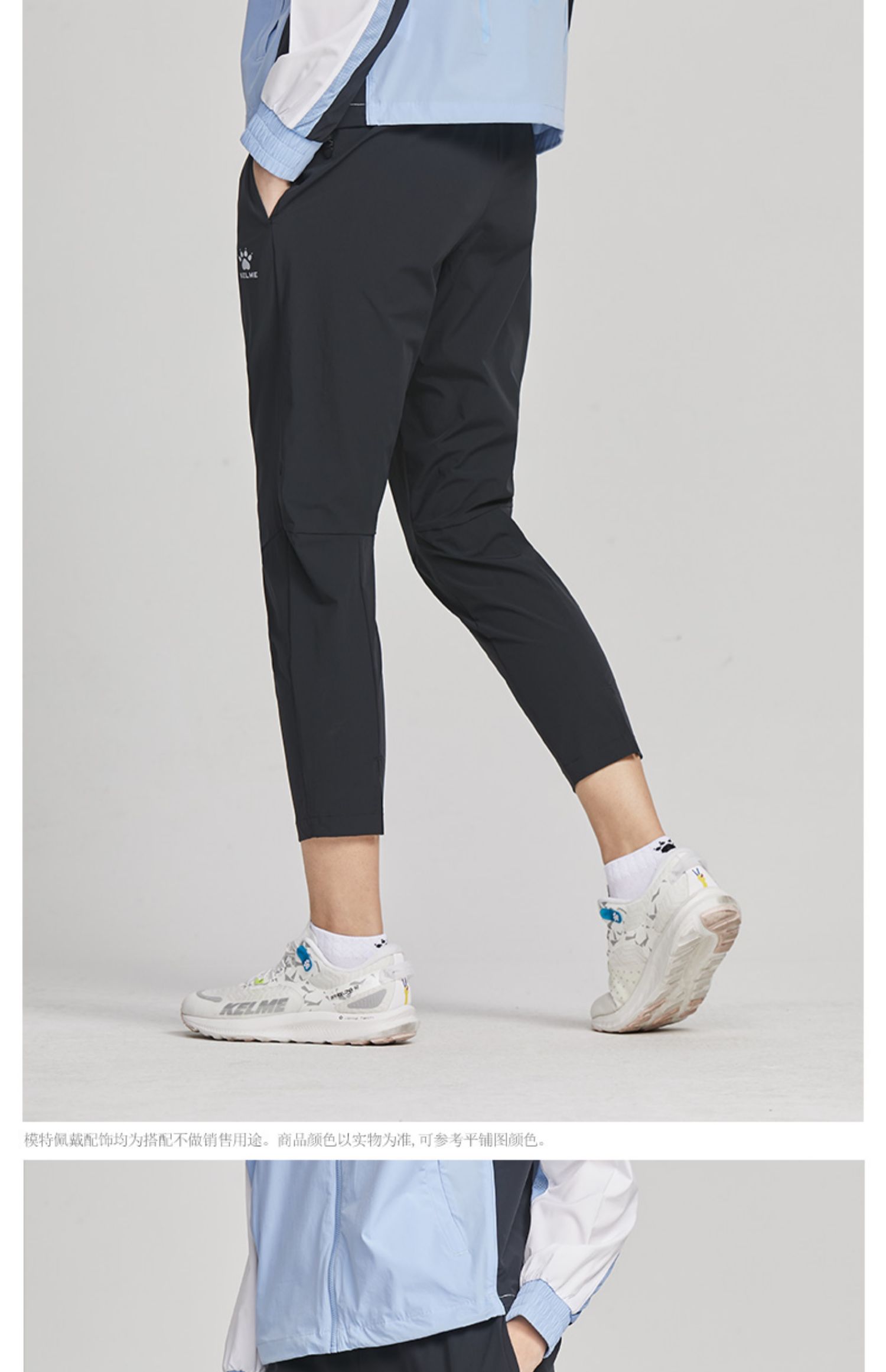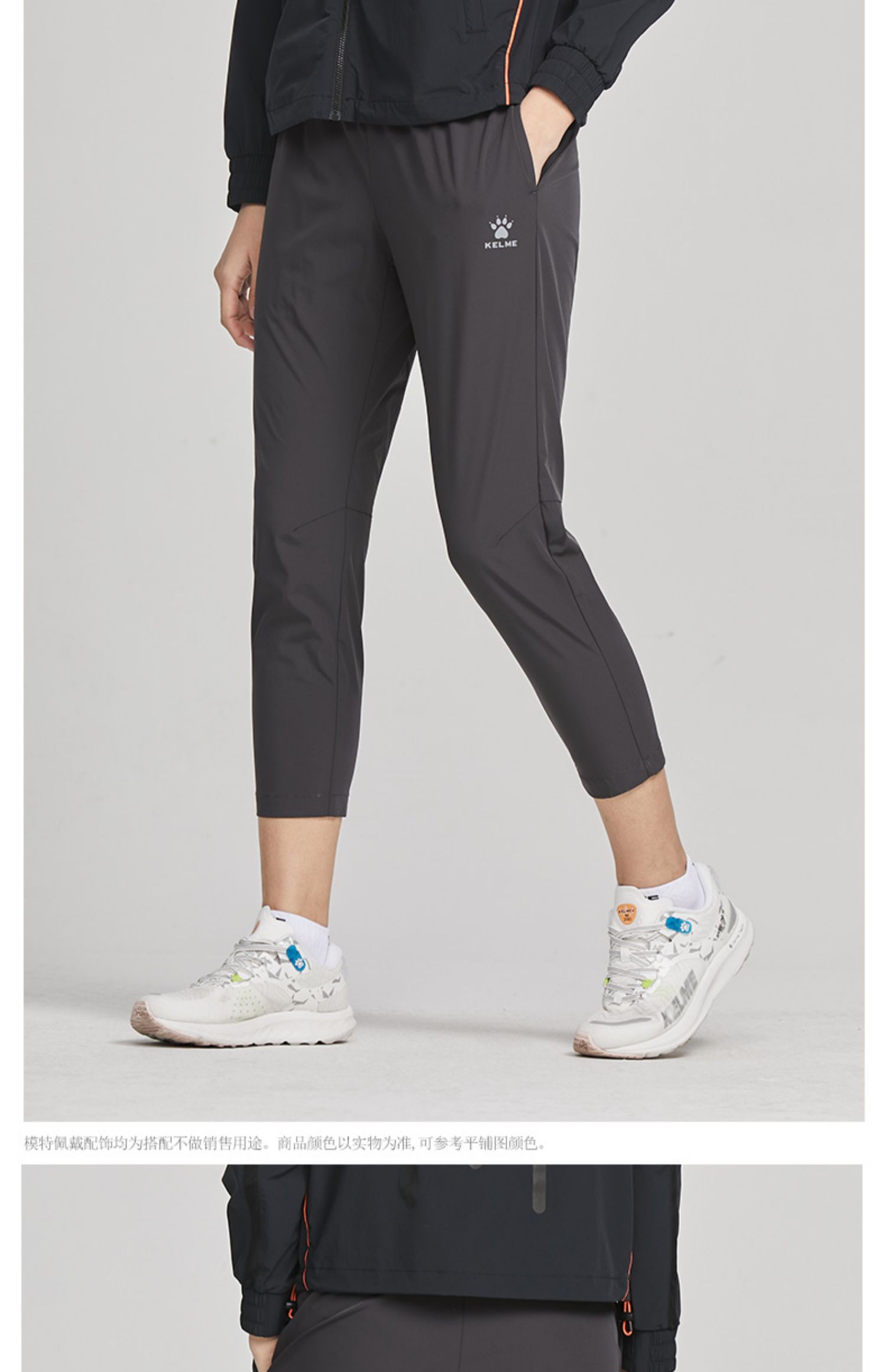 卡尔美 春夏速干透气健身运动裤女跑步梭织宽松直筒九分裤