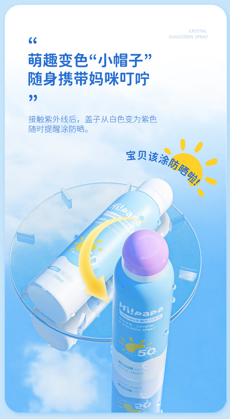 海龟爸爸水晶防晒喷雾120ml SPF50儿童青少年防晒霜隔离紫外线全身通用