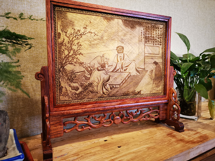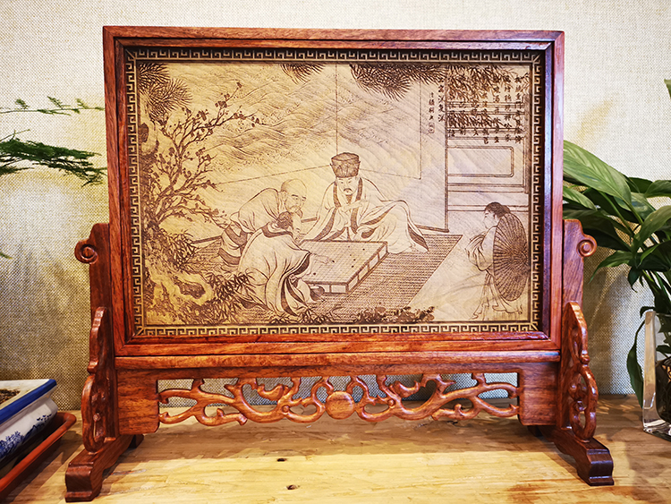 围棋周边 | 《雅士对弈图》+《棋经·合算篇》金丝楠摆件(可定制,送弈客黄金会员年卡,不含证书)