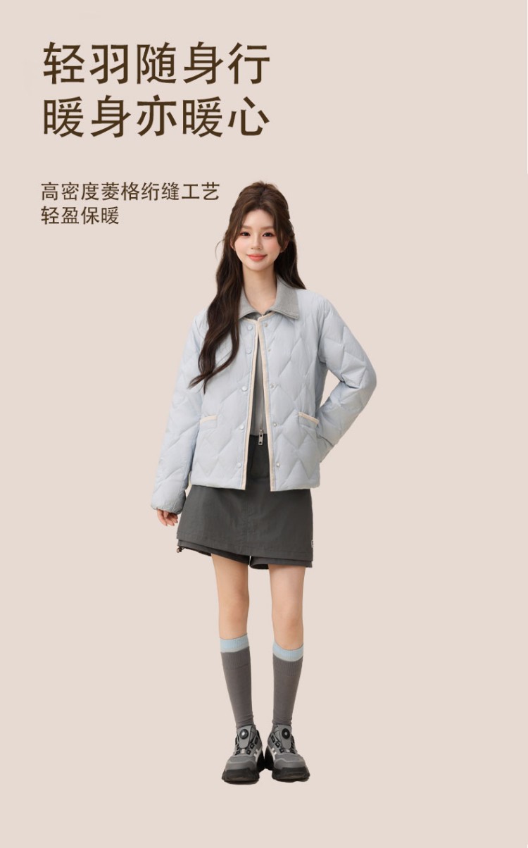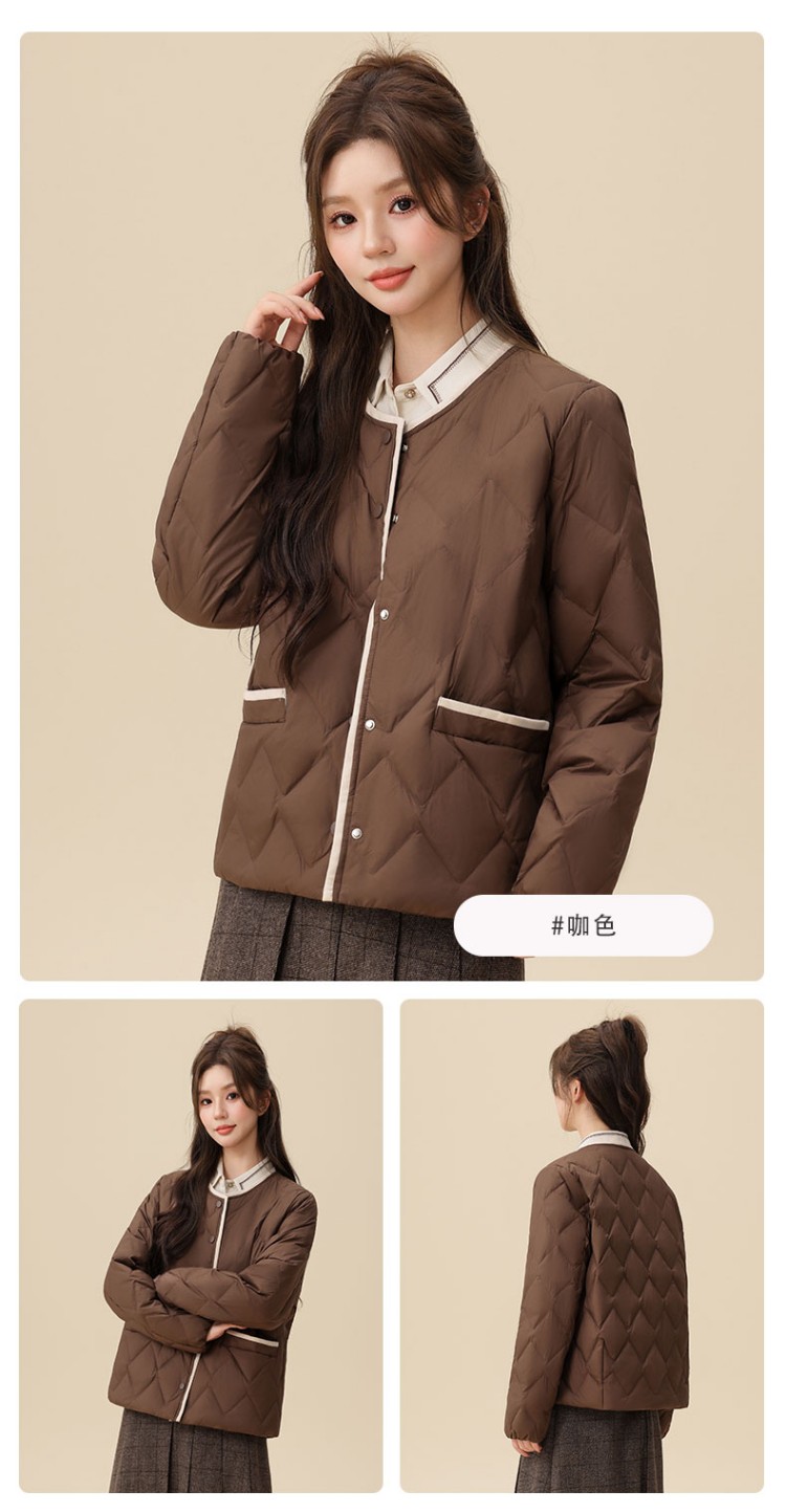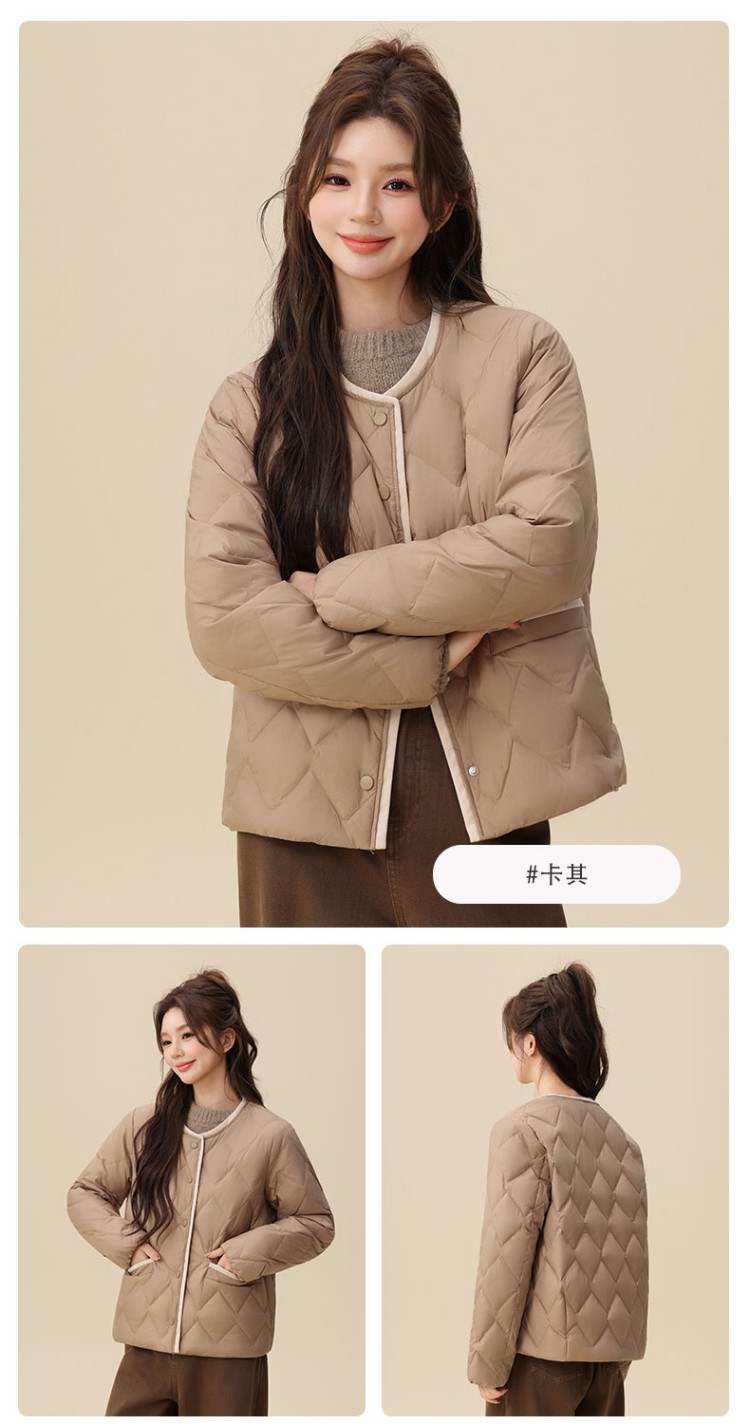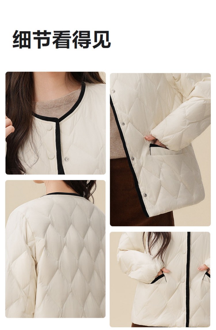 個调新款冬季百搭女小个子圆领菱格短款轻薄羽绒服1002 商品图5