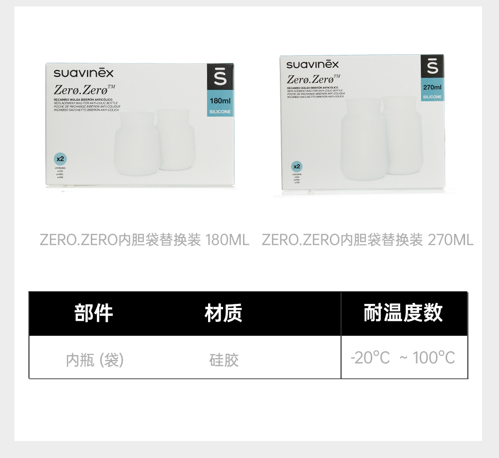 suavinex苏维妮进口ZERO.ZERO内胆袋 替换装防胀气硅胶奶袋
