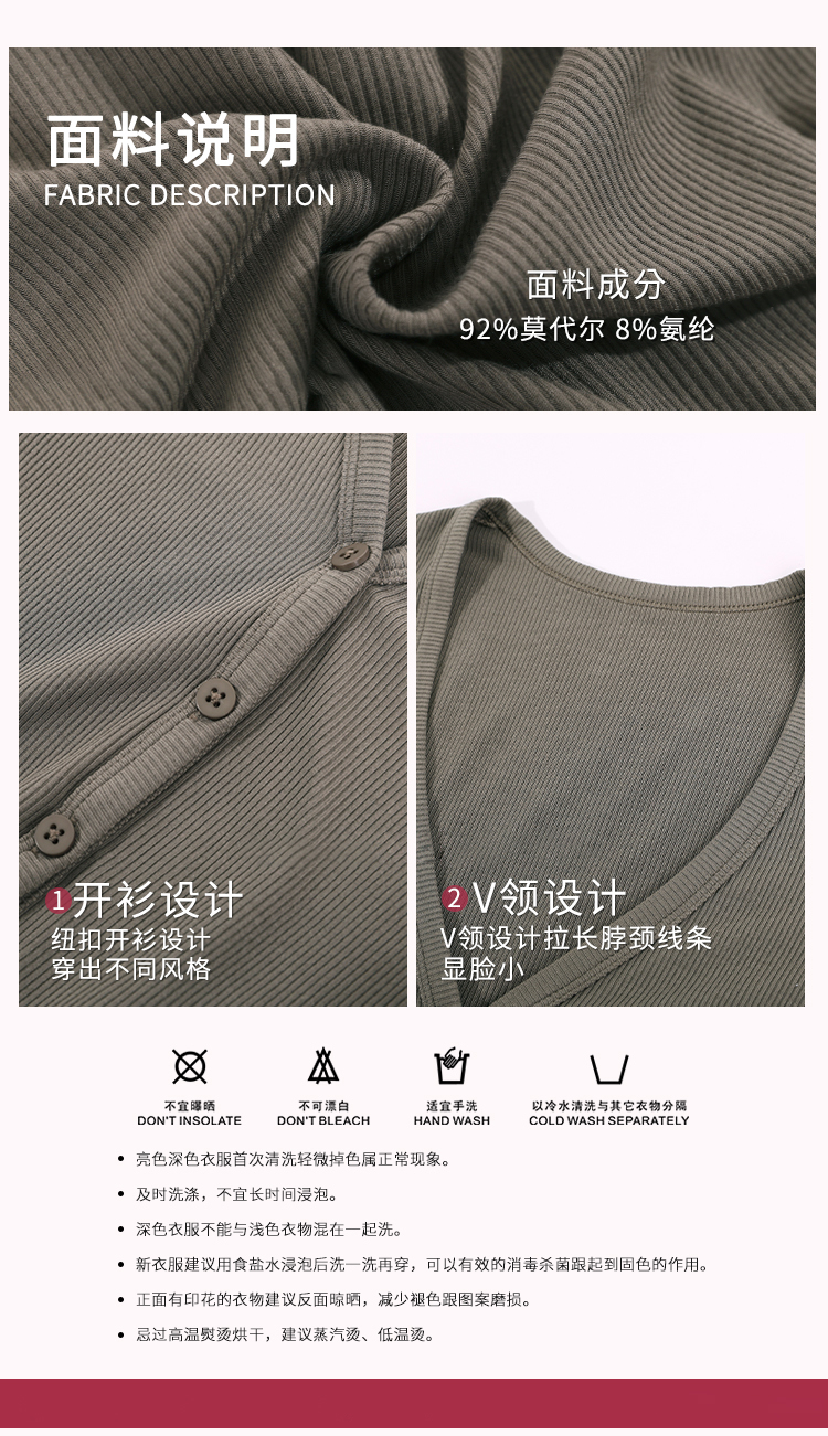 跃牌【周游世界】秋冬新款瑜伽服女V领开衫小个子修身螺纹长袖外套TP0909