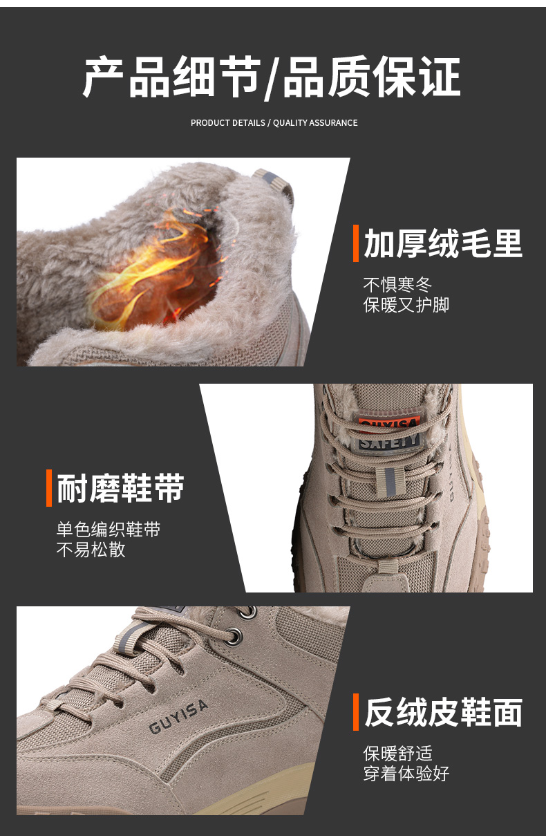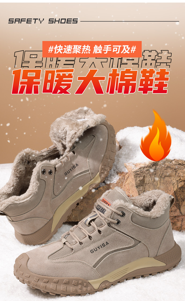 新品冬季加绒劳保鞋防砸防刺钢包头工地工厂安全鞋保暖抗寒橡胶底