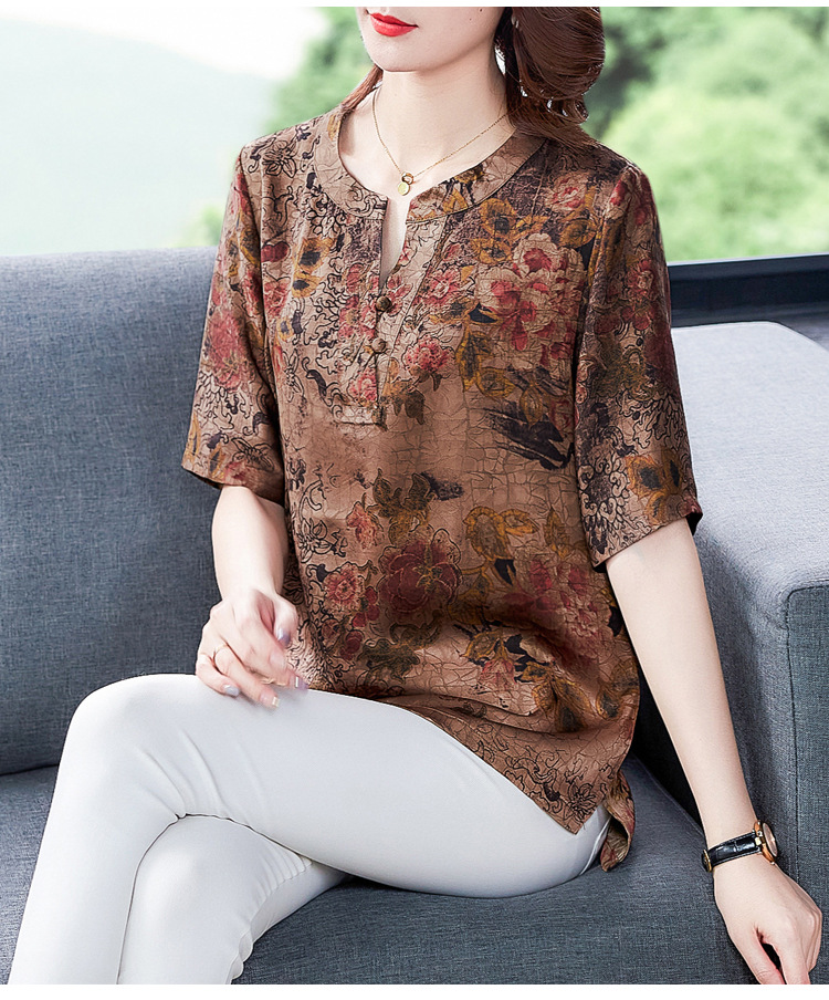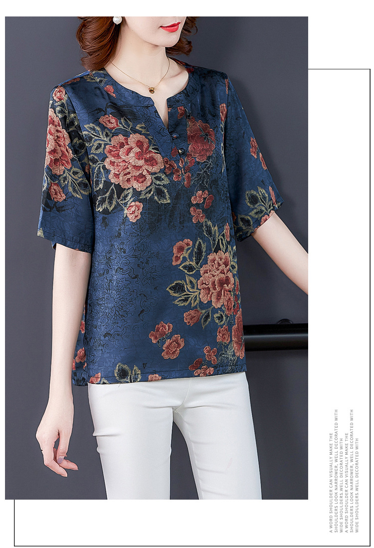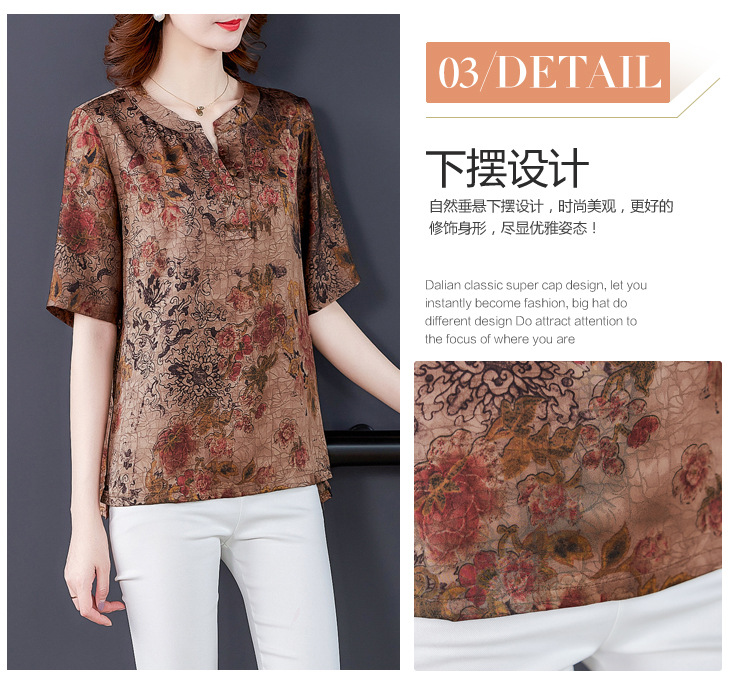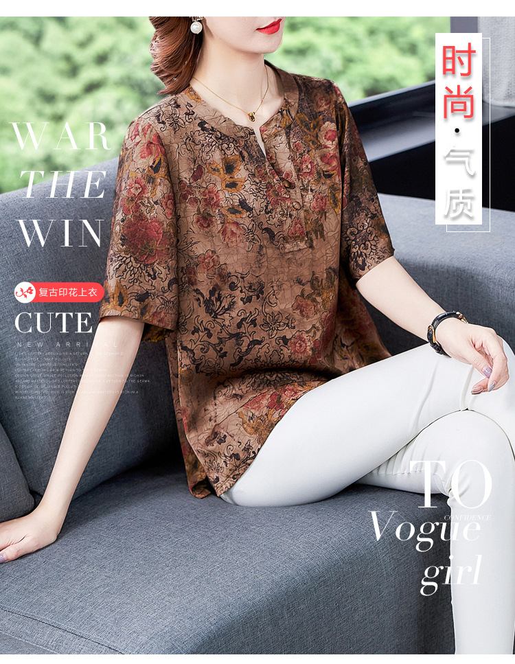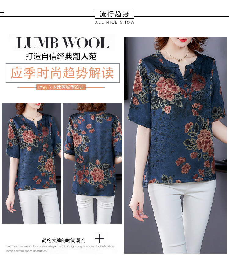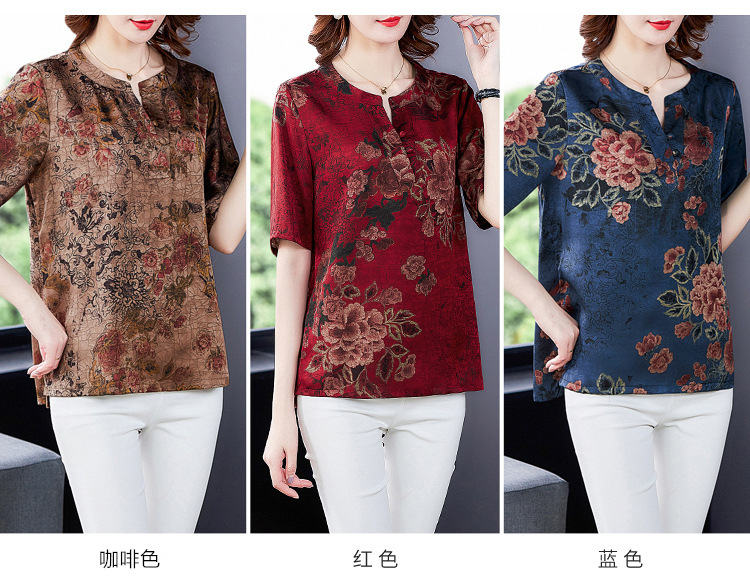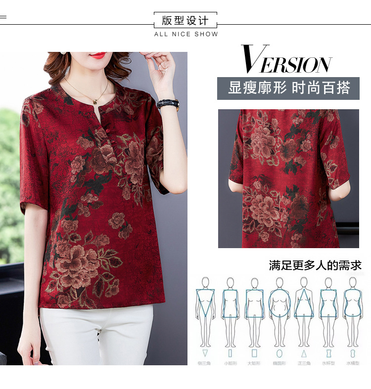 SXY-9660妈妈大码女装夏真丝印花修身显瘦T恤上衣