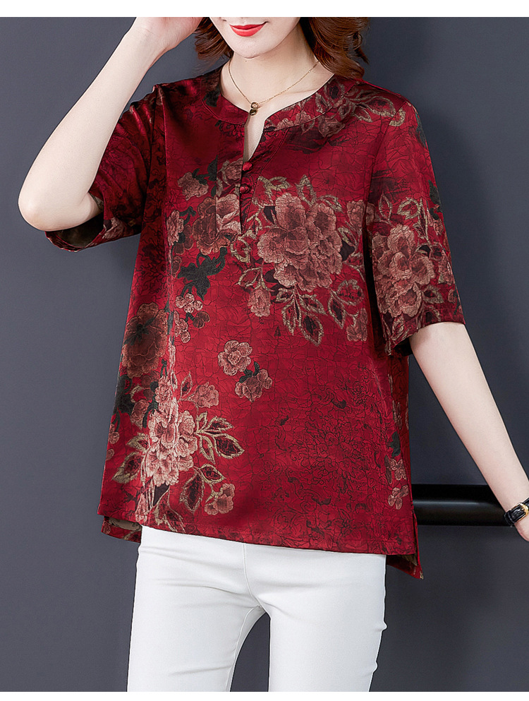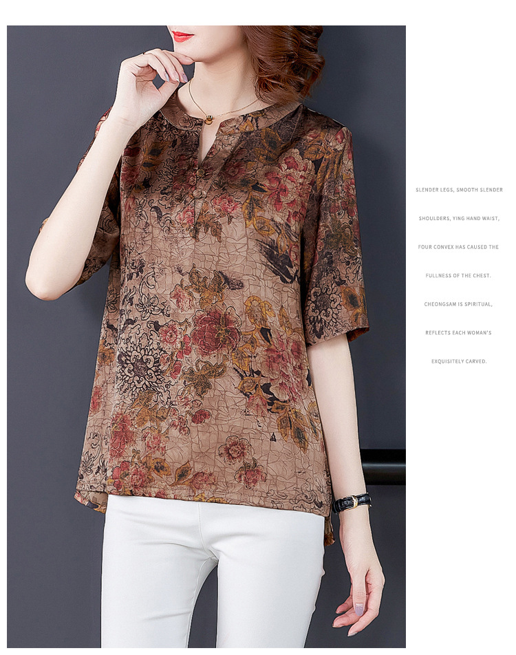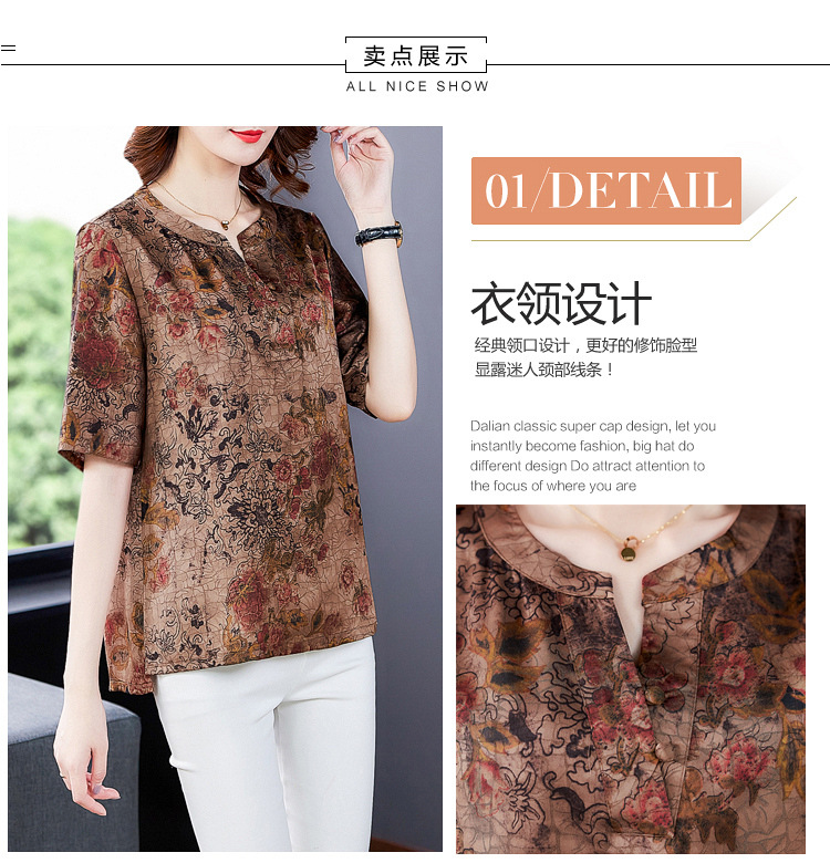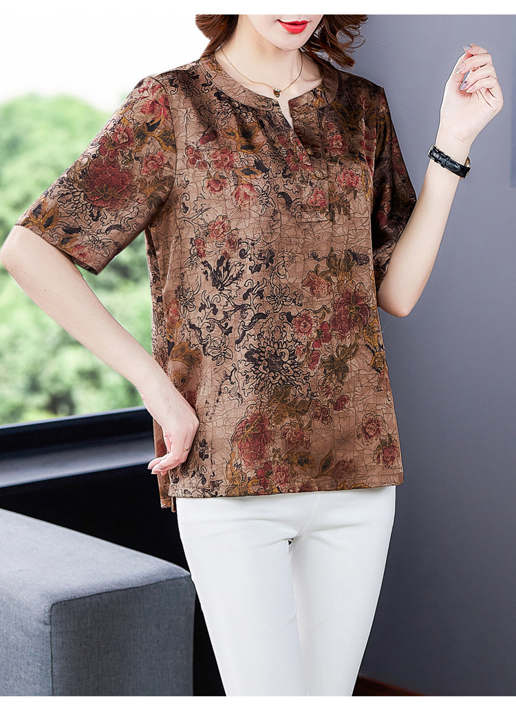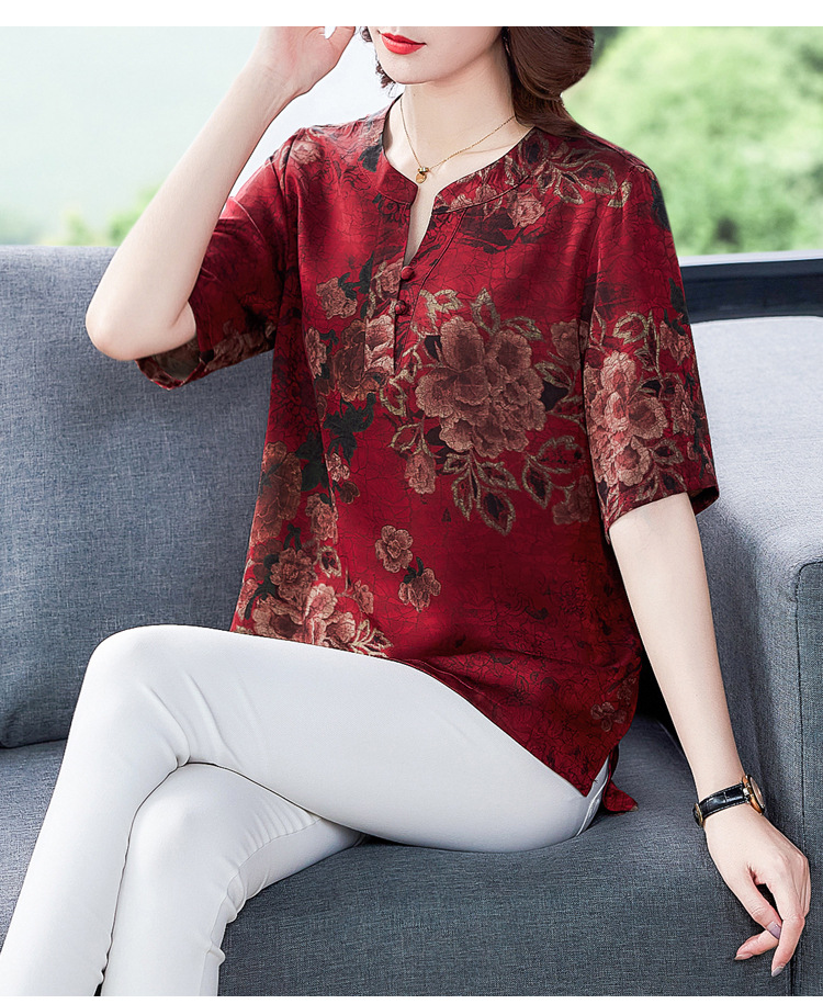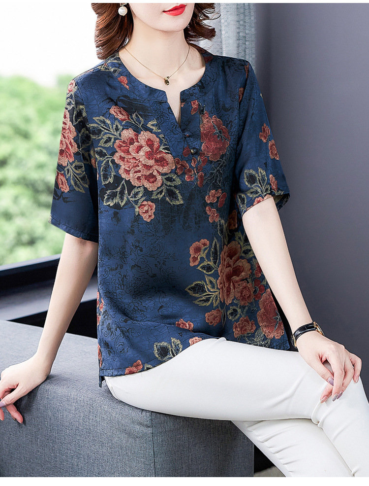 SXY-9660妈妈大码女装夏真丝印花修身显瘦T恤上衣