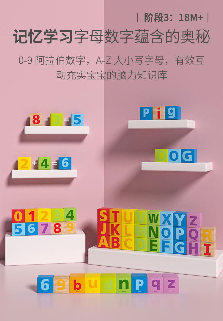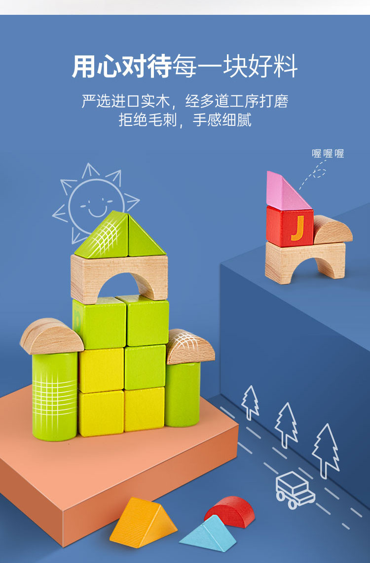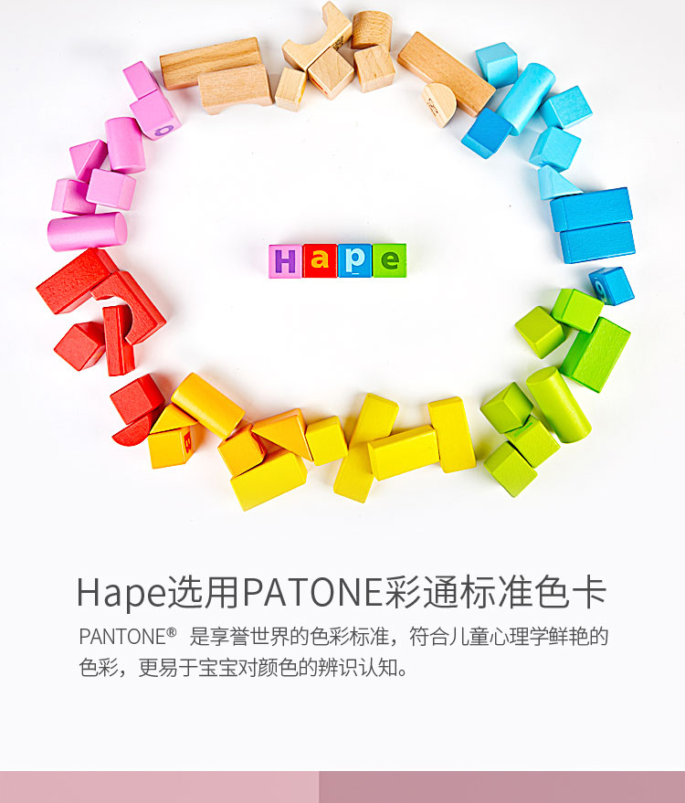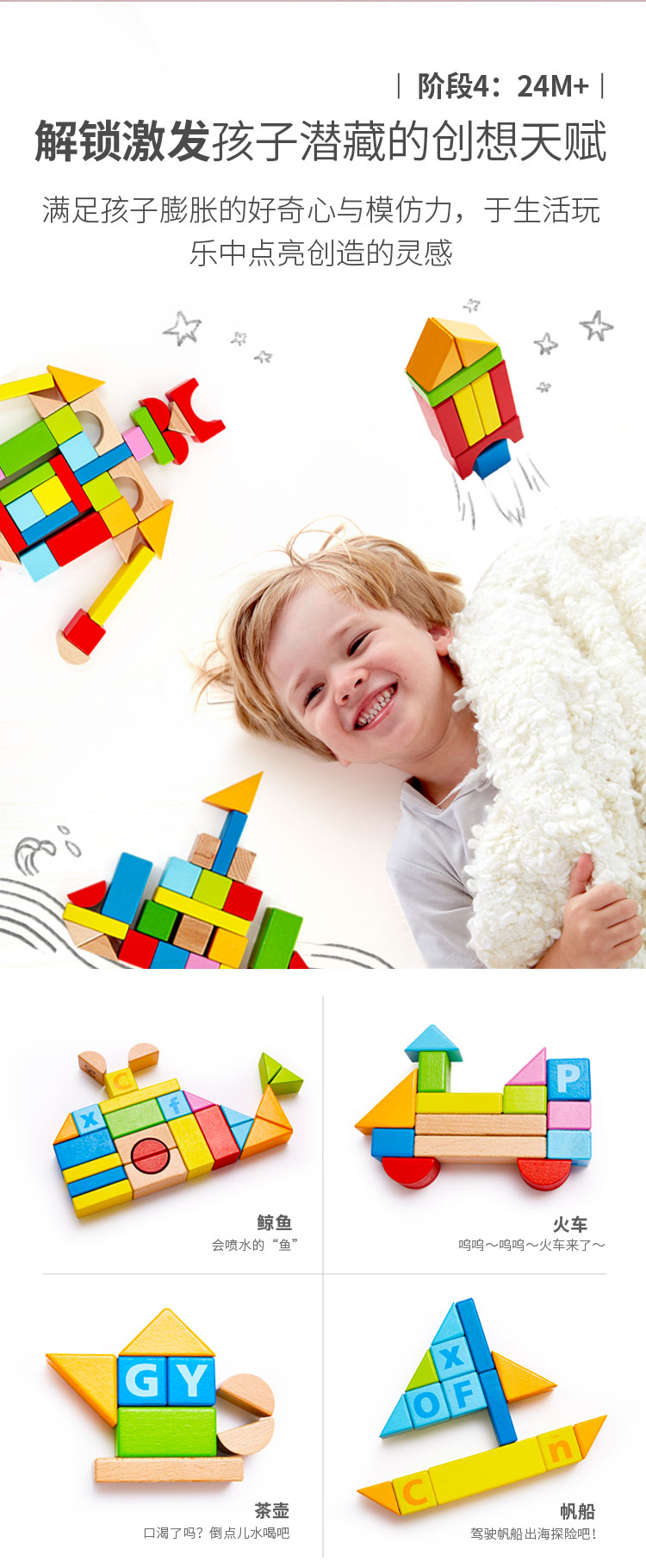 Hape木质积木 大颗粒盒装木头宝宝拼装玩具1-3岁男女小孩儿童礼物 80粒盒装积木E8022
