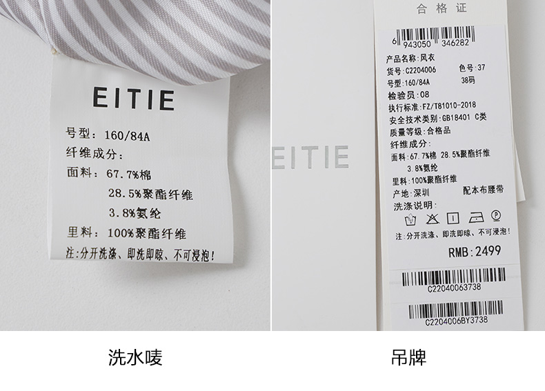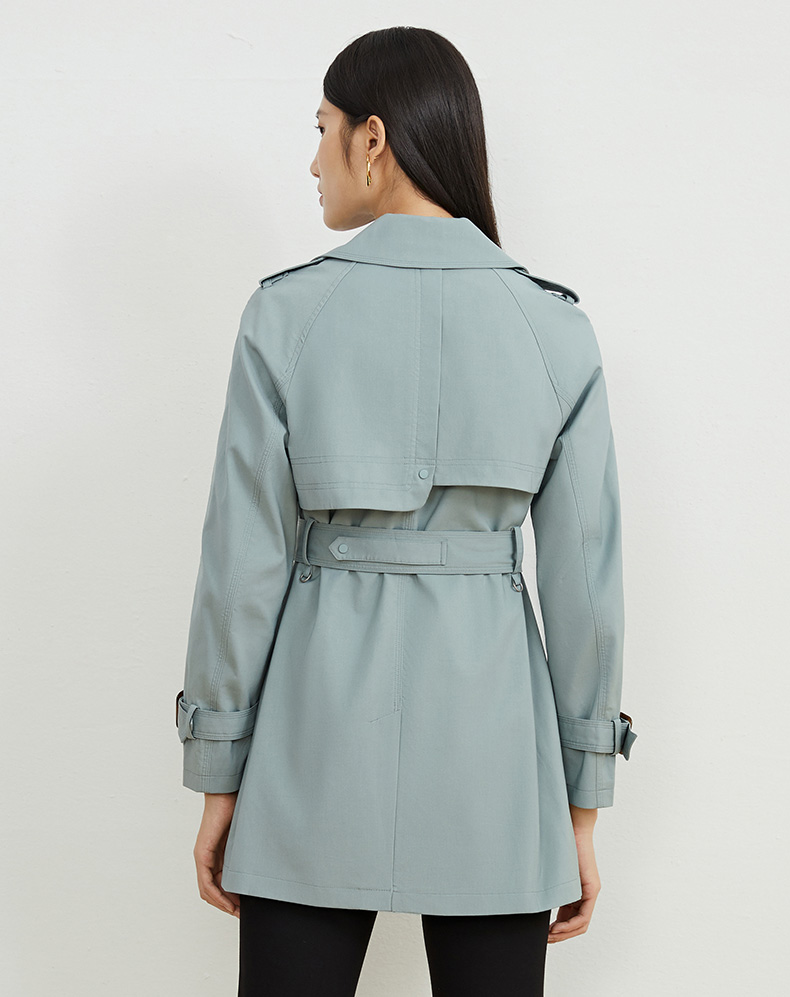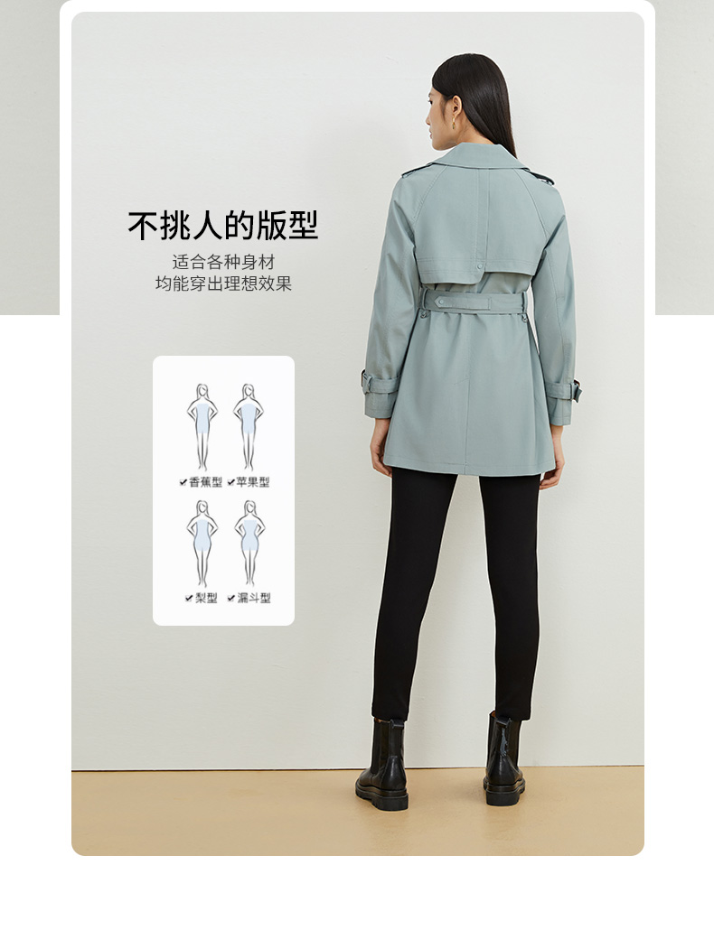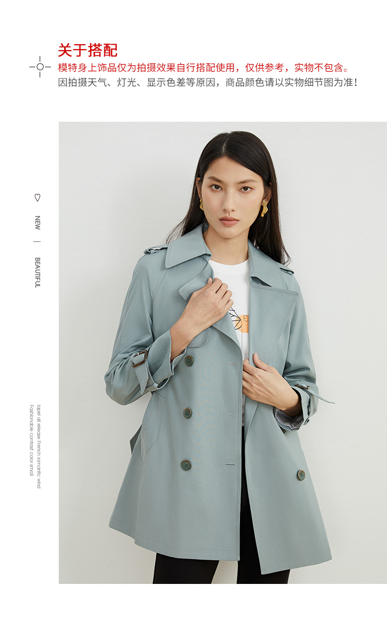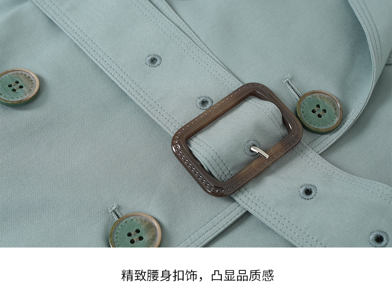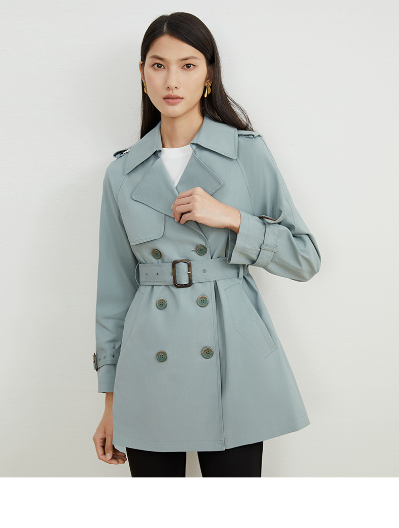 EITIE爱特爱秋季新款经典双排扣显瘦通勤蓝色a字收腰风衣外套C2204006
