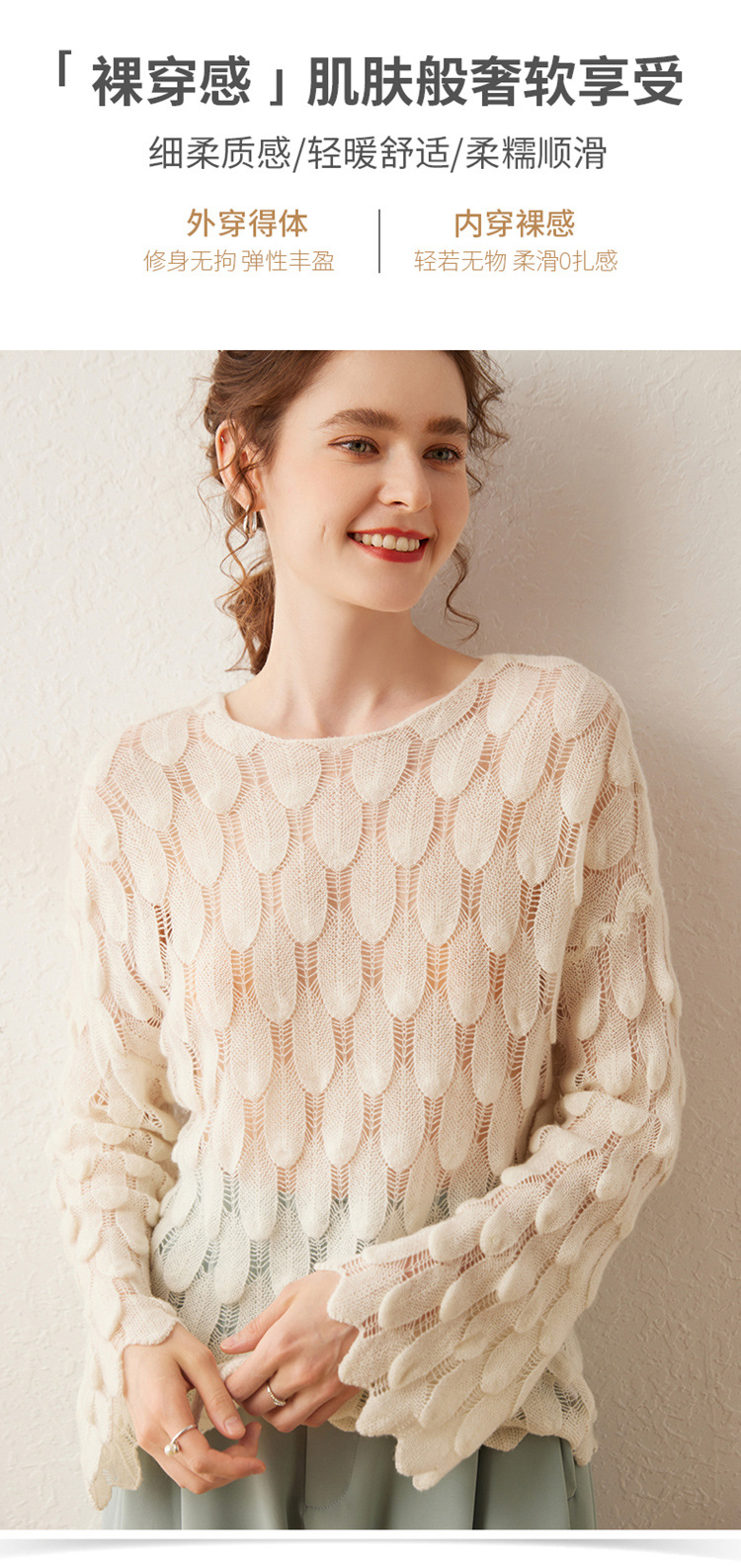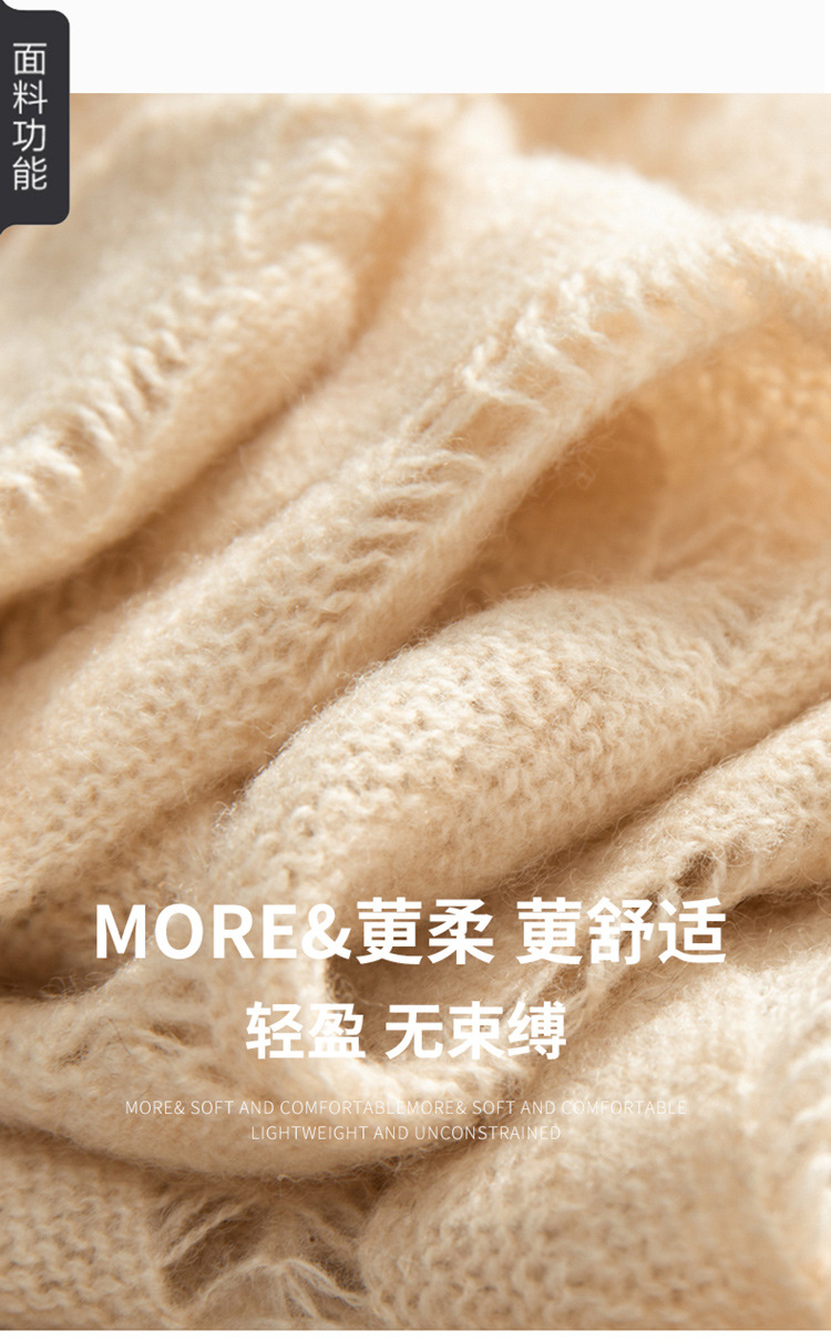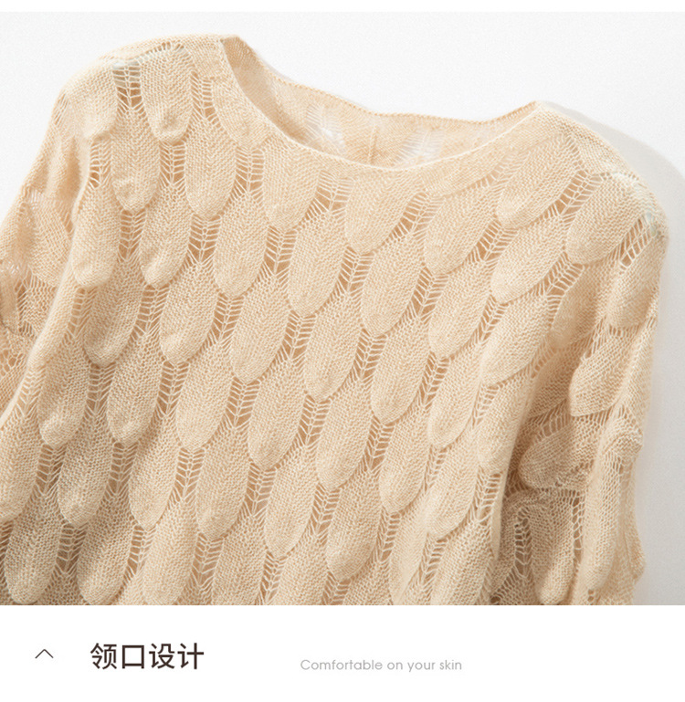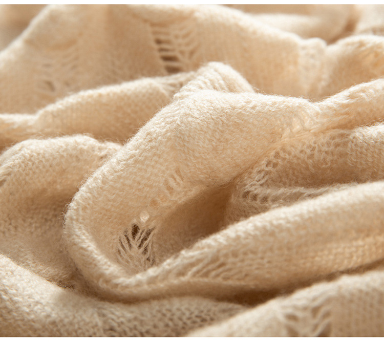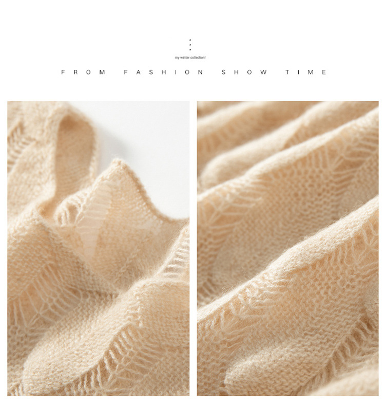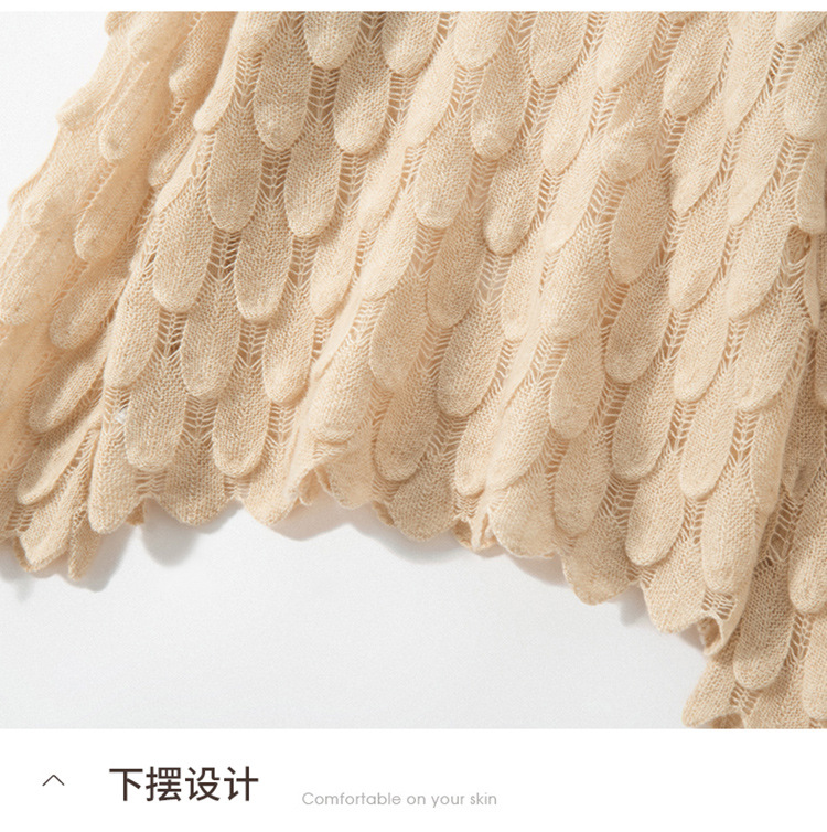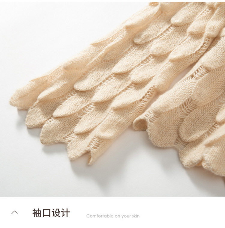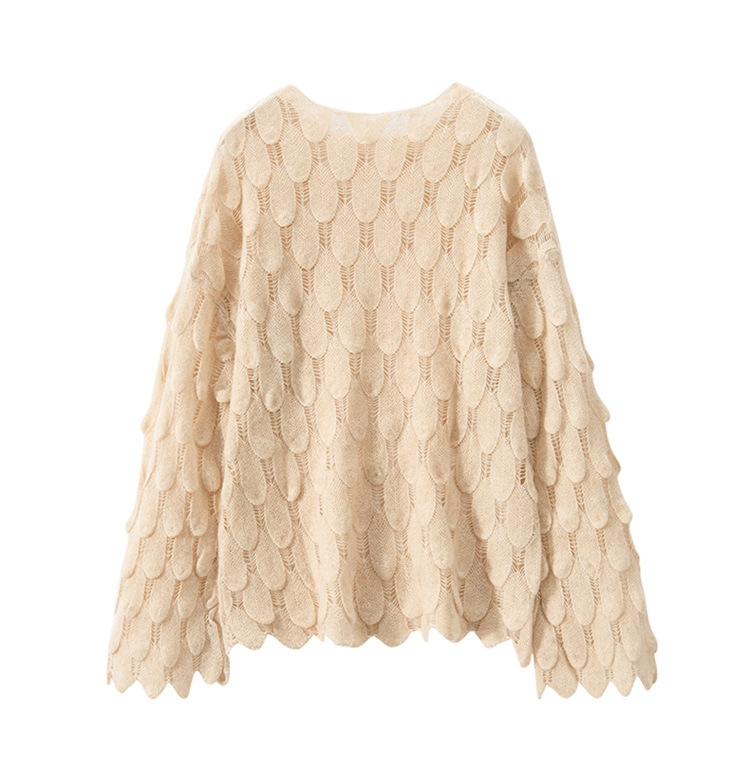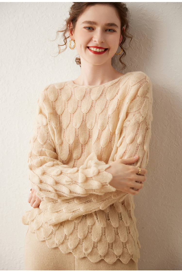 雀说山羊绒罩衫圆领长袖镂空羽毛针织衫上衣新款薄款套头休闲新款毛衣AL8745