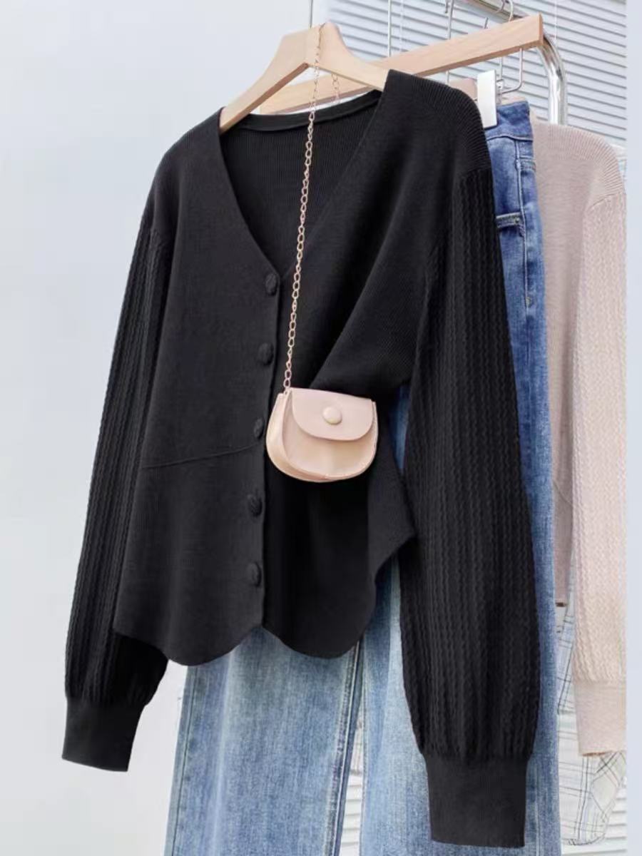 【孤品捡漏】G194黑色针织别致毛衫-喜出