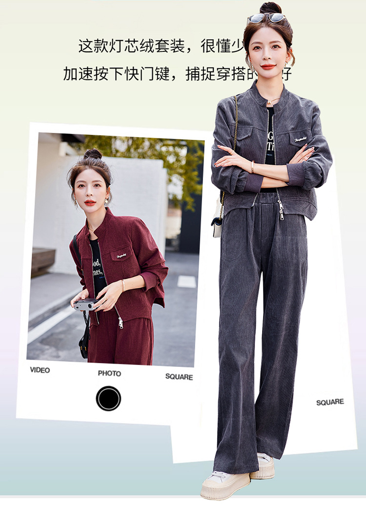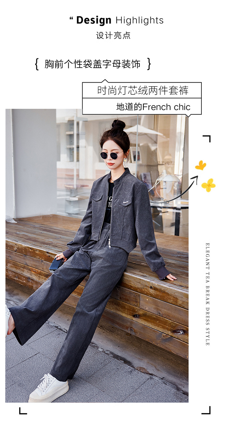 2024春秋新款休闲时尚时髦洋气高级感减龄显瘦灯芯绒两件套LZW-SFLY8851