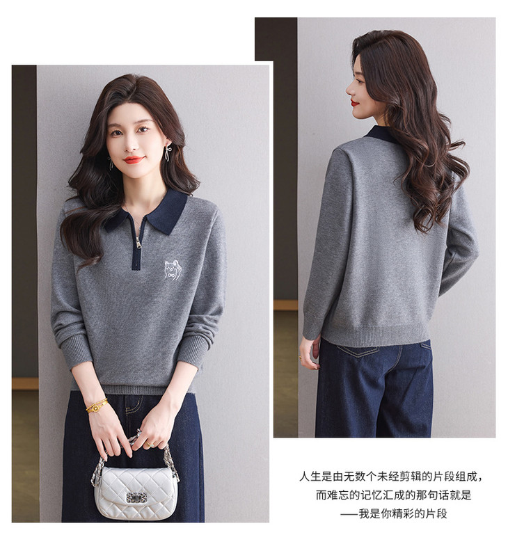 娃娃领针织衫漂亮洋气减龄毛衣,轻奢高级感打底衫显瘦短款CC-27-25177