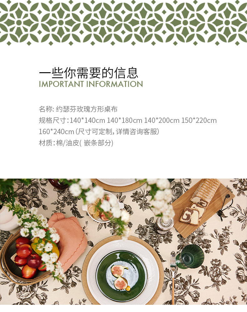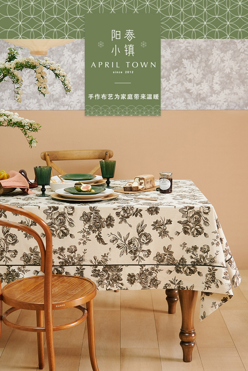 约瑟芬玫瑰田园复古美式碎花餐桌布