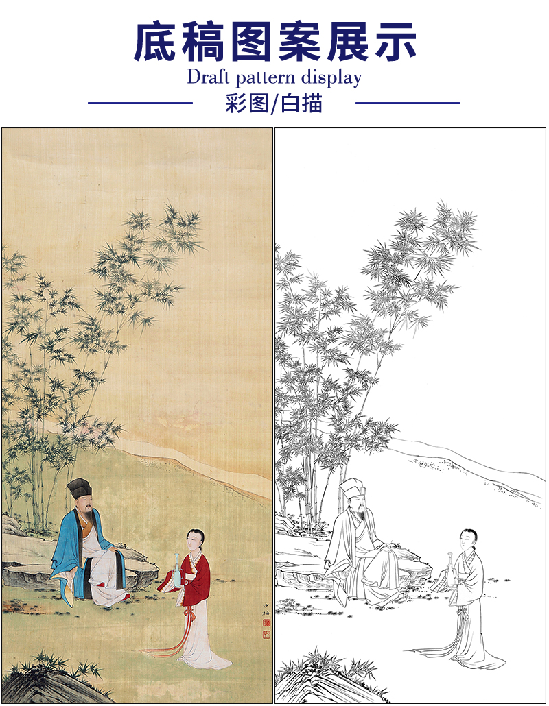 陈少梅工笔画山水人物白描底稿《人物》临摹勾线高清打印稿SM07