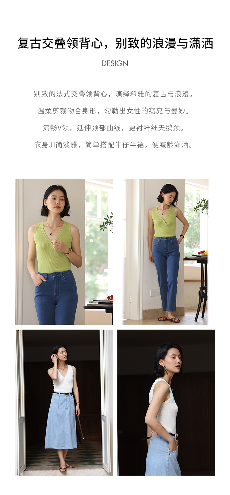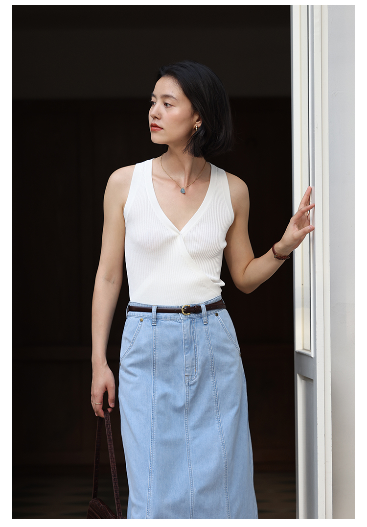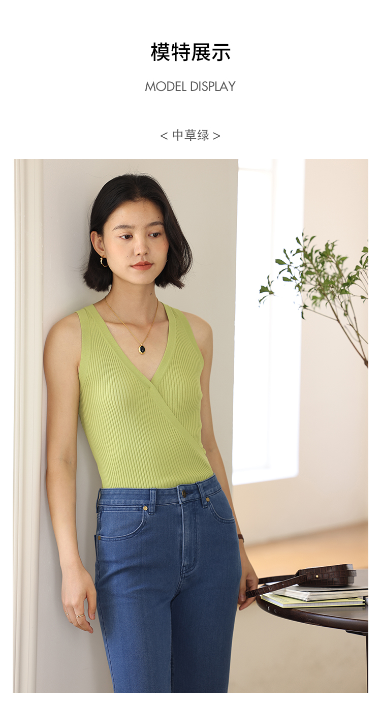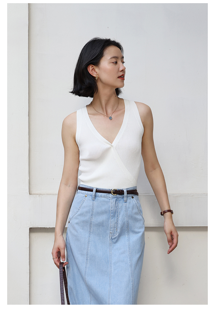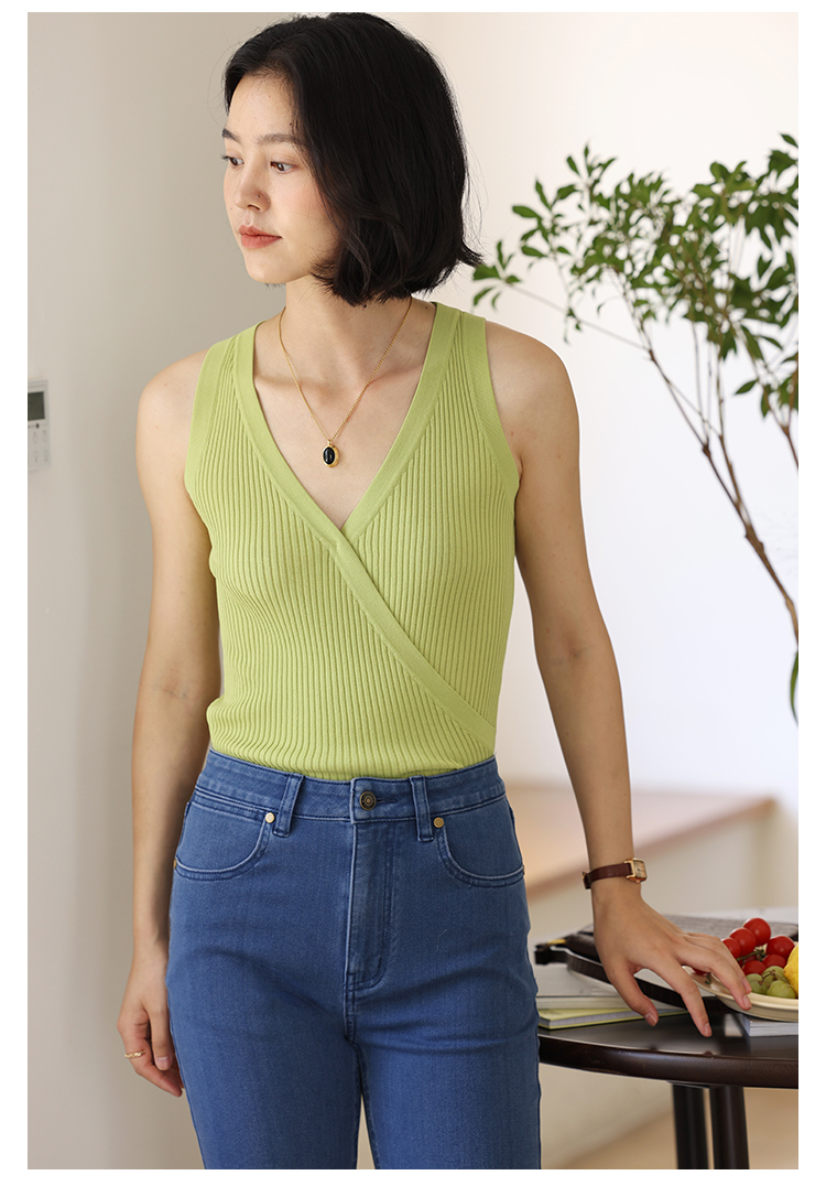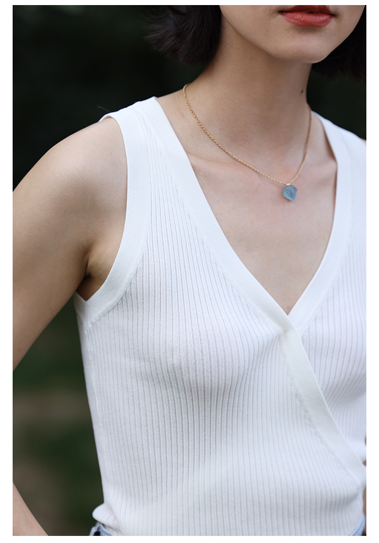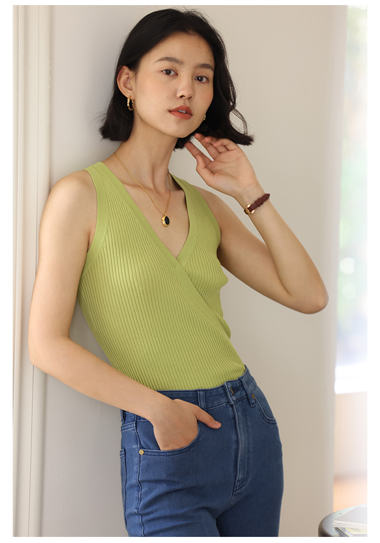 HeyDress法式V领吊带背心女夏季交叠设计感修身坑条无袖别致上衣