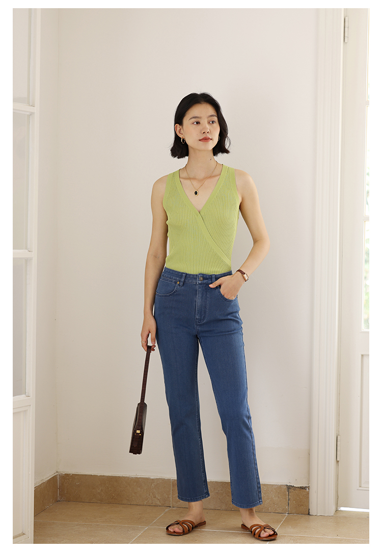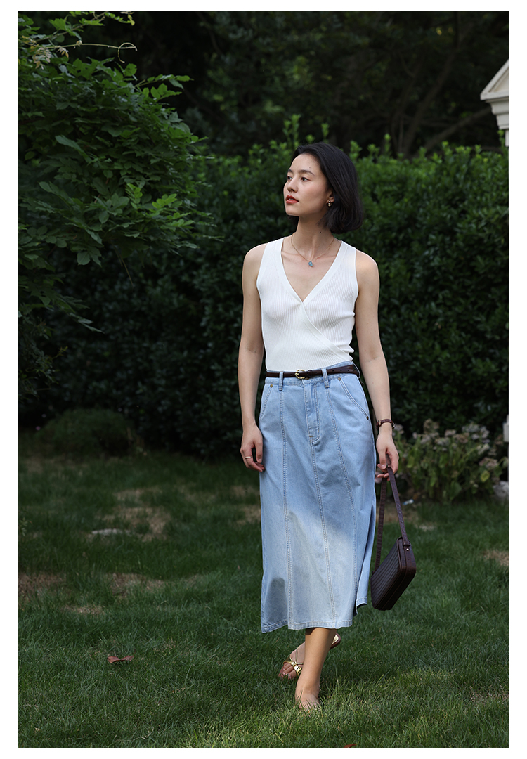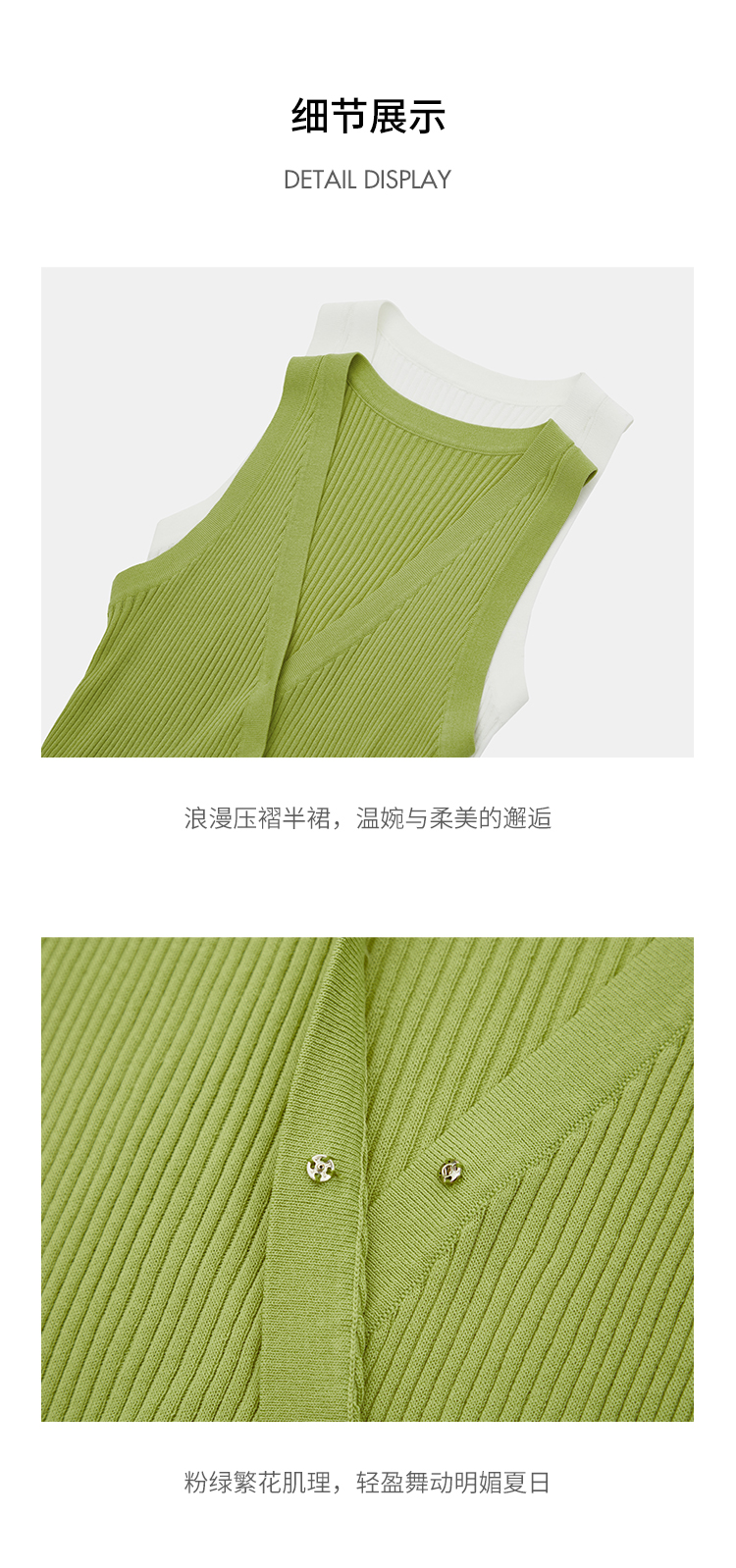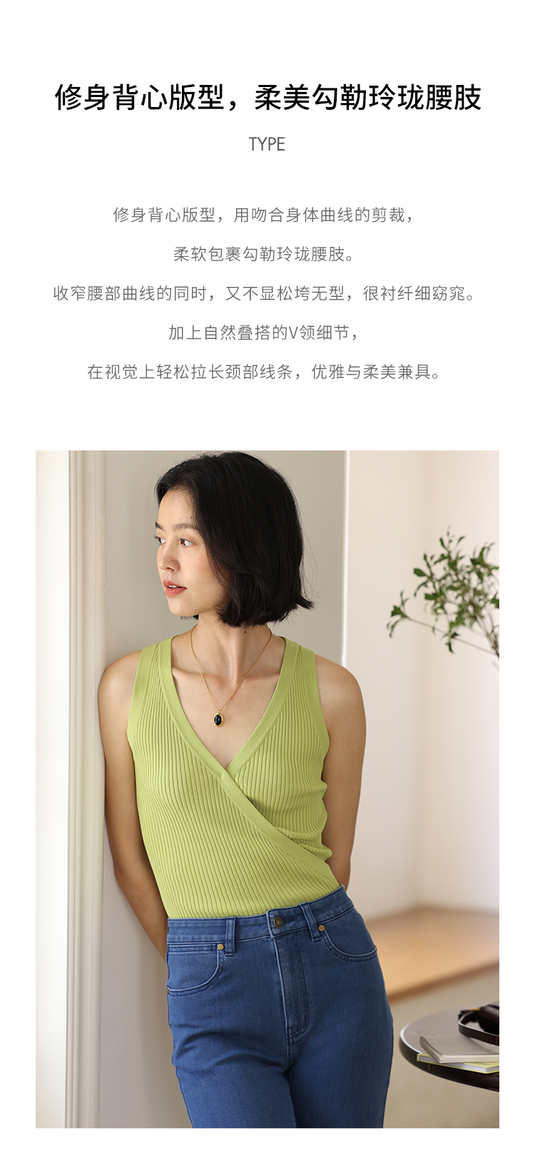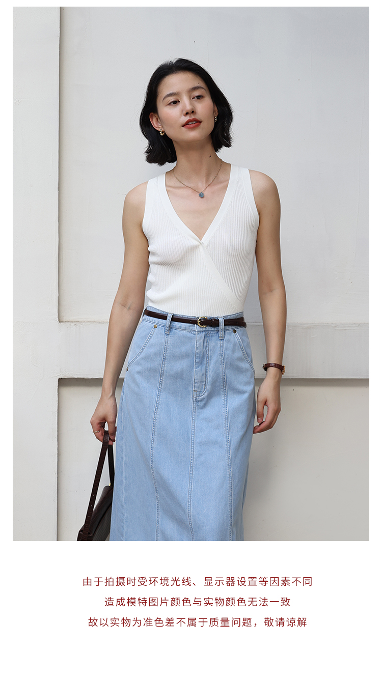 HeyDress法式V领吊带背心女夏季交叠设计感修身坑条无袖别致上衣