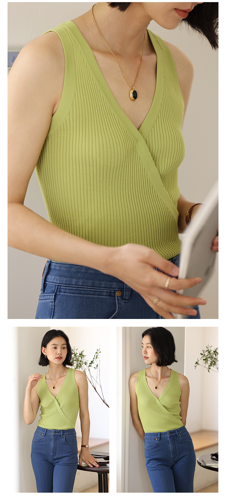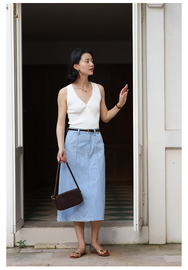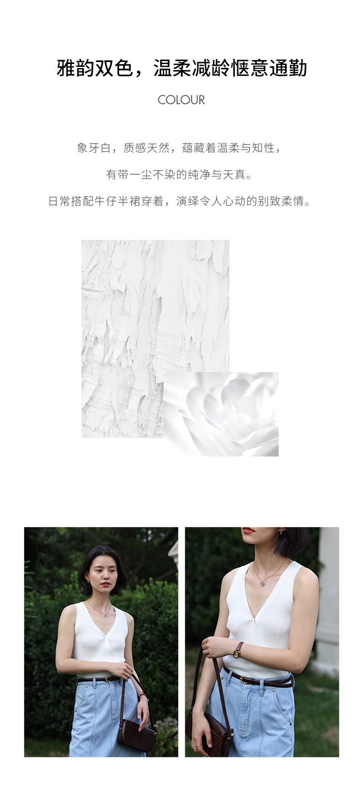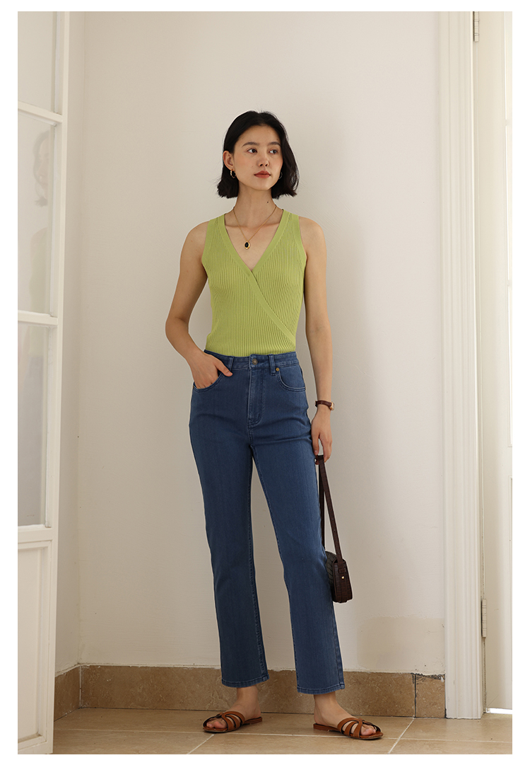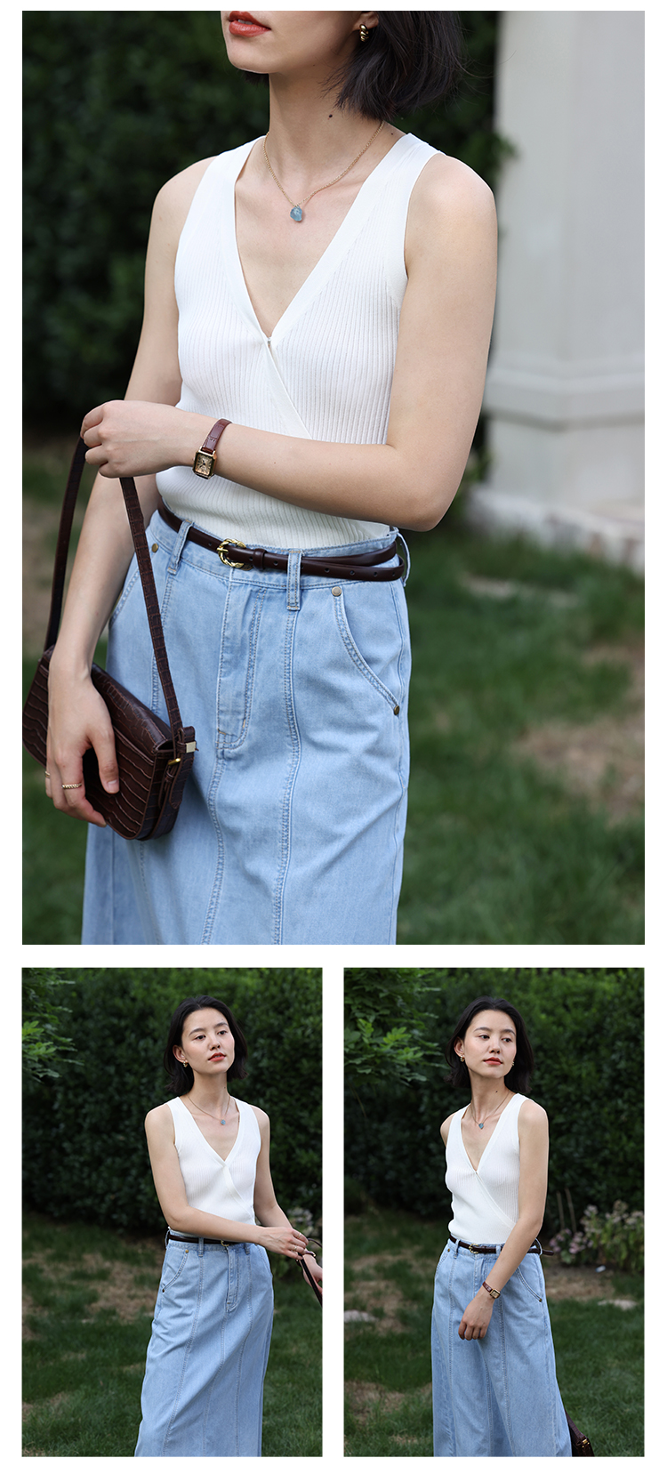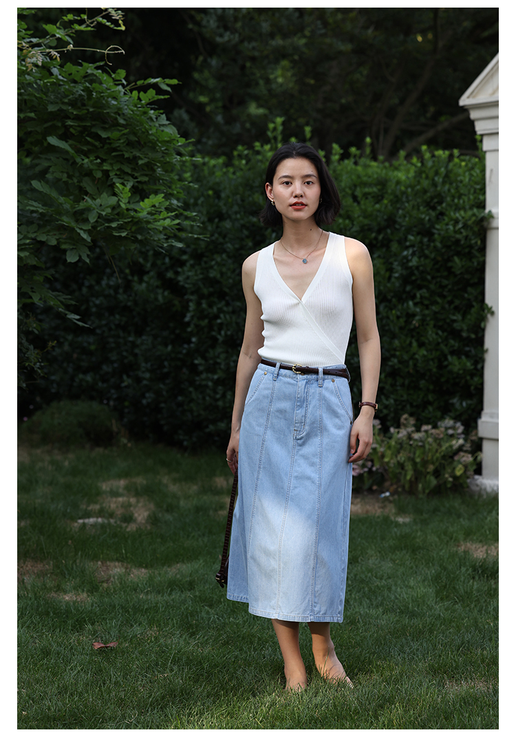 HeyDress法式V领吊带背心女夏季交叠设计感修身坑条无袖别致上衣