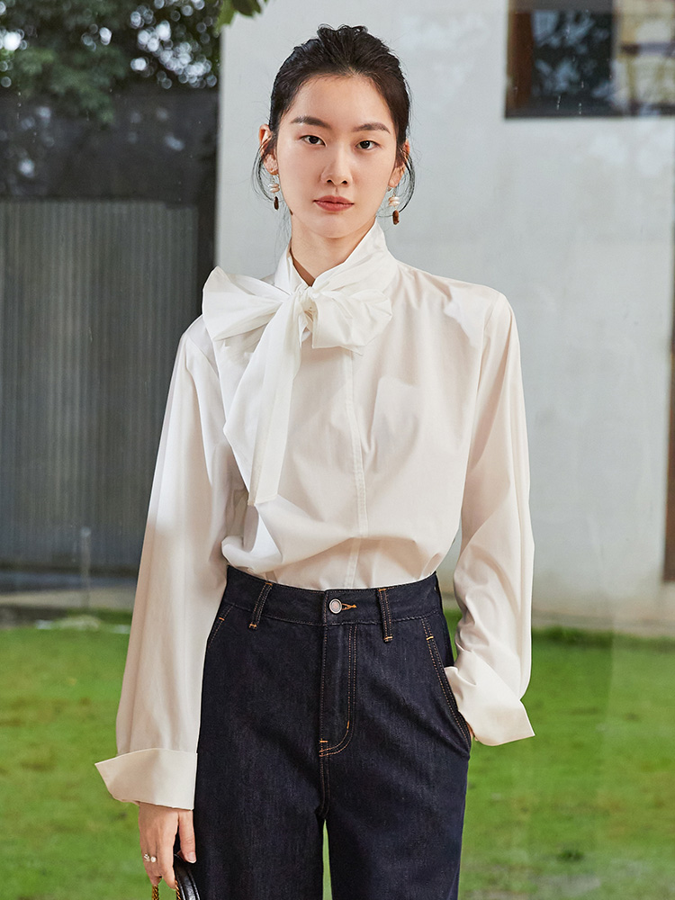设计感飘带白色衬衫 2026 春夏装新品 宽松垂感防晒通勤衬衣
