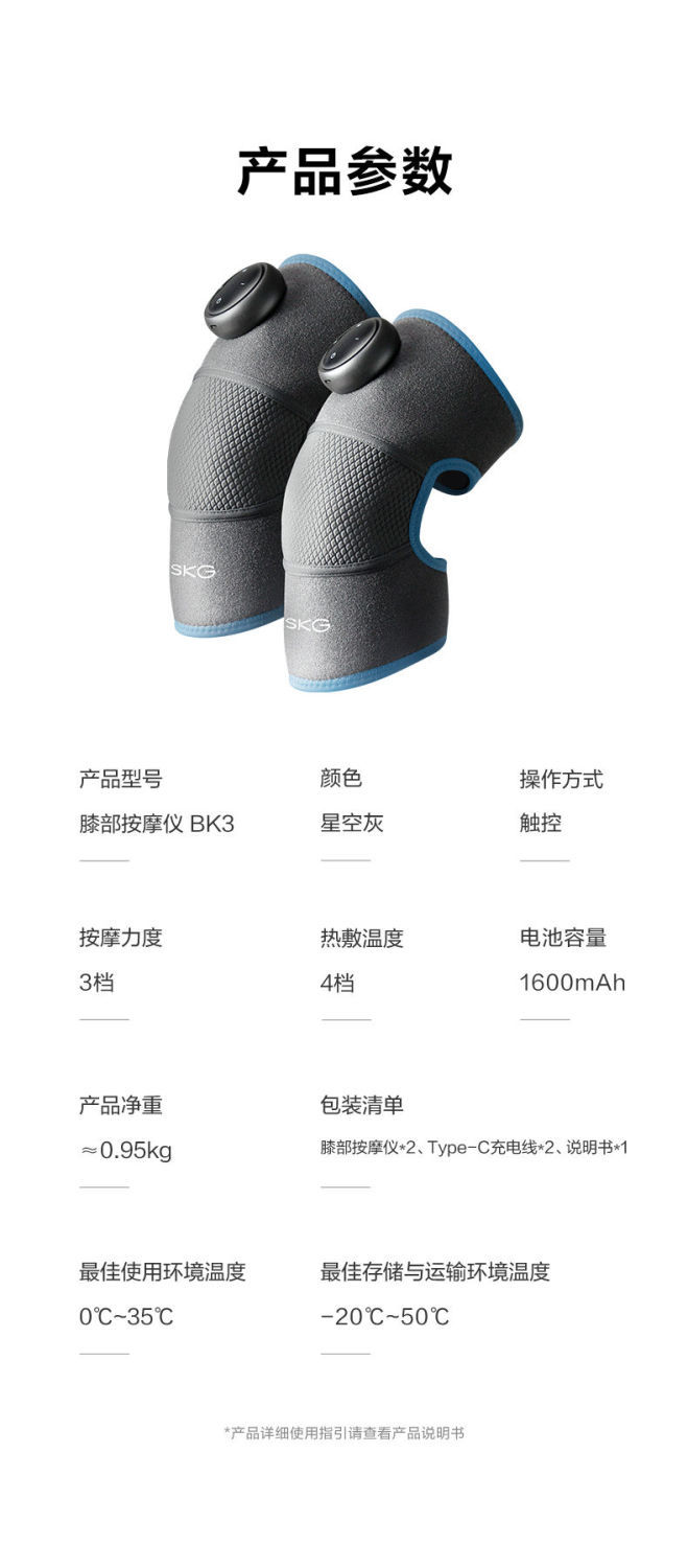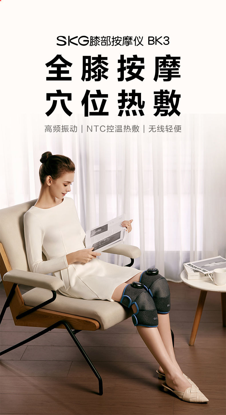 SKG膝部按摩器BK3全膝按摩4档热敷透气携膝盖加热理疗器护膝1对 SKG膝部按摩仪BK3(一对双只) 4档热敷 3档振动全膝按摩 透气便携