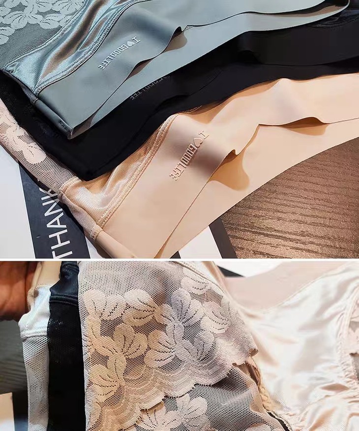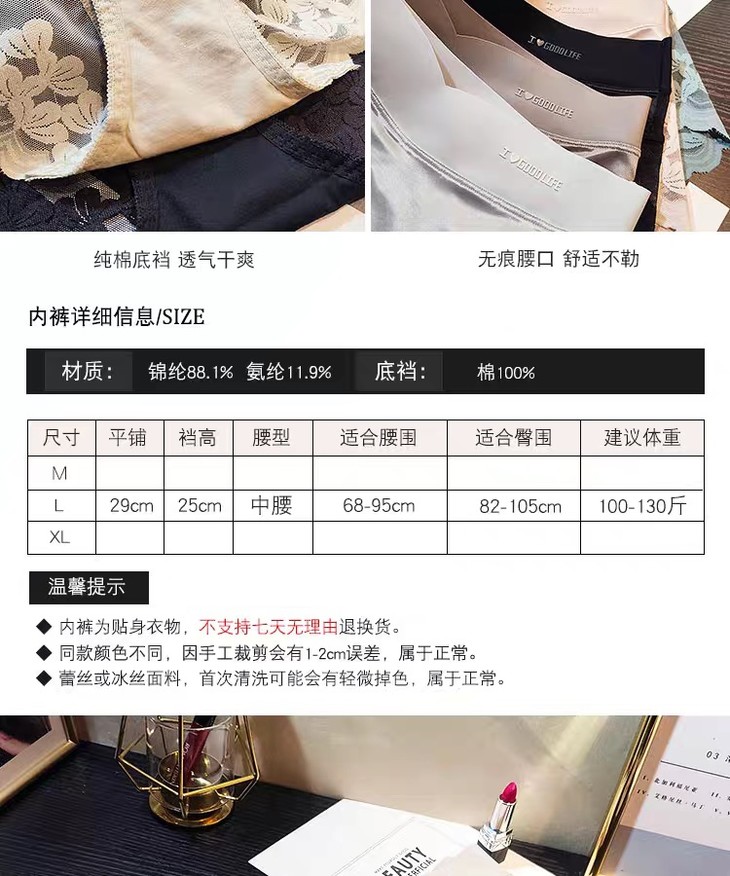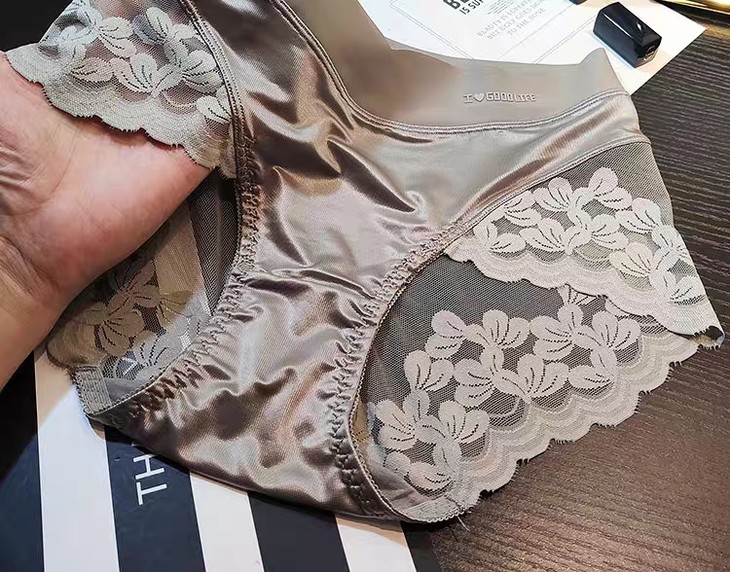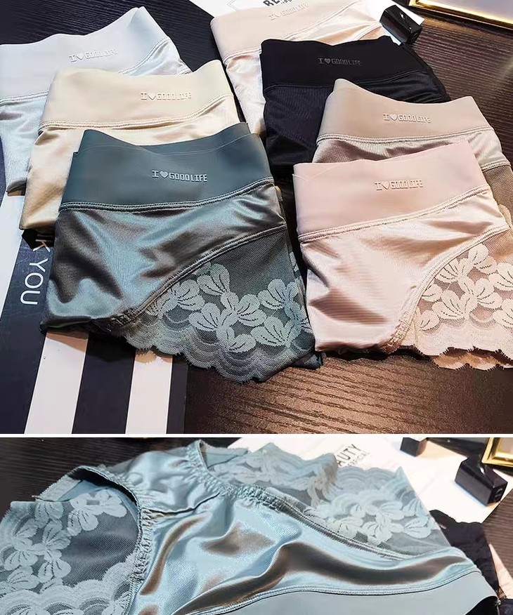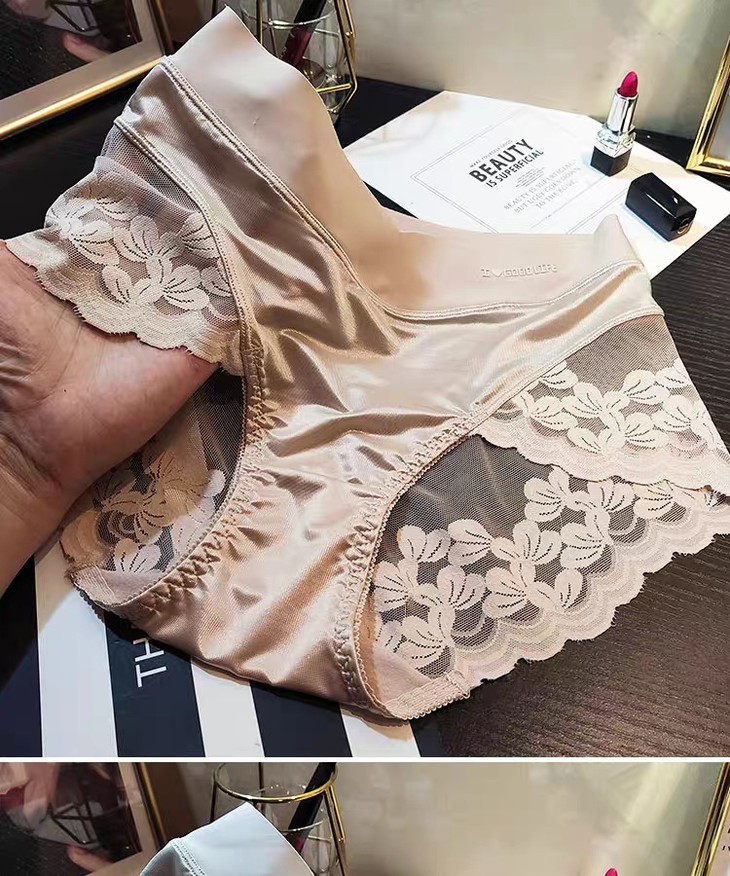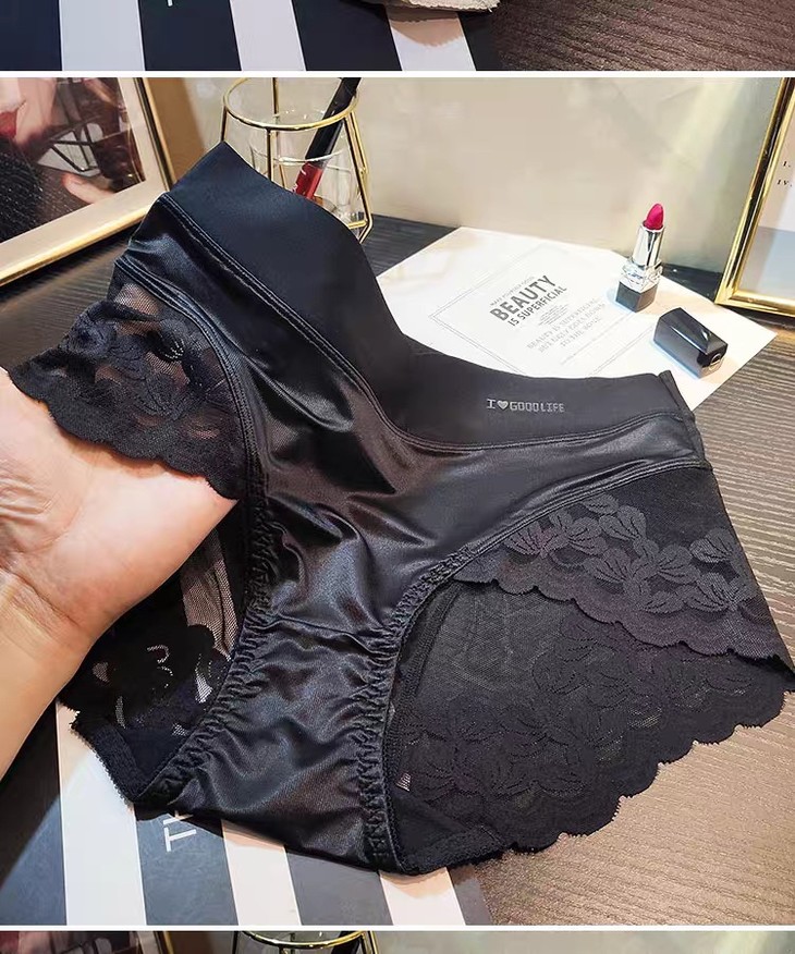 2条装包臀拼接透气网纱纯棉裆缎面三角内裤