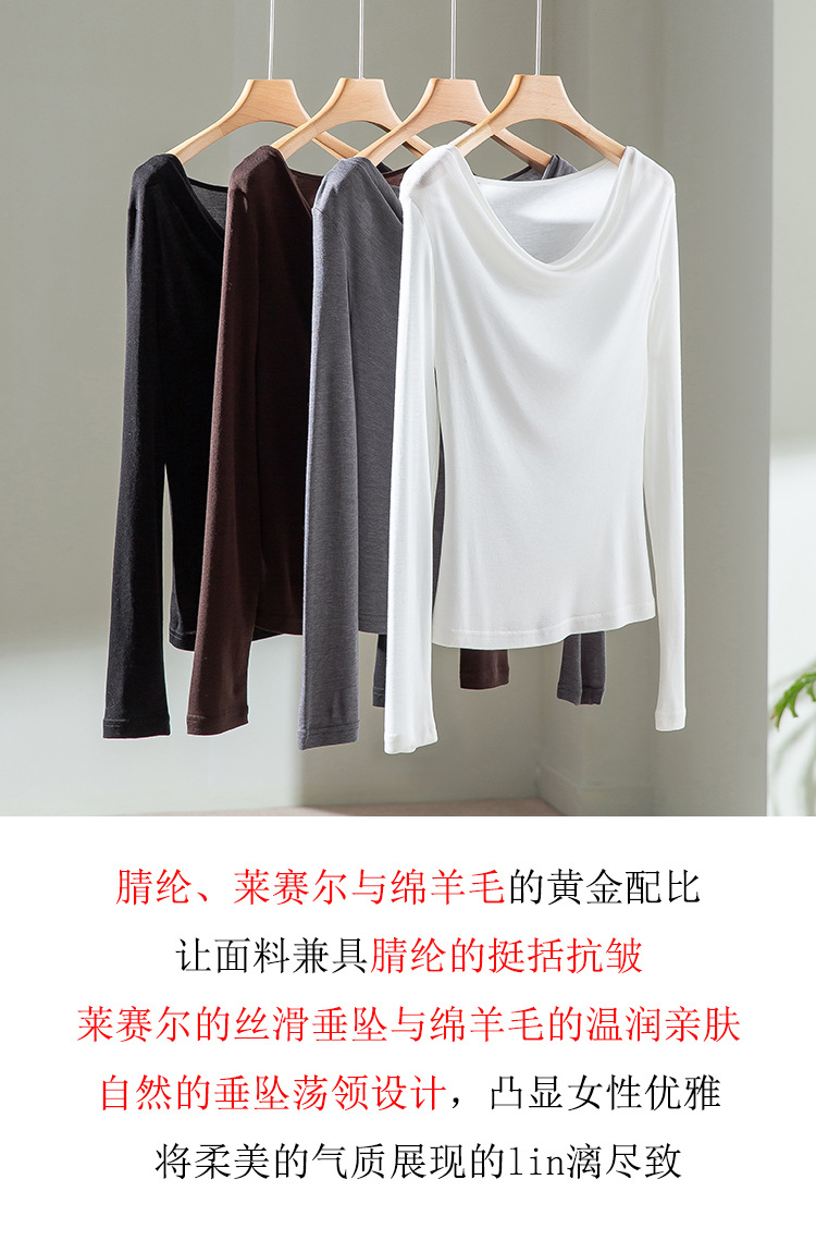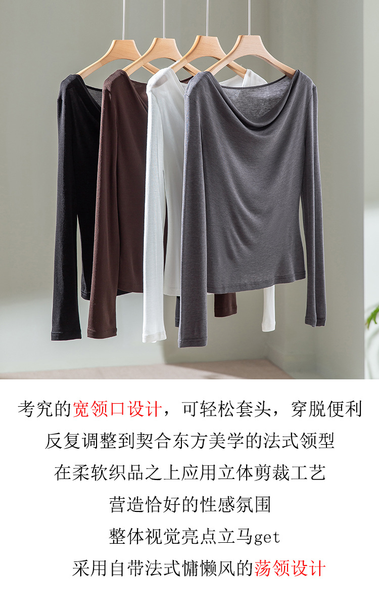 丁摩 天丝羊毛荡领针织衫上衣打底衫132537
