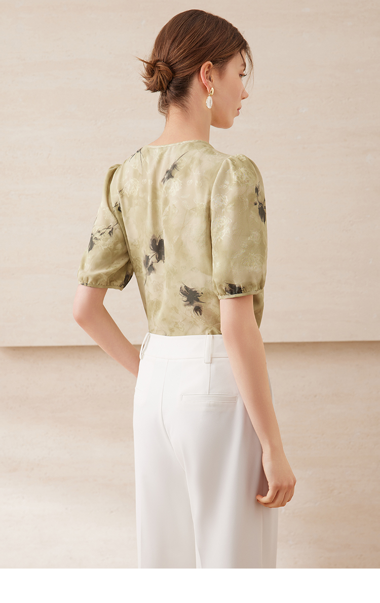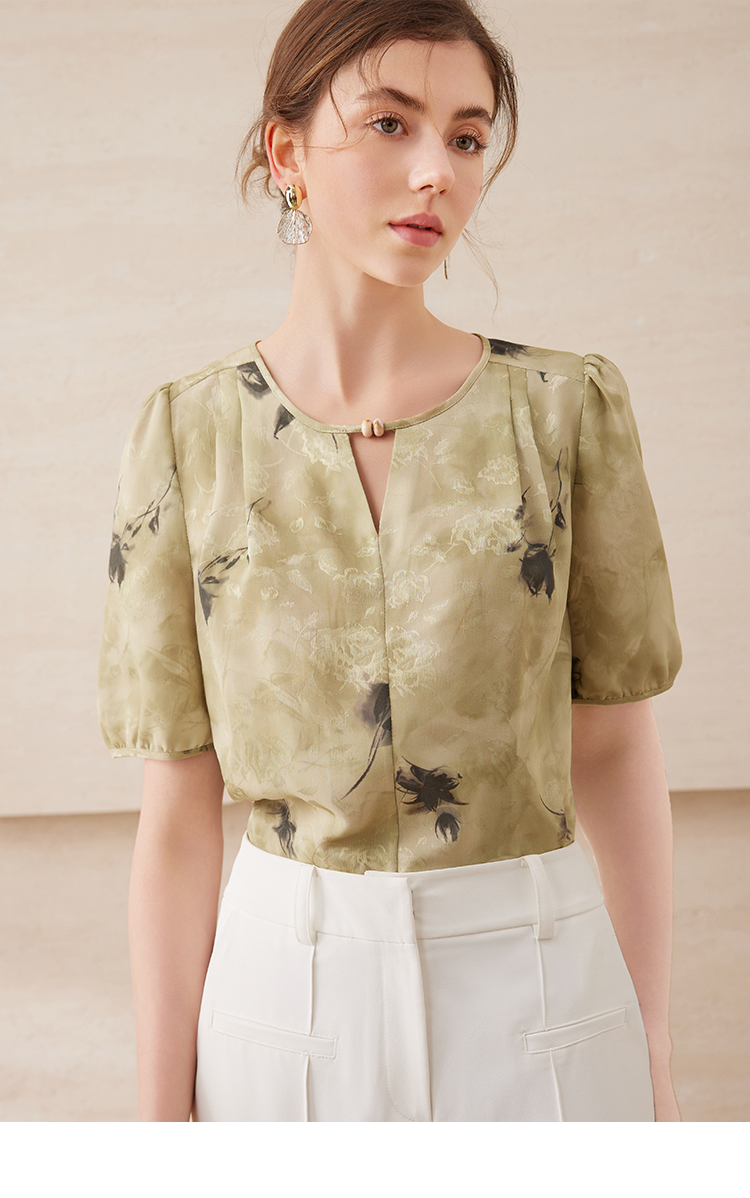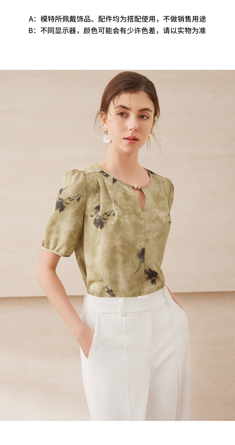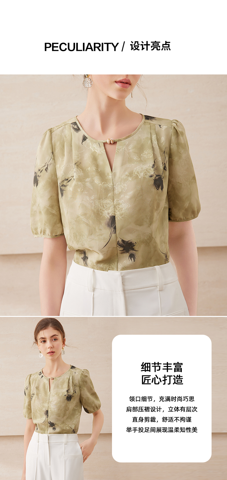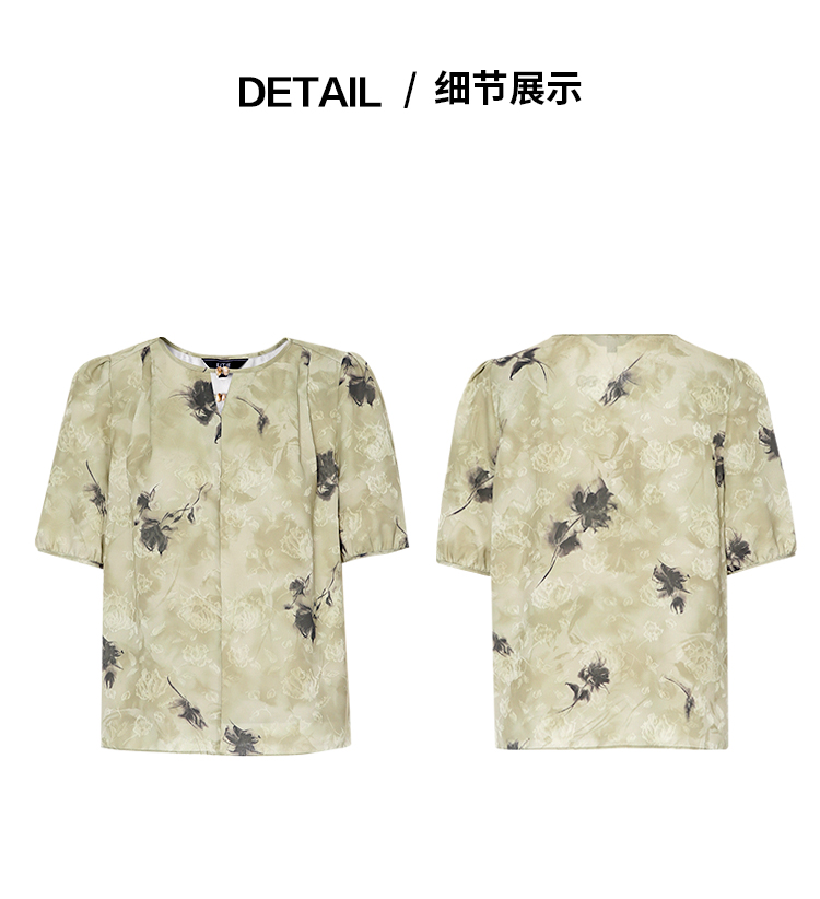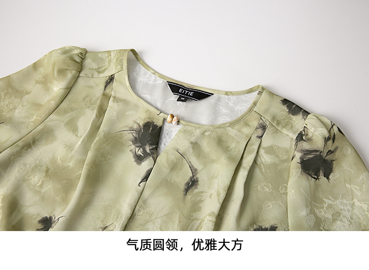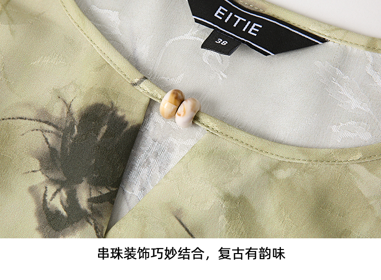 【中式印花直筒小上衣】EITIE爱特爱气质圆领舒适百搭2025夏新款B2513604