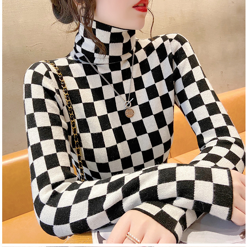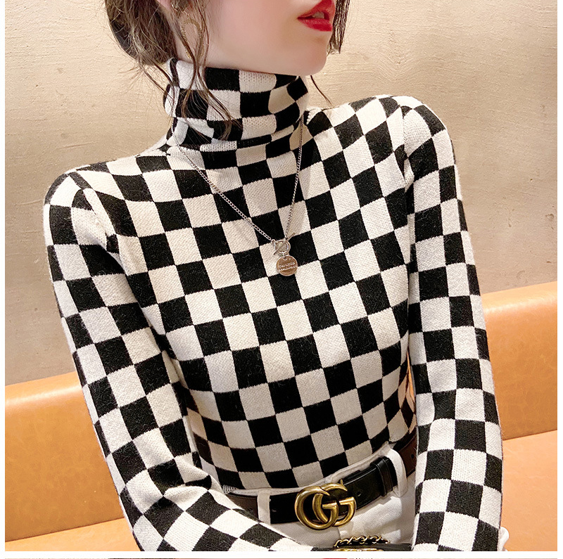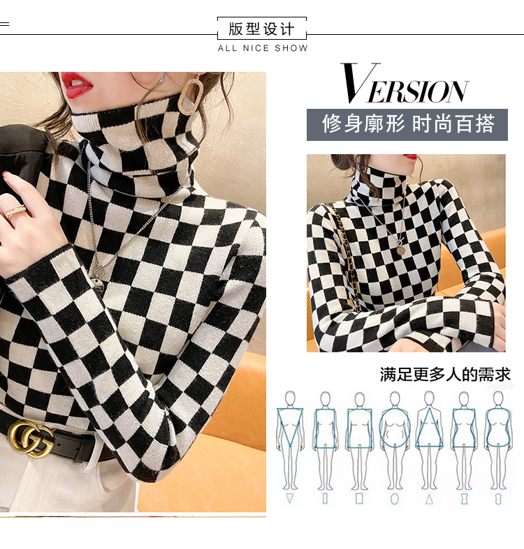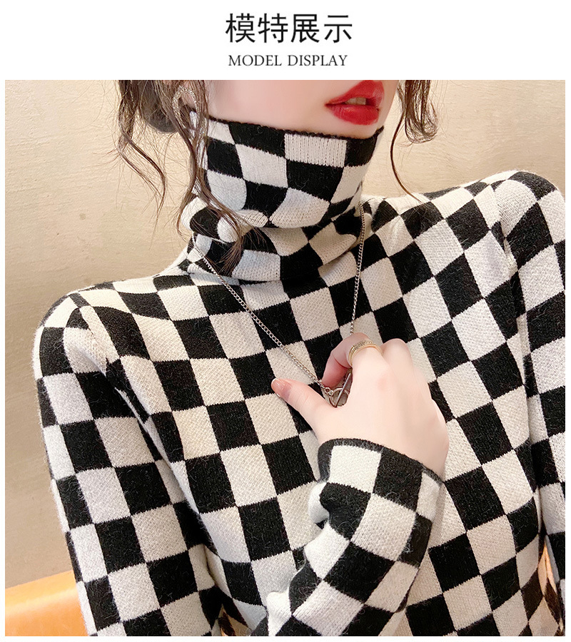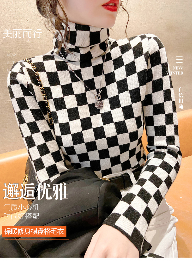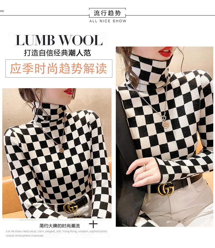 高领打底衫2022年新款保暖加厚修身棋盘格毛衣内搭上衣 XS93241*50