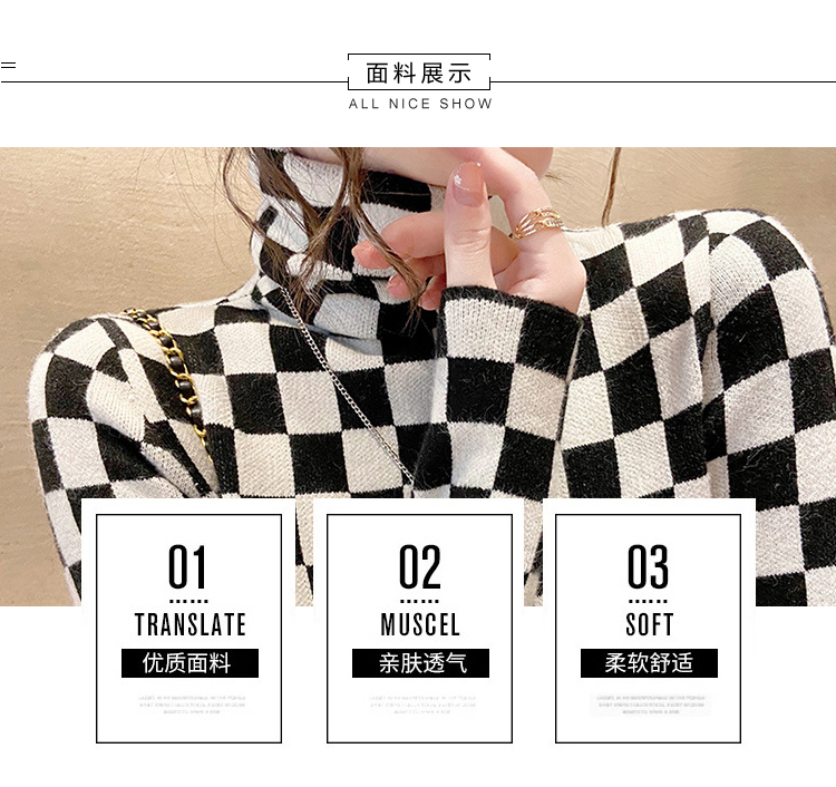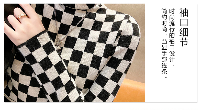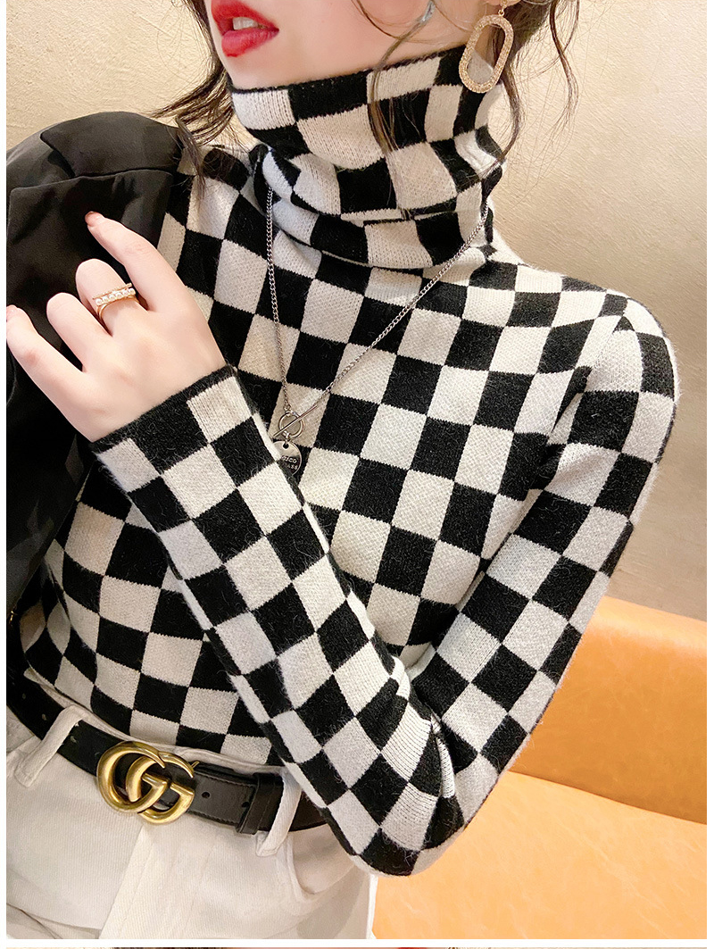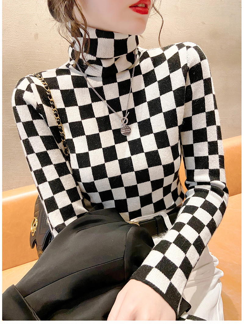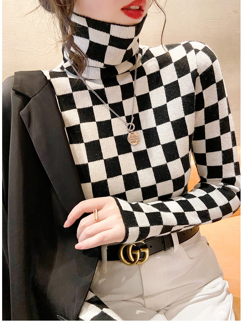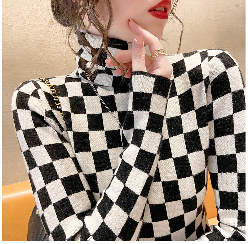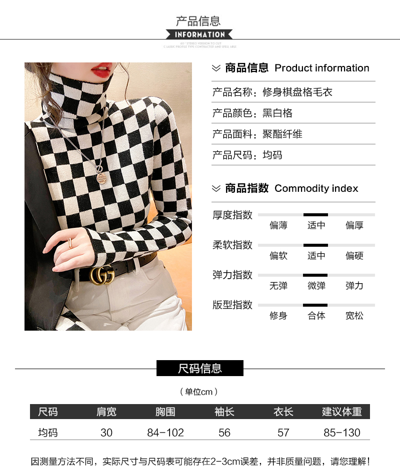 高领打底衫2022年新款保暖加厚修身棋盘格毛衣内搭上衣 XS93241*50