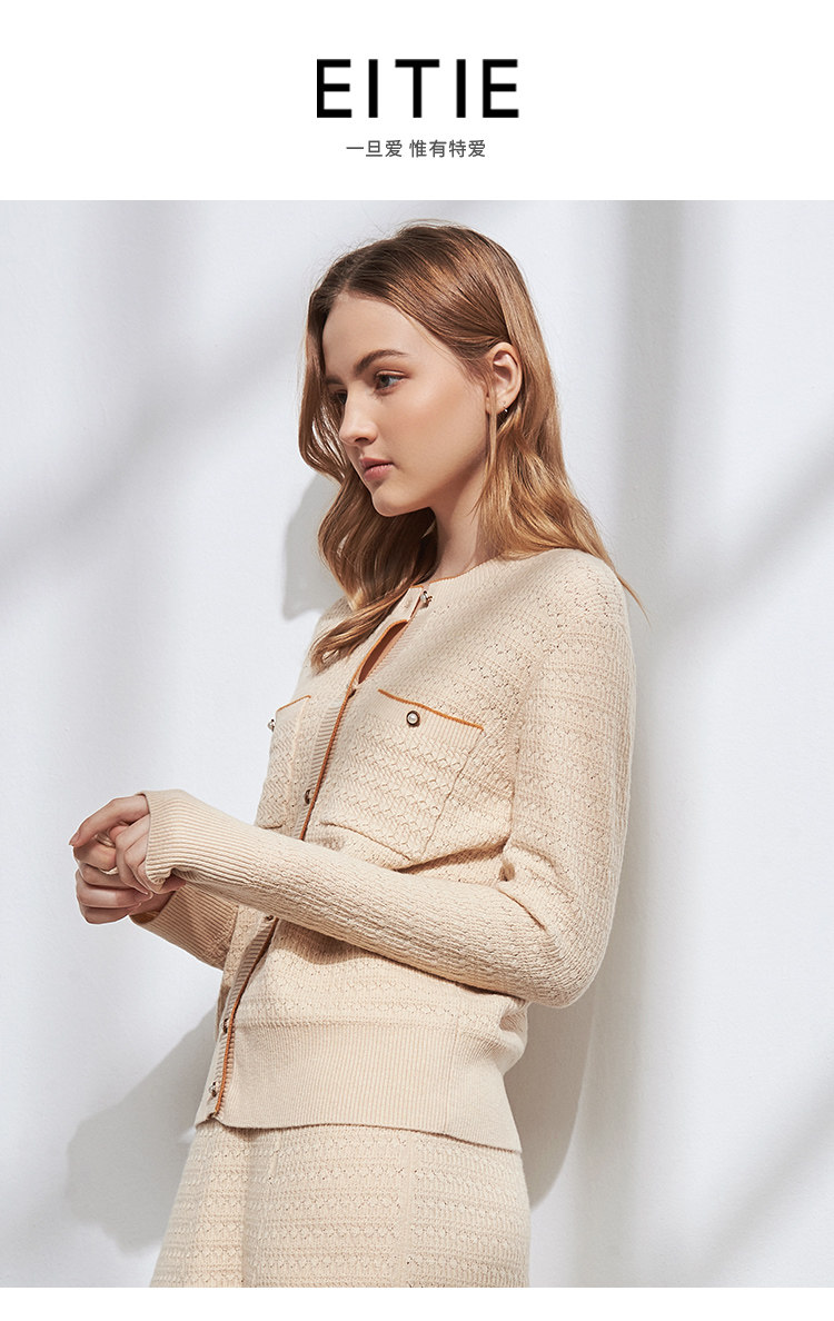 EITIE爱特爱女装秋季新款气质温柔百搭显瘦羊毛针织上衣开衫D2001501