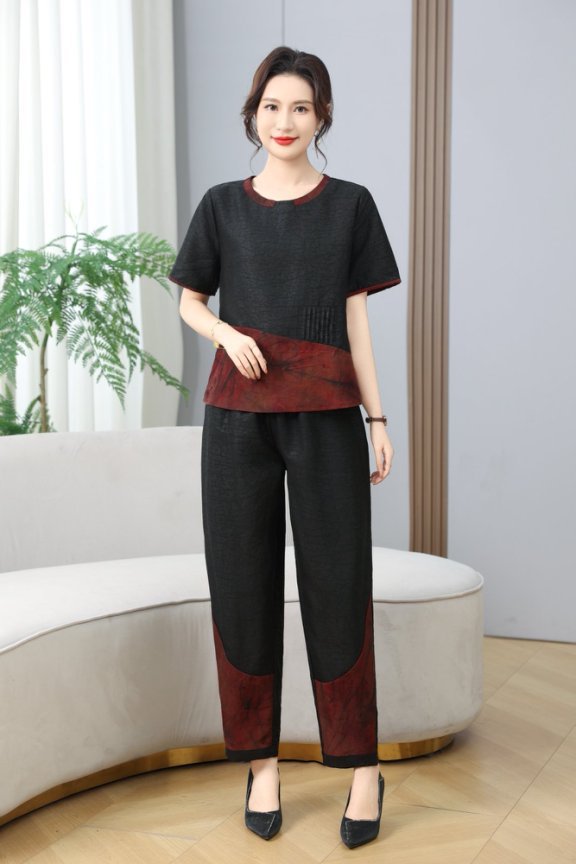 丁摩真丝香云纱黑红龟纹翻领新款时尚短袖夏季100%桑蚕丝宽松体恤AL2589