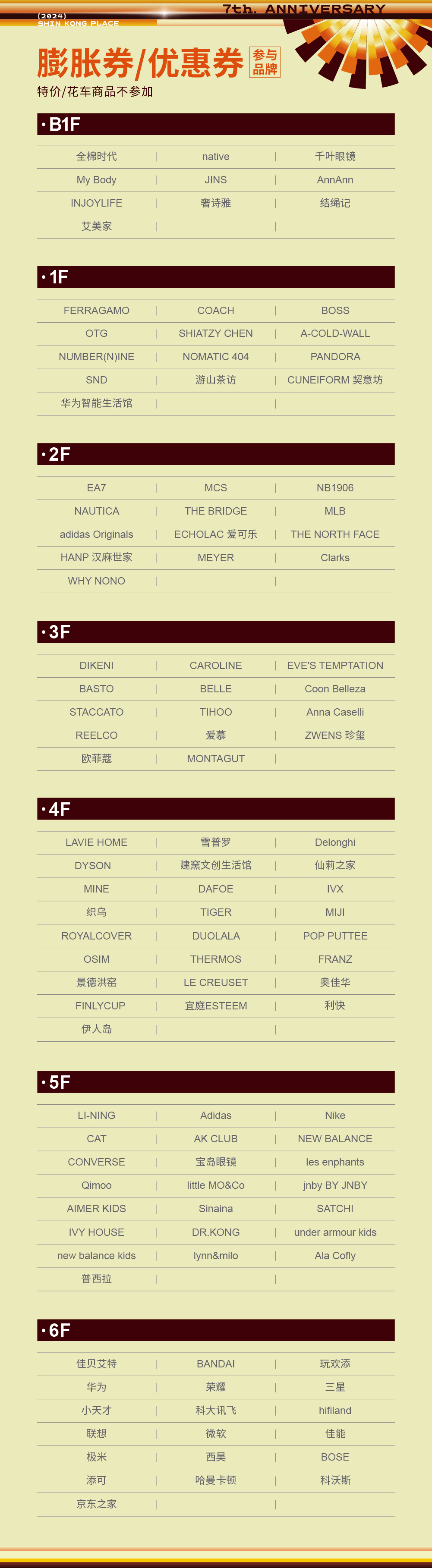 2. 本券不与店内其他活动同享、不与任何优惠券/电子金/其他优惠活动叠加使用,详询专柜;