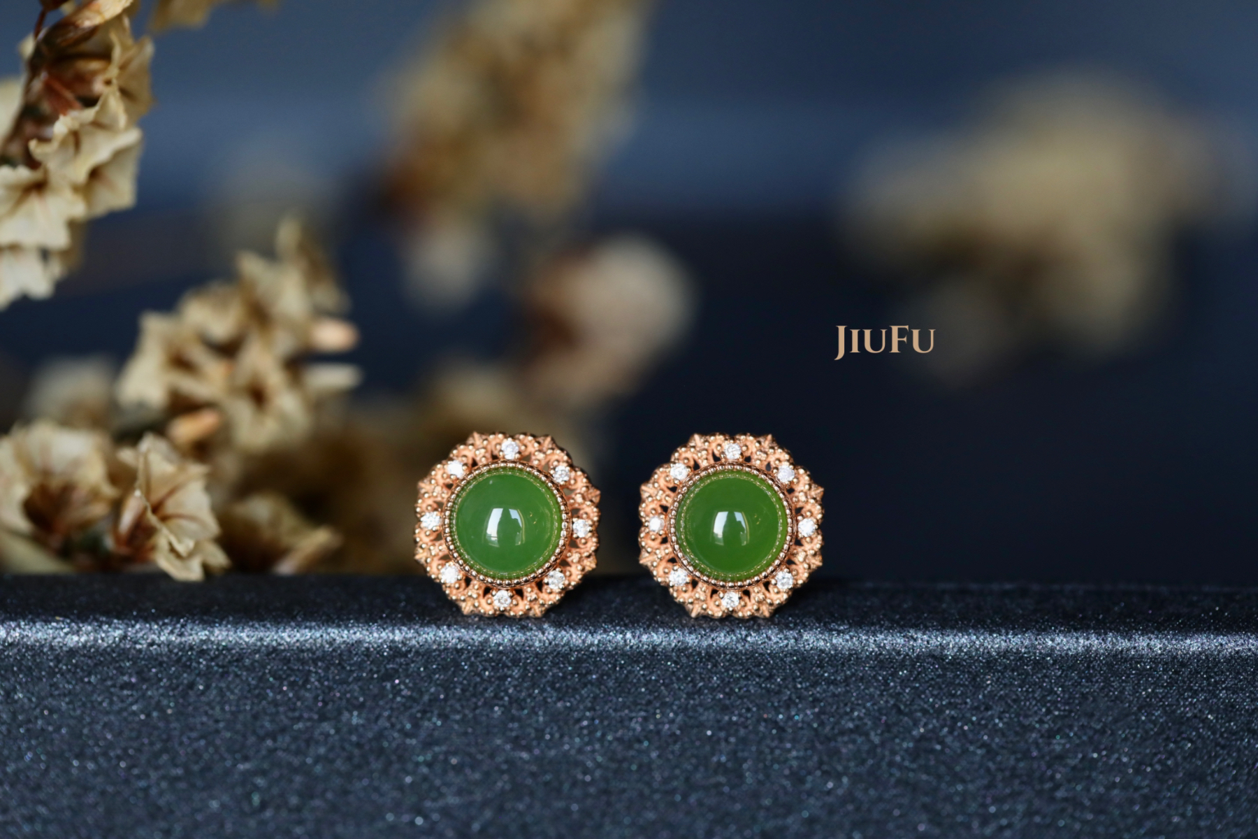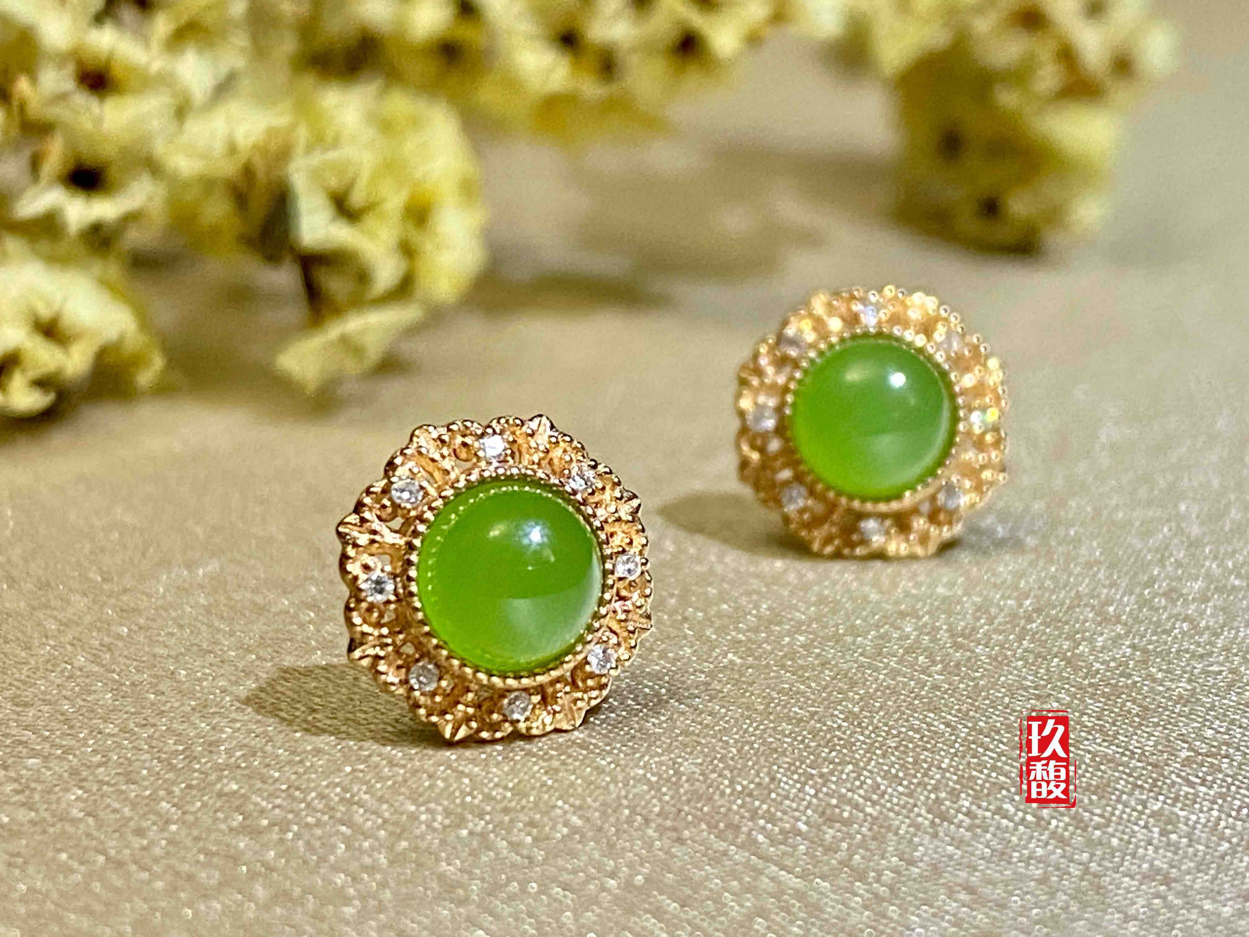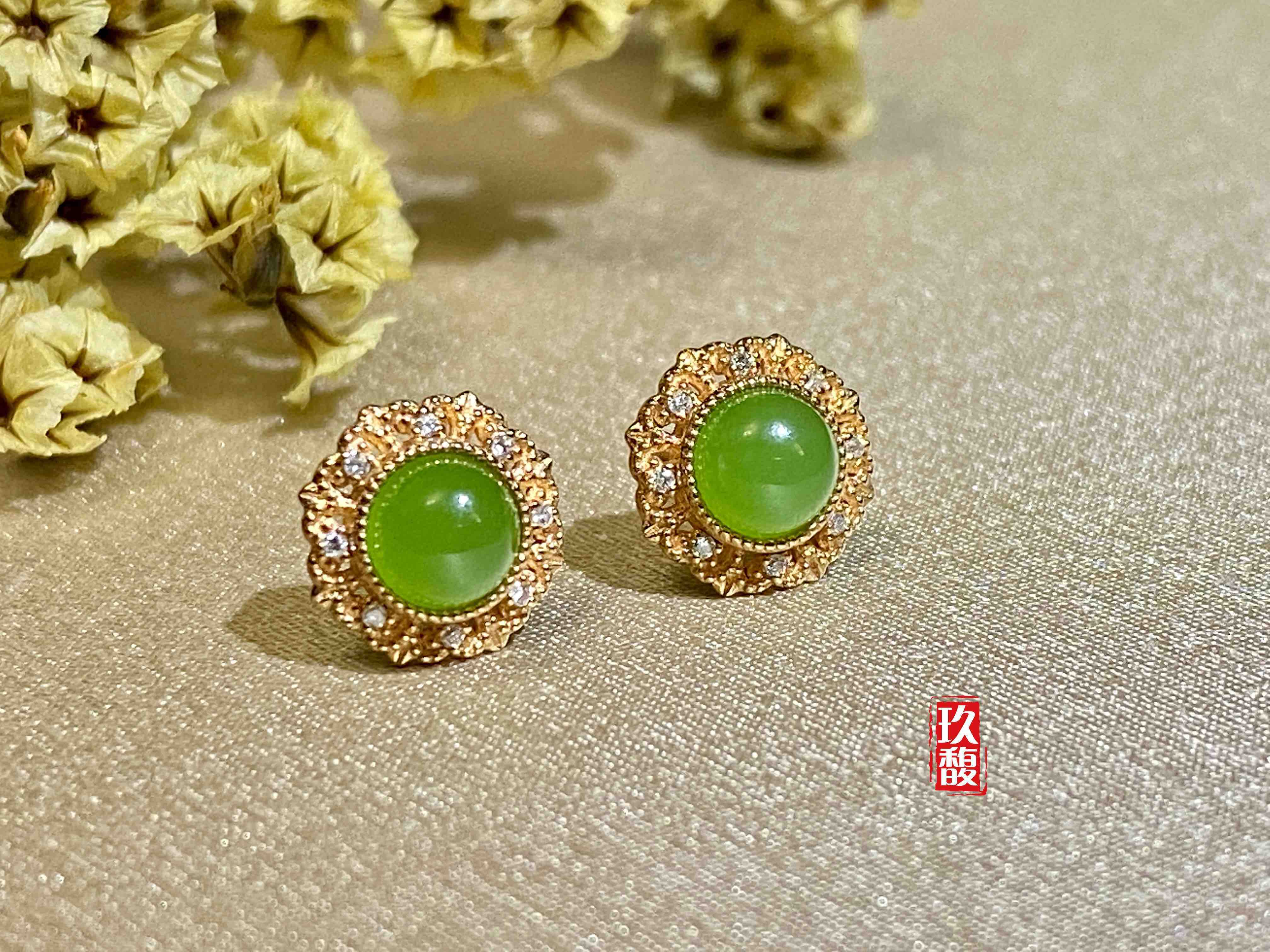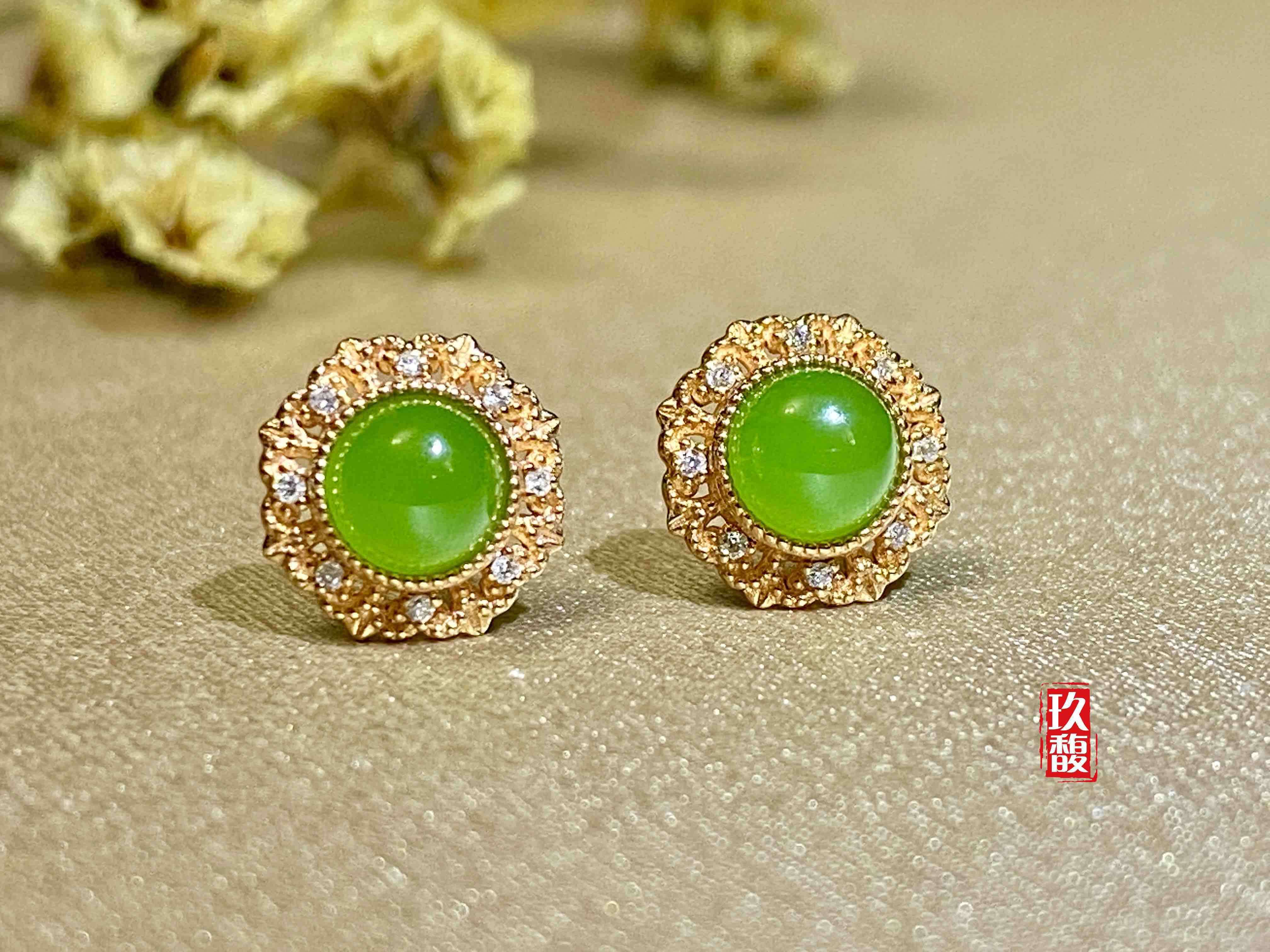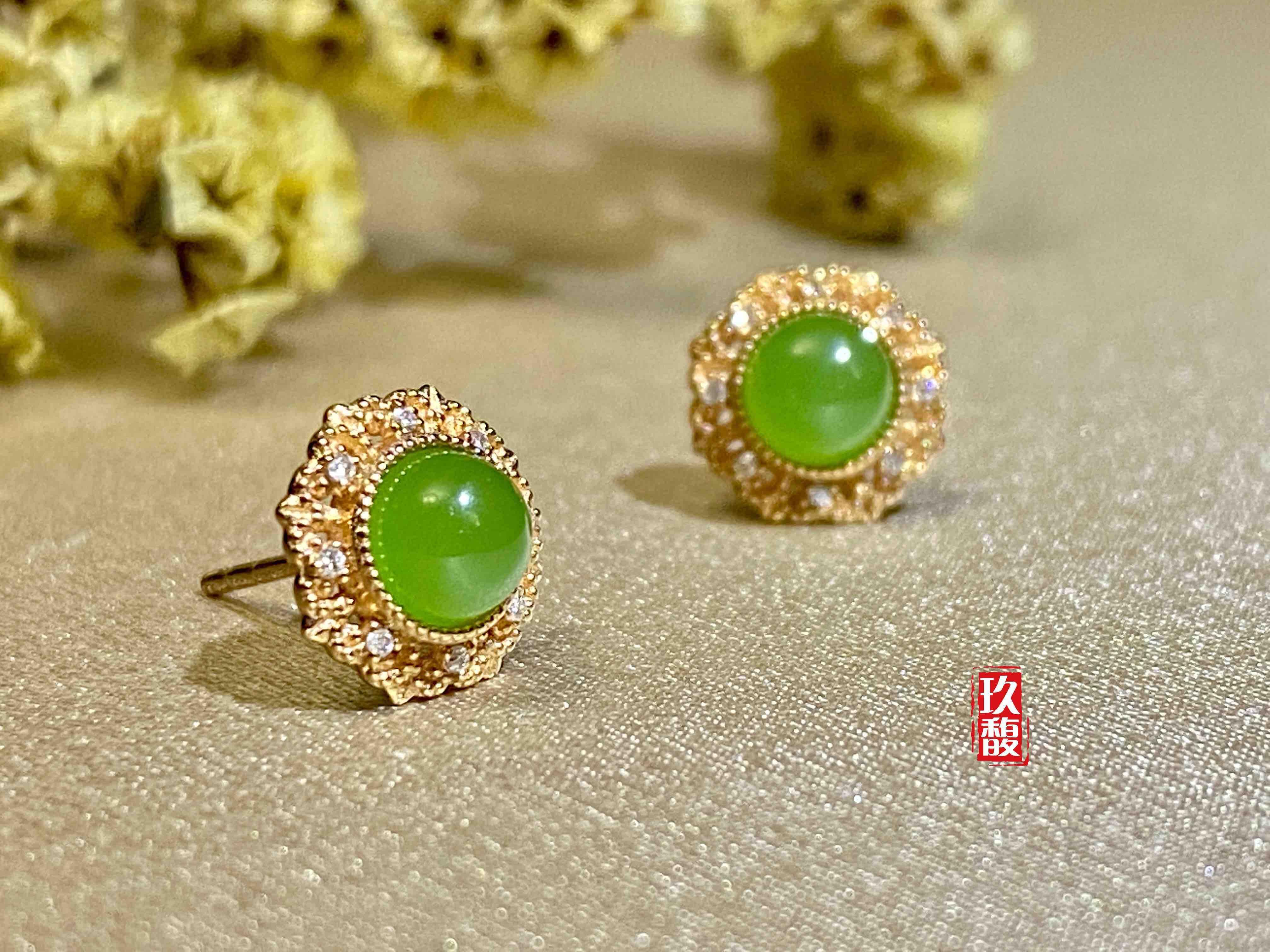 18K玫瑰金和田玉(碧玉)耳饰