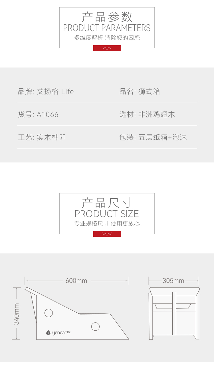 艾扬格 Life 四孔狮式箱/艾扬格瑜伽辅具(鸡翅木)