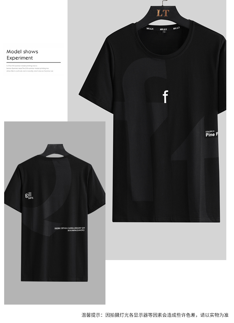 【新款DSK】夏季潮款字母印花圆领短袖大依优型短袖T恤胖子加肥弹力透气大码男装半袖