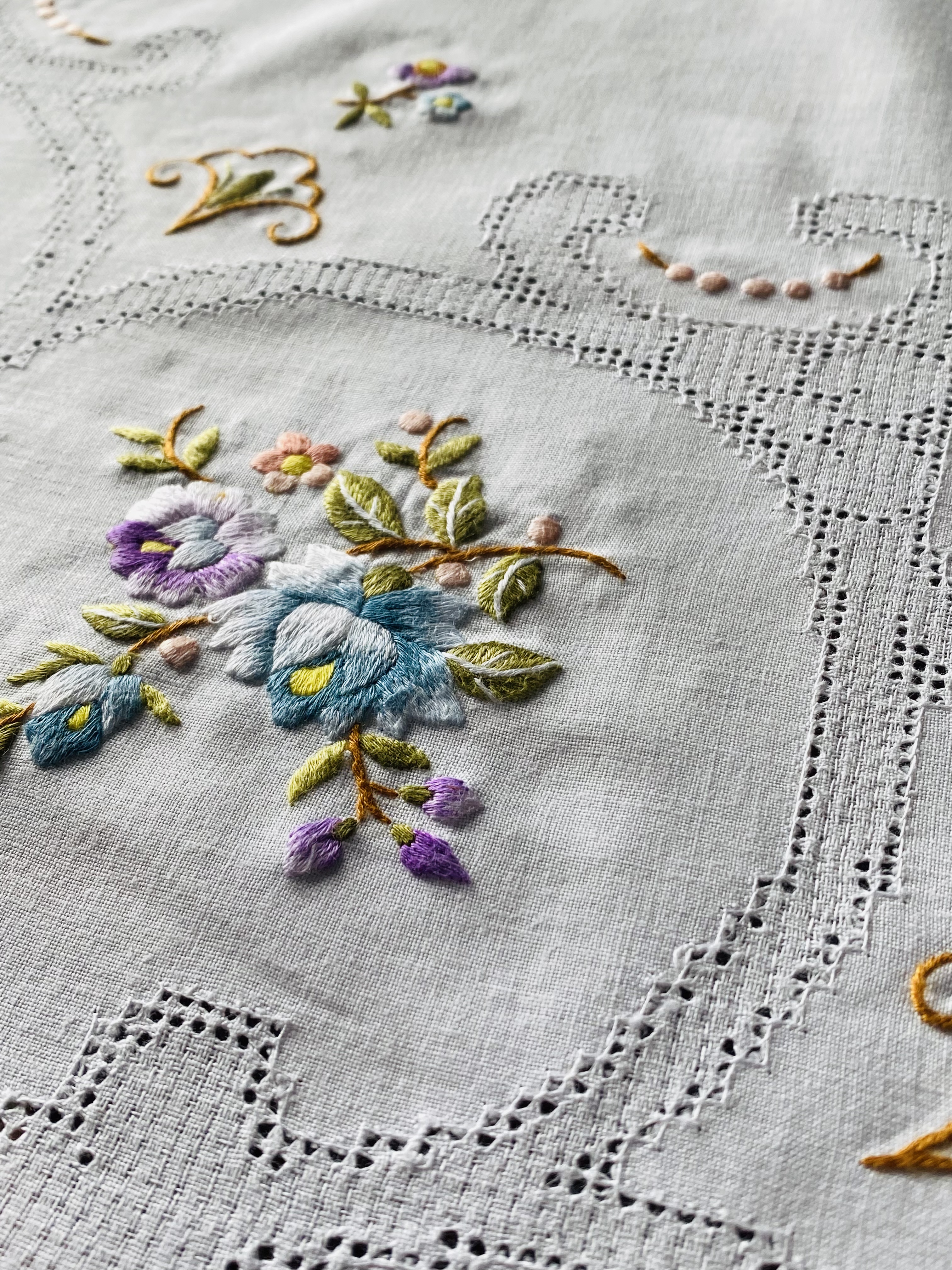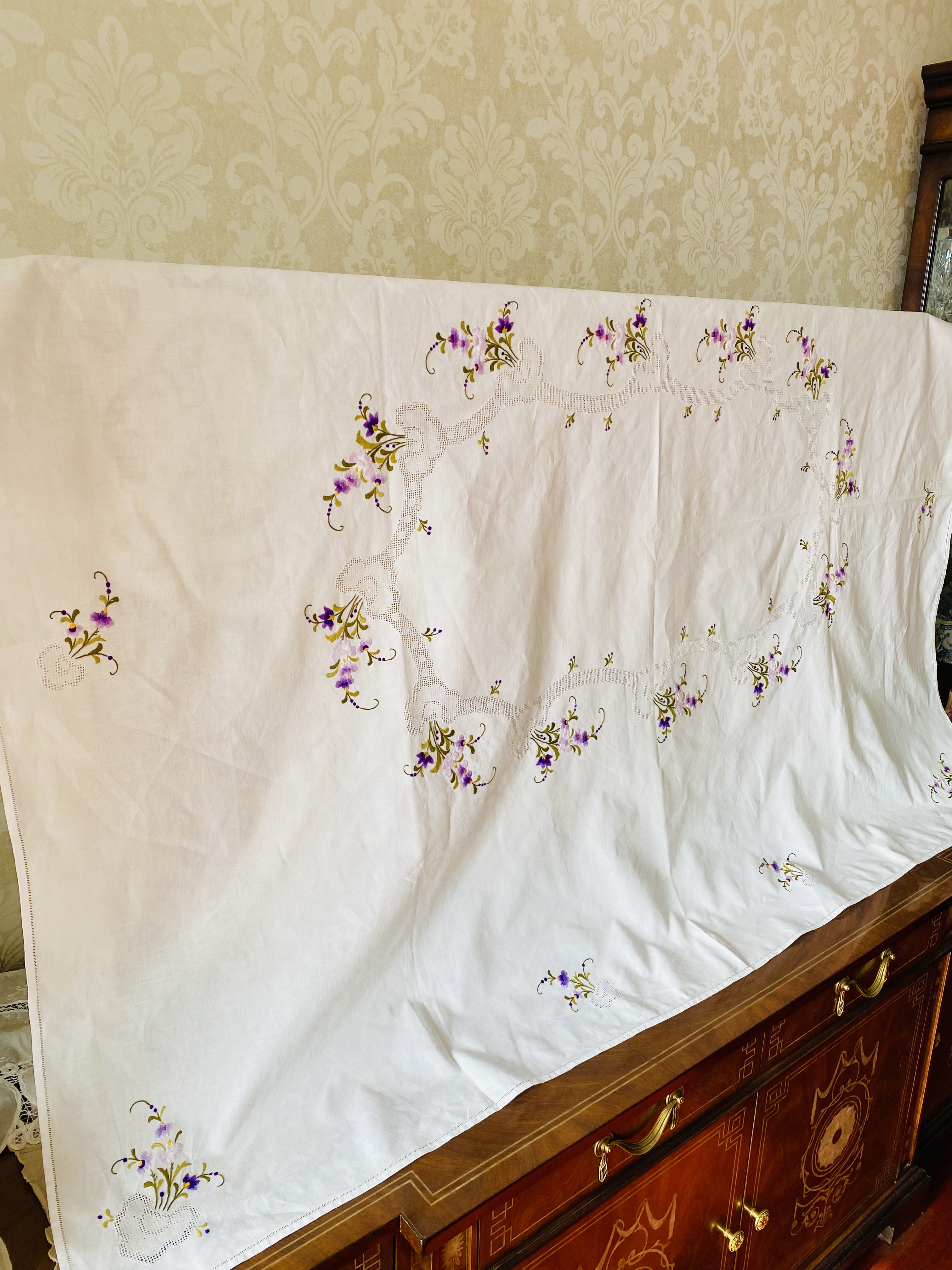 纯棉彩色手绣桌布,小清新风格,出口日韩的老外贸库存。纯棉面料,配色优美,图案鲜活,手工团绣、抽纱,工艺精美。色彩明快的小桌布给冬天增添一份暖暖春意。适用范围广,性价比高。