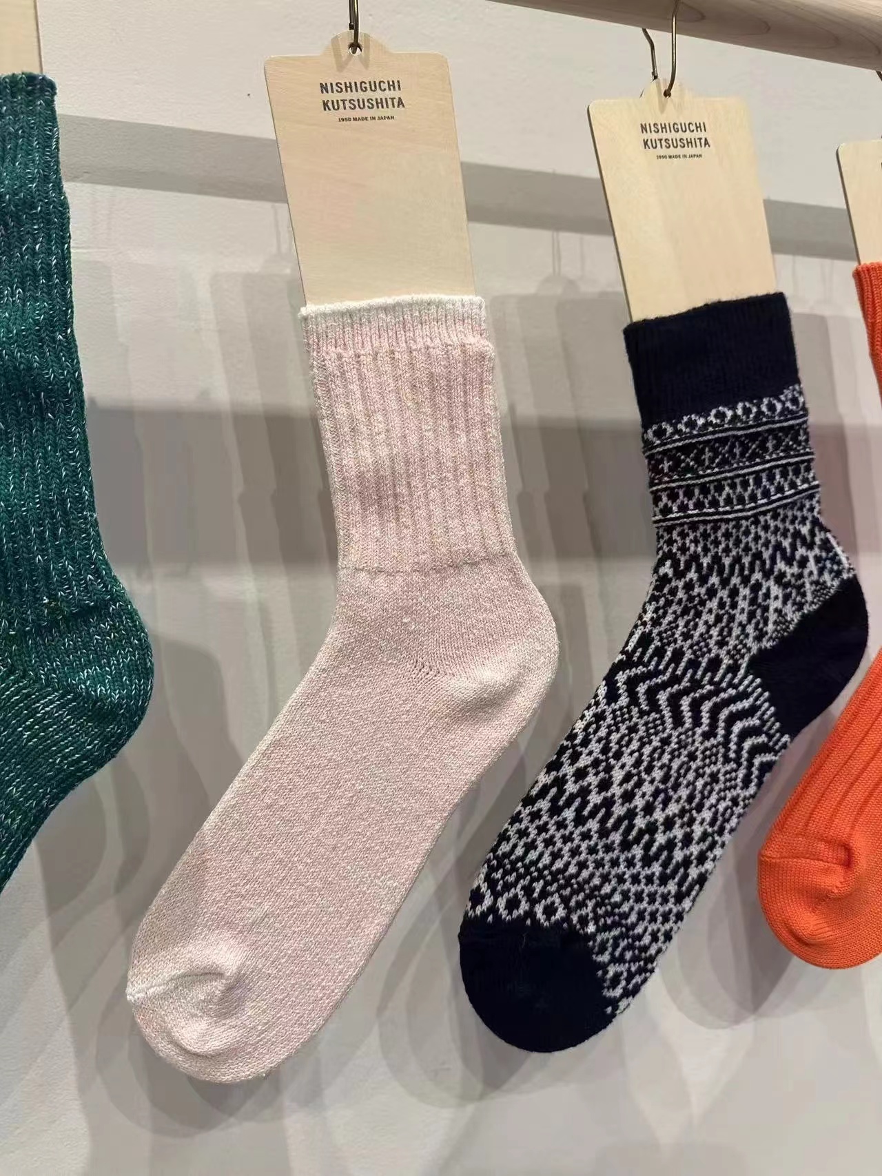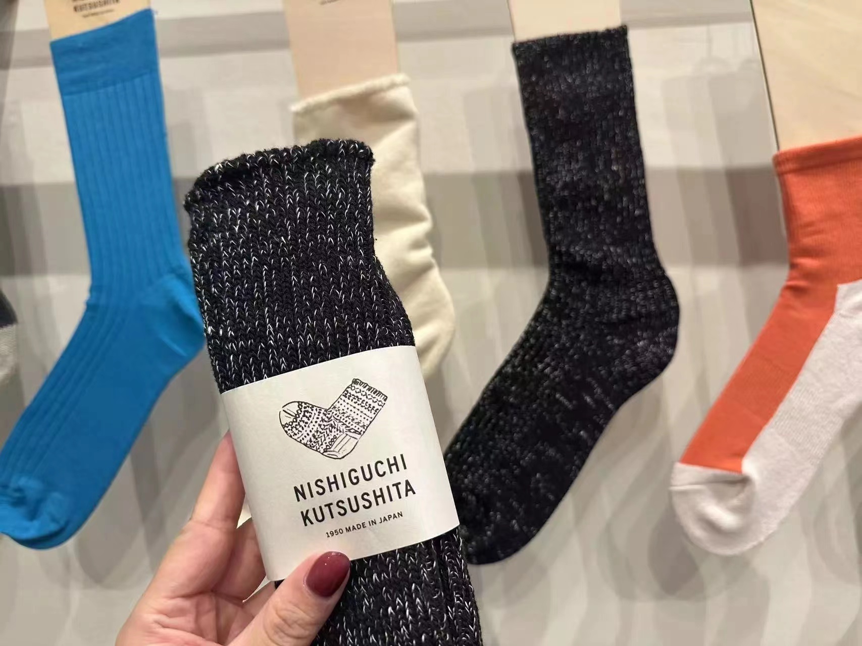 日本晨间节目对西口靴下大阪店铺的采访中采访了NISHIGUCHI KUTSUSHITA在大阪的店铺,听到店员说她的日常穿搭是以袜子对中心,然后再决定用什么衣服来搭配袜子。也许这是很多人没有想过的方法,袜子通常不是人们日常穿搭的主角,但是,当你手中拿着 NISHIGUCHI KUTSUSHITA的袜子时,袜子的颜色,质感,一定会感动你,也许它也会成为你日常穿搭的主角呢。