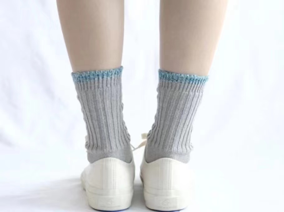 拼色羊毛中筒袜:59%聚酯纤维,40%羊毛,1%氨纶