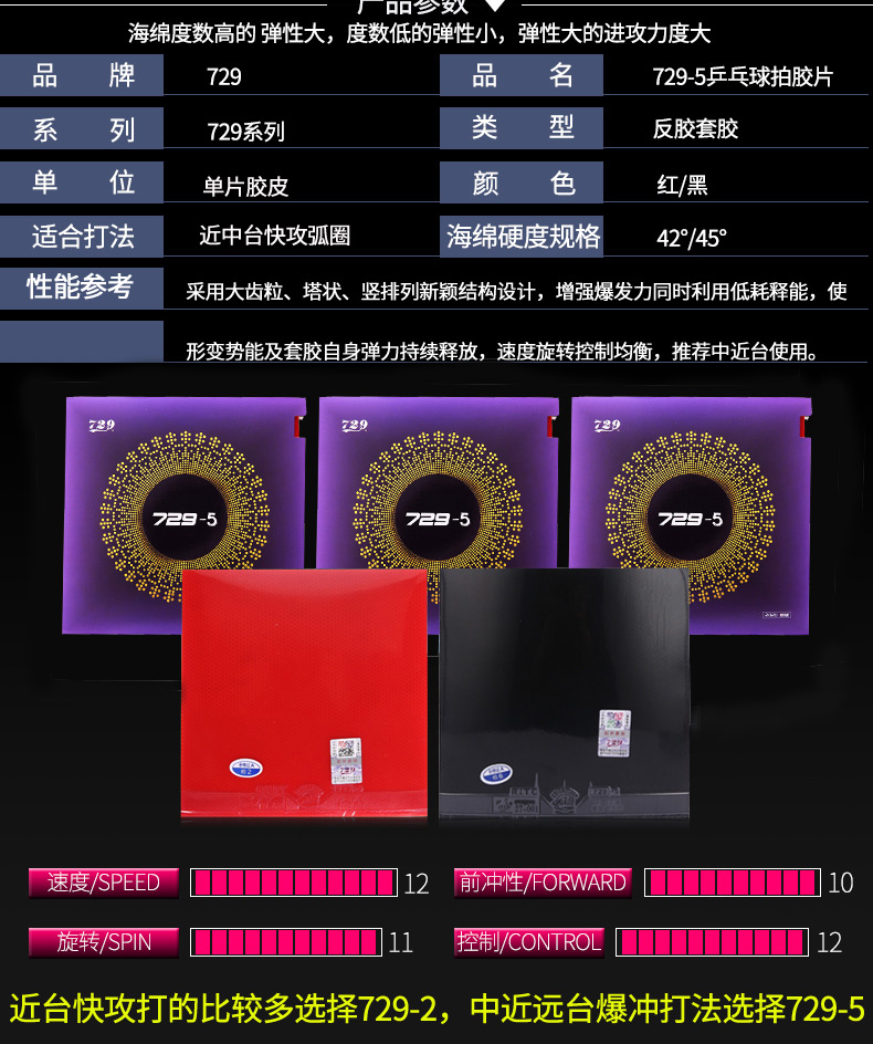 友谊729 729-5 粘性乒乓球胶皮 反胶套胶正品